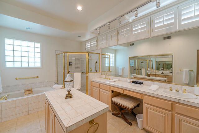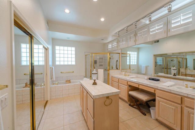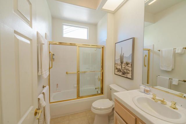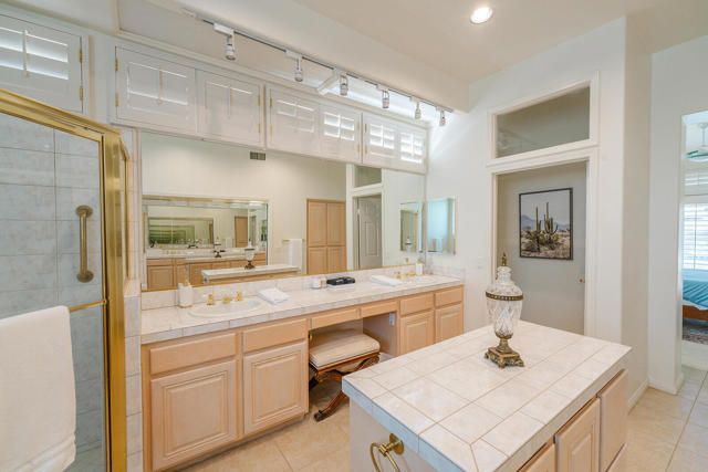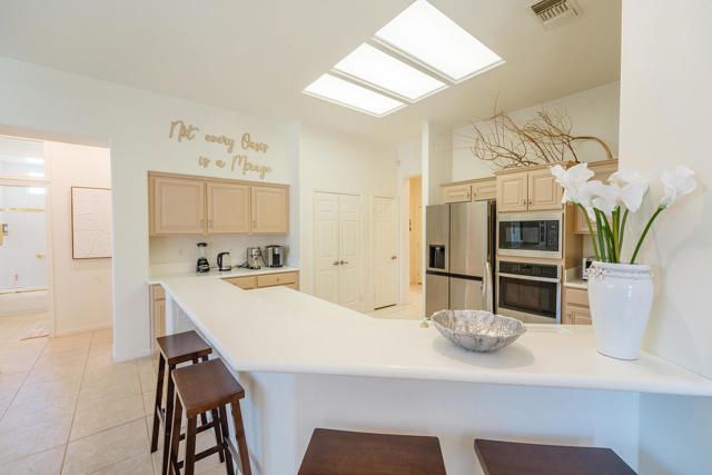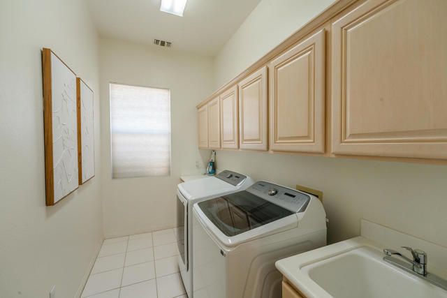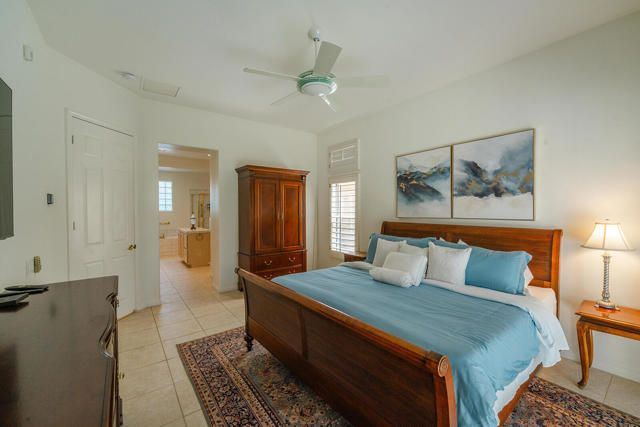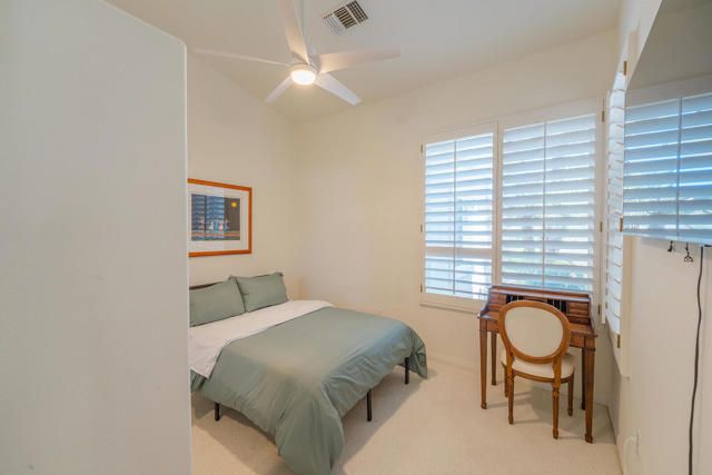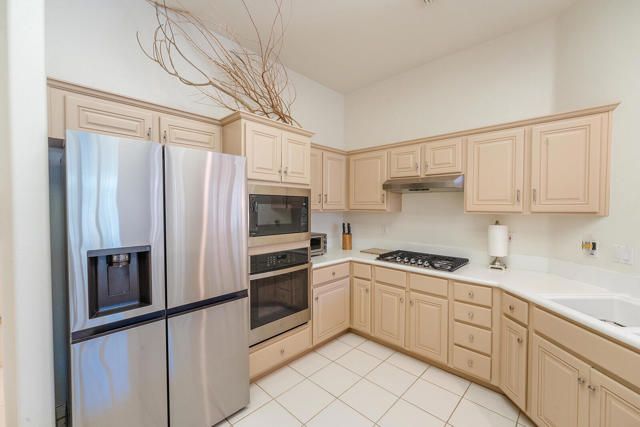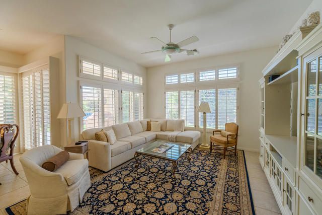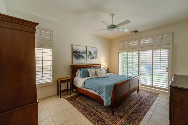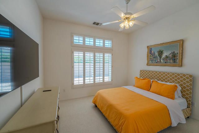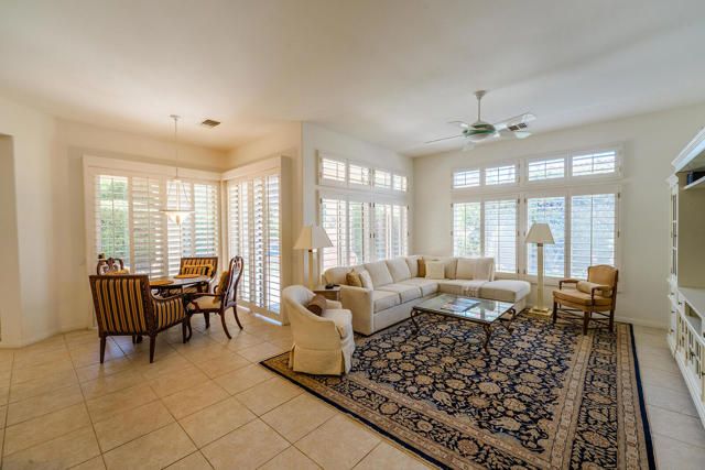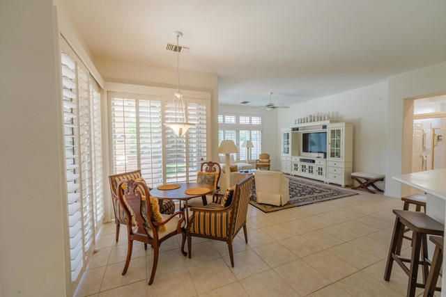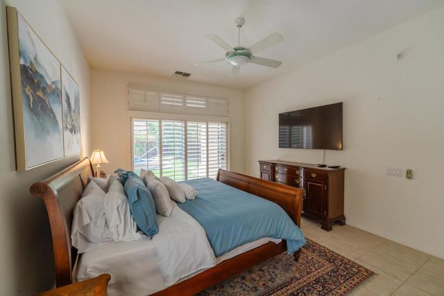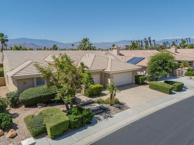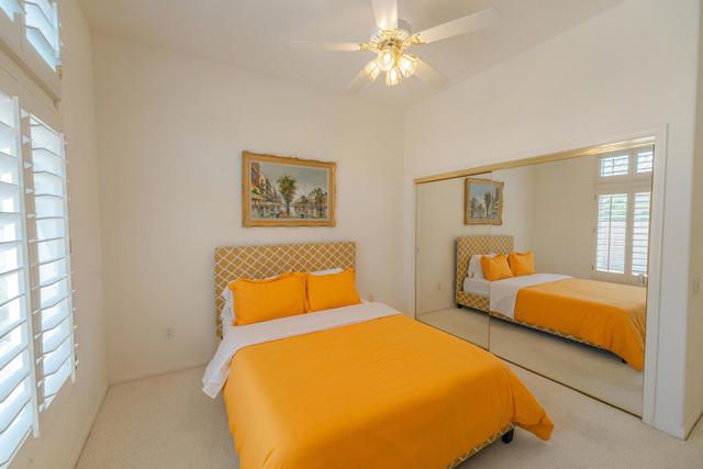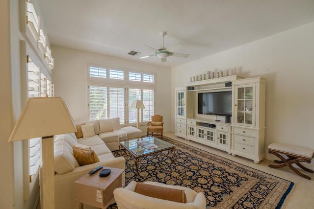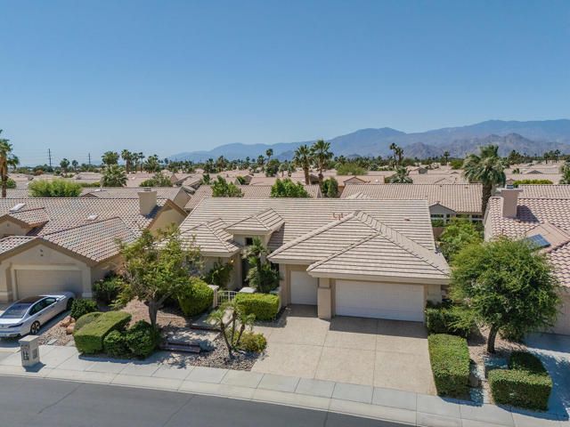 Rarely available Pave Model and with 4 full bedrooms (Only one with a 4th bedroom). This is the perfect way to live the amazing fun filled and luxurious Sun City lifestyle in a fully furnished and fully equipped home with everything needed at a great price. Just bring your toothbrush and clothes! Welcome to beautiful, 78907 Fountain Hills Dr, inside amenity rich Sun City in Palm Desert. This fully furnished home is located in a vibrant senior community, and the much sought after ''Pave'' model, includes 4 bedrooms and 2 full baths. Enter through double door entry to an open floor plan with formal dining and living room featuring 14 ft., ceilings. Generous use of tile throughout. Congregate in the spacious family room that is conveniently adjacent to the kitchen. The owner's suite is generous in size and has a glass slider to the south facing rear yard with mountain views. Located in the backyard you will find a heated, in ground spa. The guest wing of the home features 3 bedrooms serviced by a full bath/shower. Another plus is the 2 car garage and a golf cart garage. Everything about this home just feels right. The amenities list of the community is extensive and includes 3 club houses, 2 restaurants, coffee bar, martini bar, 5 pools, 2-18 hole golf courses, 2 driving ranges/practice areas, 2 pro shops, 18 hole putting course, baseball field, dock fishing, 8 bocce ball lanes, 10 tennis courts, 4 pickleball courts, a billiards room, dance studio, long term RV parking, walking paths throughout, art studios for painting, stain glass, pottery, sewing, knitting and quilting. Not to mention the 80+ clubs that are also accessible. This is truly living the lifestyle that you deserve. Primary bedroom has California King bed and 65'' samsung wall mounted TV and ensuite with generous walk in closet. Largest secondary room has Queen Bed with 65'' samsung wall mounted TV. Other 2 secondary rooms are double beds with 55'' samsung wall mounted TVs. One has a built in desk and is used as an office/bedroom.. Come take a good look and you will be glad that you did - no other ''Pave'' model has 4 bedrooms and the furniture is great quality and the home comes fully furnished. What you see is what stays and it is yours!