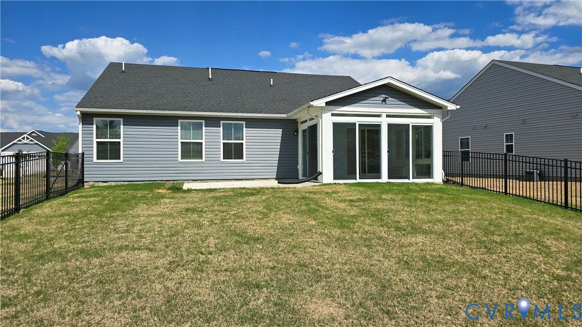 This Craftsman style Ranch constructed in 2023 has had one owner. Features an Open Floor Plan with Eat-in Kitchen open to the Family Room, ideal for easy everyday living and special family gatherings and entertaining. Kitchen with electric cooking, garbage disposal, dishwasher, outside vented exhaust and microwave, tile backsplash, quartz countertops, pantry, breakfast bar and hard surface Luxury Vinyl Plank Flooring. Enjoy the All Season/Florida room with views of the fenced in backyard, patio and vineyard. All Season/Florida room is heated and cooled with separate HVAC Unit! Family room features hard surface Luxury Vinyl Plank floors and upgraded recessed lighting. Primary Bedroom is spacious with walk-in closet, on-suite bath with quartz double vanity, walk-in ceramic tiled shower stall with seat. Two additional bedrooms available for the occasional guest or office. Additional full bath with ceramic tub/shower surround convenient for guess use. Laundry Room with ceramic tile flooring. Tankless Water Heater. Community offers clubhouse, pool, gym facility and scheduled activities for the active 55+ adult(s). WELCOME HOME!
