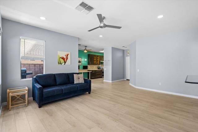 Welcome to 78970 Nectarine in Sun City Palm Desert, the popular Maui model--one of the community's most efficient and easy-to-maintain floor plans. Offering 2 bedrooms, 2 bathrooms, and 1,010 sq. ft., this home is perfect for those who value effortless upkeep without sacrificing comfort or style. Situated on one of the larger privacy lots, (6970 sq. ft.) this property offers a rare combination of space and seclusion, while still providing a blank slate ready for your personal vision. A brand-new roof (2024) adds peace of mind, and recent modern updates elevate the interior. The kitchen features quartz countertops, a custom tile backsplash, stainless steel appliances, and a breakfast bar/workspace ideal for casual dining or morning coffee. Engineered wood flooring flows throughout, complemented by new window blinds for a fresh, clean look.The primary suite includes a walk-in closet and dual vanities in the en-suite bath. Additional features include washer and dryer in the garage and two 50-amp outlets for EV charging.Living in Sun City Palm Desert means enjoying resort-style amenities with an affordable HOA--multiple clubhouses, pools, fitness centers, golf, social clubs, dining, and activities for every interest. Conveniently located near the I-10 freeway and Acrisure Arena, this home offers easy access to everything the desert has to offer. Low maintenance. Modern updates. Privacy. Lifestyle. This is desert living made simple.