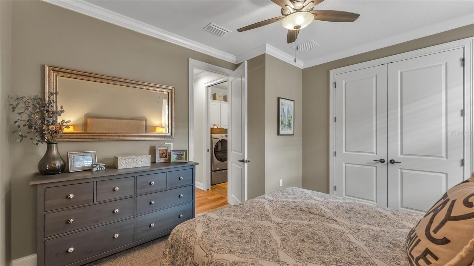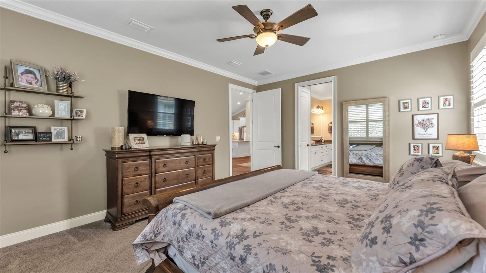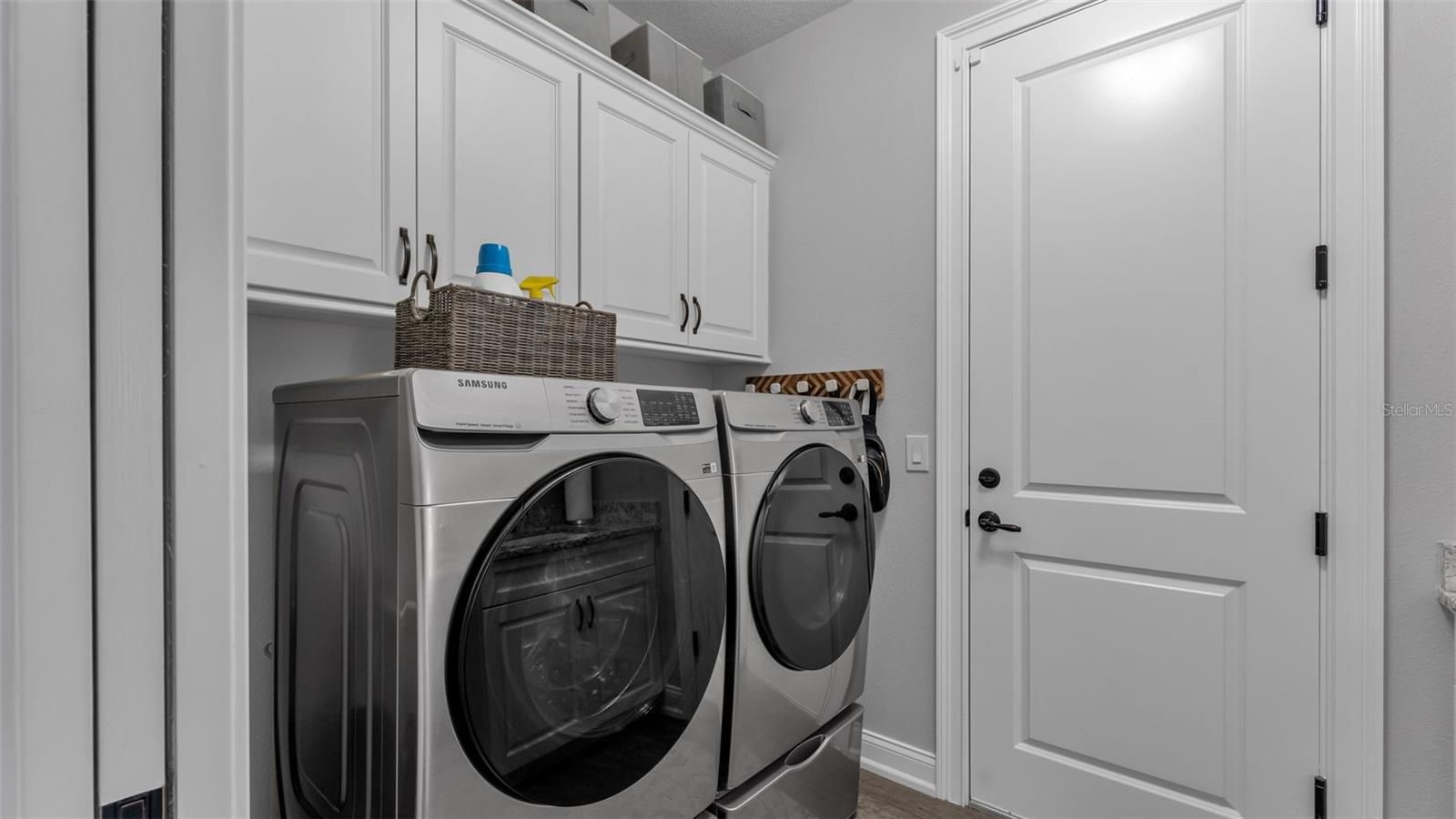 Welcome to 7898 Lake James Blvd, a stunning 2-bedroom plus office (optional 3rd bedroom), 2-bathroom custom-built Mariam III residence by Ernie White Construction, completed in 2023 and located in the exclusive 55+ gated community of Lake James in Lakeland, FL. From the moment you arrive, the home’s elevated curb appeal is evident — featuring a pavered driveway and walkway, custom stone accents, and beautifully maintained landscaping with stamped concrete curbing and rock beds that frame the exterior with timeless elegance. Step inside through the upgraded glass entry door and you'll find a thoughtfully designed layout with soaring ceilings, crown molding throughout, and an abundance of natural light. The open-concept living area connects seamlessly to the oversized kitchen, which showcases gorgeous Corian countertops, an abundance of upgraded soft-close cabinetry, pull-out drawers, a massive walk-in pantry with custom wood shelving, and top-of-the-line stainless appliances. Just off the living space is a casual dining area and access to the private screened-in lanai — a peaceful outdoor retreat perfect for morning coffee or evening relaxation. The primary suite is spacious and serene, offering a large walk-in closet, dual vanities, a soaking tub, and a beautifully tiled walk-in shower with a no-door design for easy access and low maintenance. The guest bedroom is generously sized with ample closet space and is serviced by a full guest bath featuring upgraded tile work and custom cabinetry. An additional office or den is located near the front entry and can easily function as a third bedroom when needed. The expanded laundry room adds even more value with upgraded cabinets, countertop space, a large utility sink, and a convenient hanging bar. Additional upgrades include plantation shutters on all windows, a remote-controlled privacy shade on the back slider, energy-efficient low-E double-pane windows and sliders, upgraded fixtures, and neutral paint tones throughout. The oversized screened-in paver lanai is partially covered and ideal for outdoor living. The home sits just a short walk or golf cart ride away from the community clubhouse, fitness center, heated pool, and scenic walking trails. Lake James is known for its peaceful setting and low-maintenance lifestyle, with monthly fees covering lawn care, cable, and internet. Conveniently located near shopping, restaurants, and just minutes from I-4, this home truly combines luxury, comfort, and convenience in one of Lakeland’s premier 55+ communities.