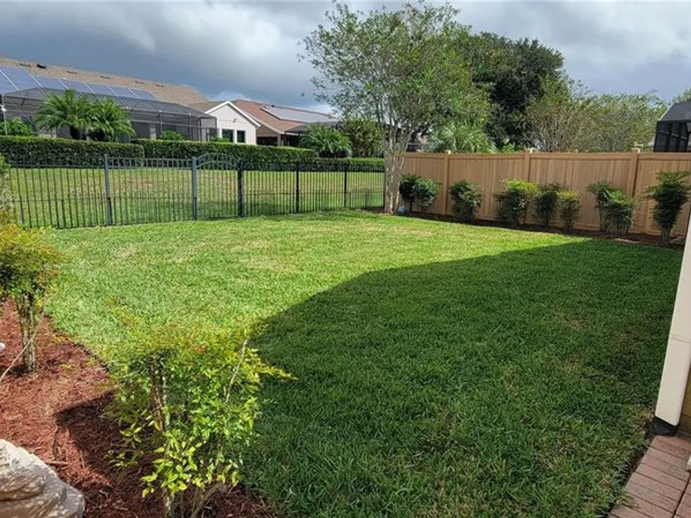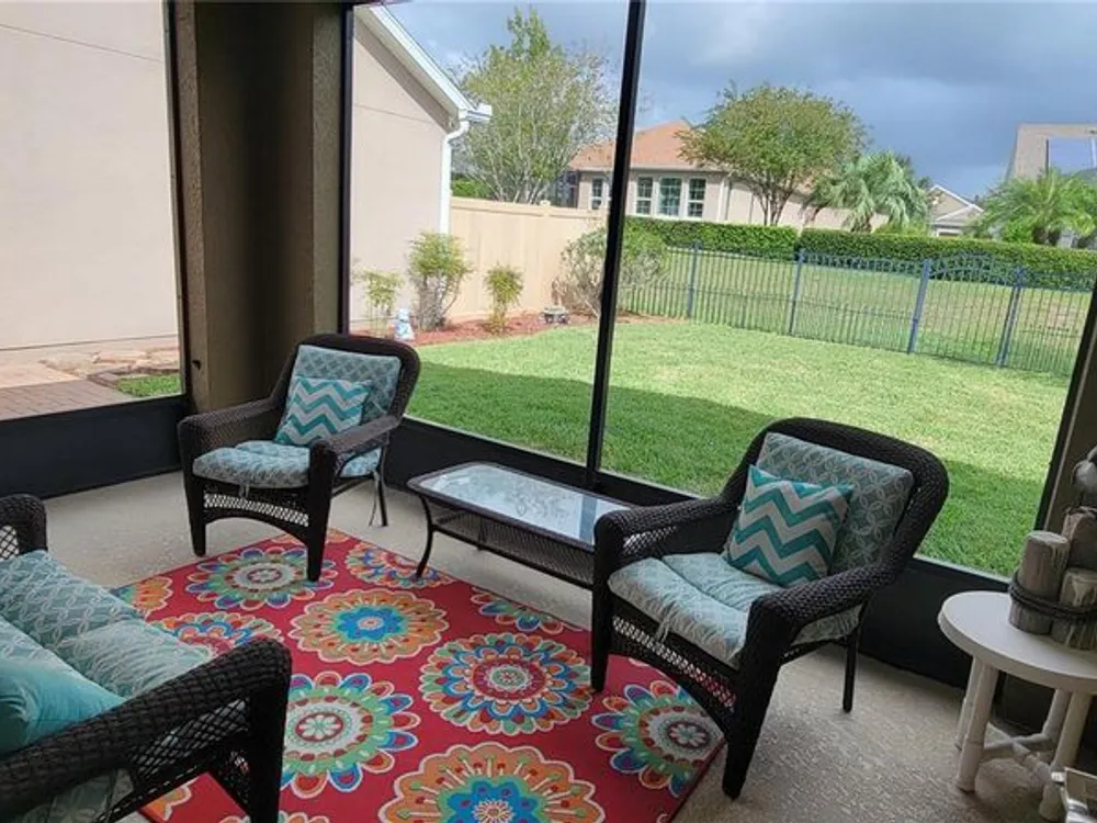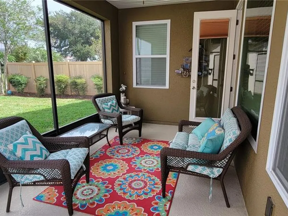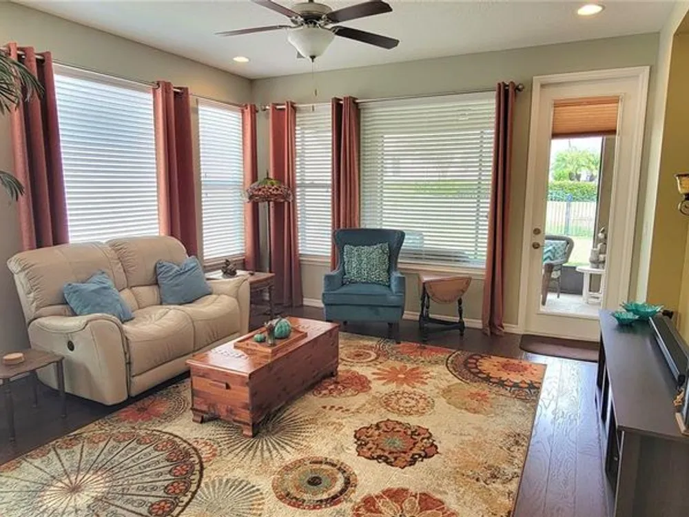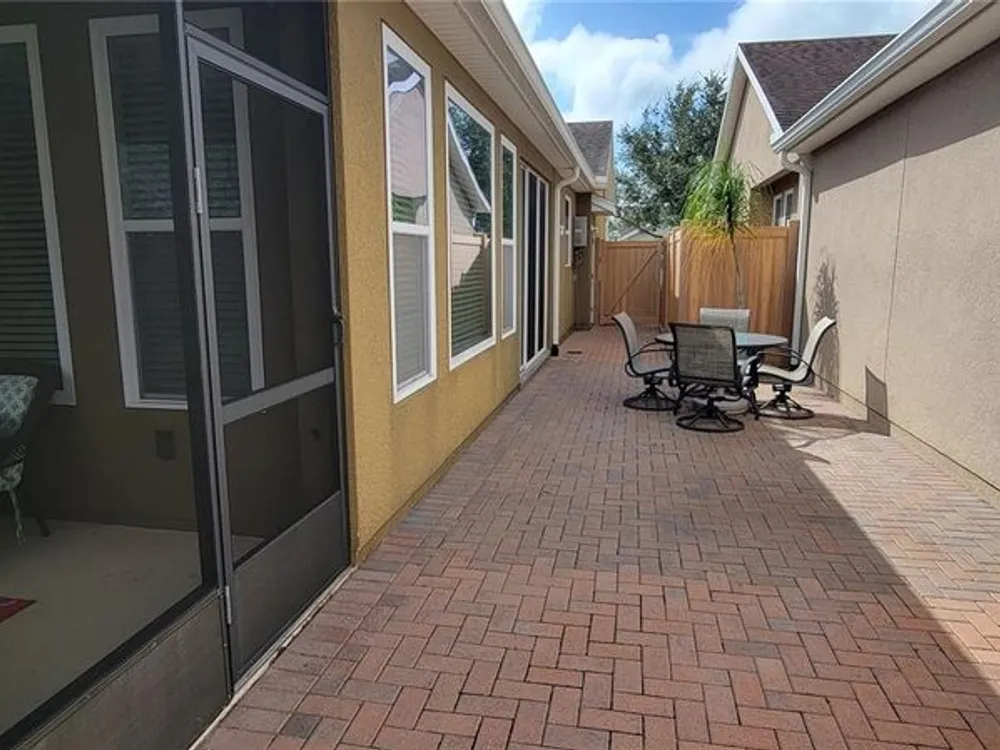 Welcome to resort living in Trilogy of Orlando! This Villa is perfect for care-free living full time, or for those who want to Winter in Florida. This two bedroom, two bath home and a den, is the perfect size for just that. Plus, you have a great outdoor space with screened lanai and wrap around side private courtyard as well. Loaded with upgrades including solar, wood floors, tankless water heater, upgraded kitchen cabinets with under counter lighting, stainless steel appliances, new microwave, and 5 burner gas range with griddle. And, if you don't feel like cooking in that fabulous kitchen, you can enjoy a meal Wednesday-Sunday at the Grille Restaurant & Bar, located in the 57,000 square foot state-of-the-art Clubhouse. Amenities include an Athletic Club with top-of-the-line equipment, resort-style indoor/outdoor pool, heated spa, ladies & men's locker rooms with lockers, showers, etc., pickleball and tennis courts, bocce ball, billiard room, poker room, craft room, and so much more. There is always some type of entertainment, concerts, and fun entertainment planned for the community. You will feel like you are always on vacation!! Come live the good life at this tropical oasis!