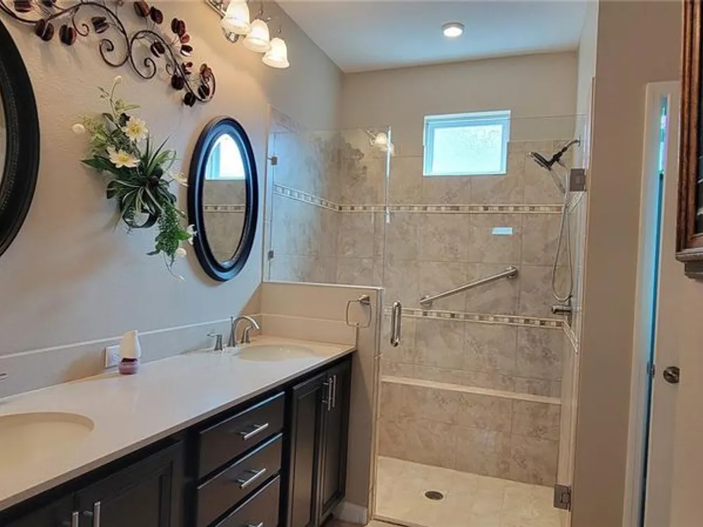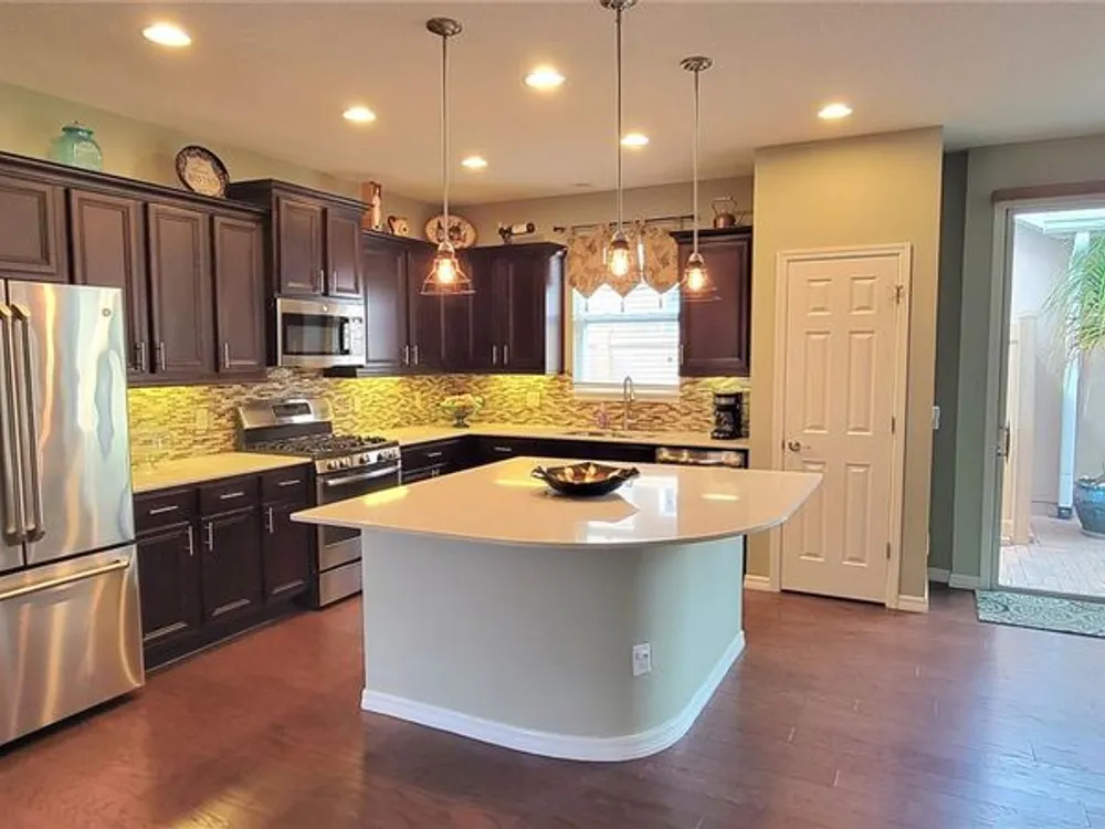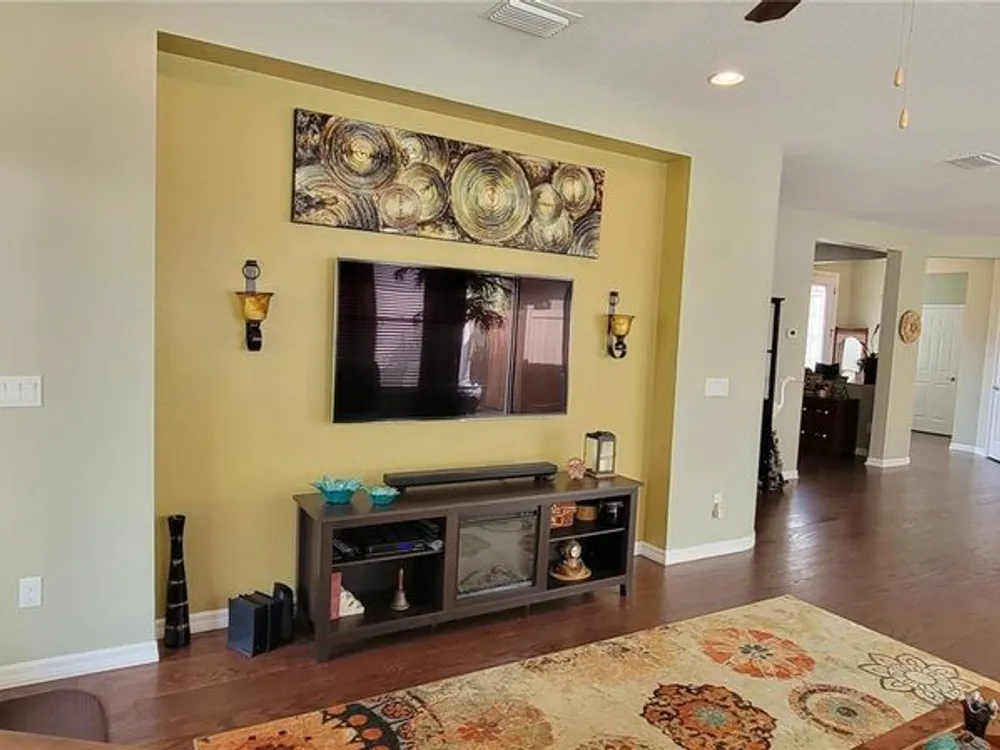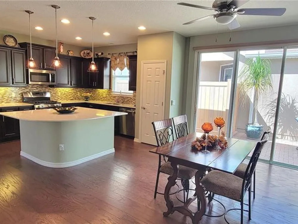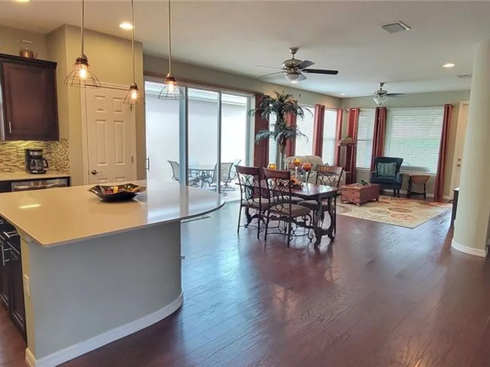 Welcome to resort living in Trilogy of Orlando! This Villa is perfect for care-free living full time, or for those who want to Winter in Florida. This two bedroom, two bath home and a den, is the perfect size for just that. Plus, you have a great outdoor space with screened lanai and wrap around side private courtyard as well. Loaded with upgrades including solar, wood floors, tankless water heater, upgraded kitchen cabinets with under counter lighting, stainless steel appliances, new microwave, and 5 burner gas range with griddle. And, if you don't feel like cooking in that fabulous kitchen, you can enjoy a meal Wednesday-Sunday at the Grille Restaurant & Bar, located in the 57,000 square foot state-of-the-art Clubhouse. Amenities include an Athletic Club with top-of-the-line equipment, resort-style indoor/outdoor pool, heated spa, ladies & men's locker rooms with lockers, showers, etc., pickleball and tennis courts, bocce ball, billiard room, poker room, craft room, and so much more. There is always some type of entertainment, concerts, and fun entertainment planned for the community. You will feel like you are always on vacation!! Come live the good life at this tropical oasis!