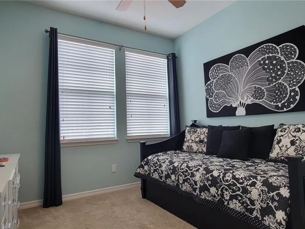 - Ceiling Fan(s), Living/Dining Room, Open Floorplan, Split Bedrooms, Stone Counters, Thermostat, Walk-In Closet(s), Window Treatments