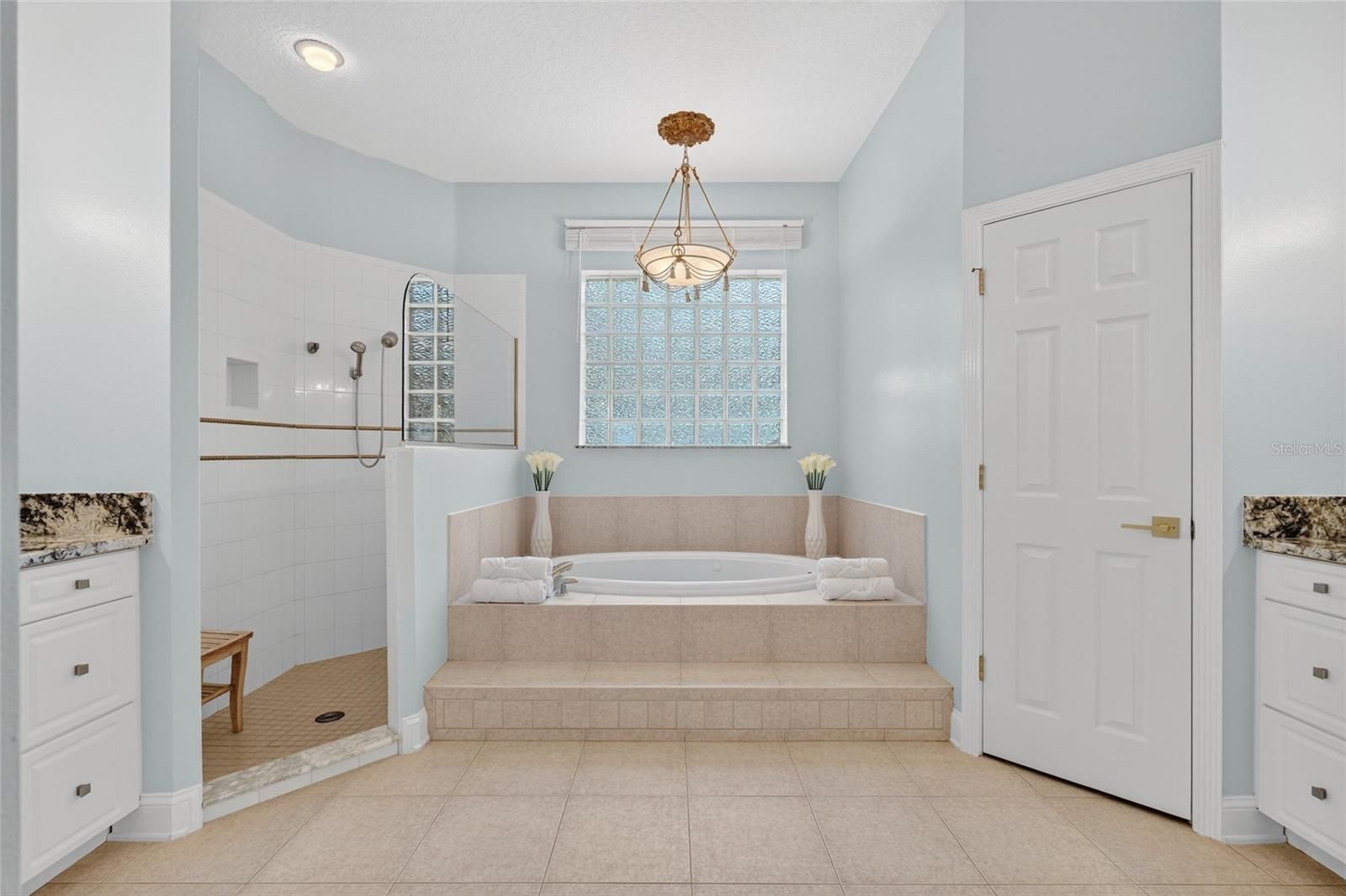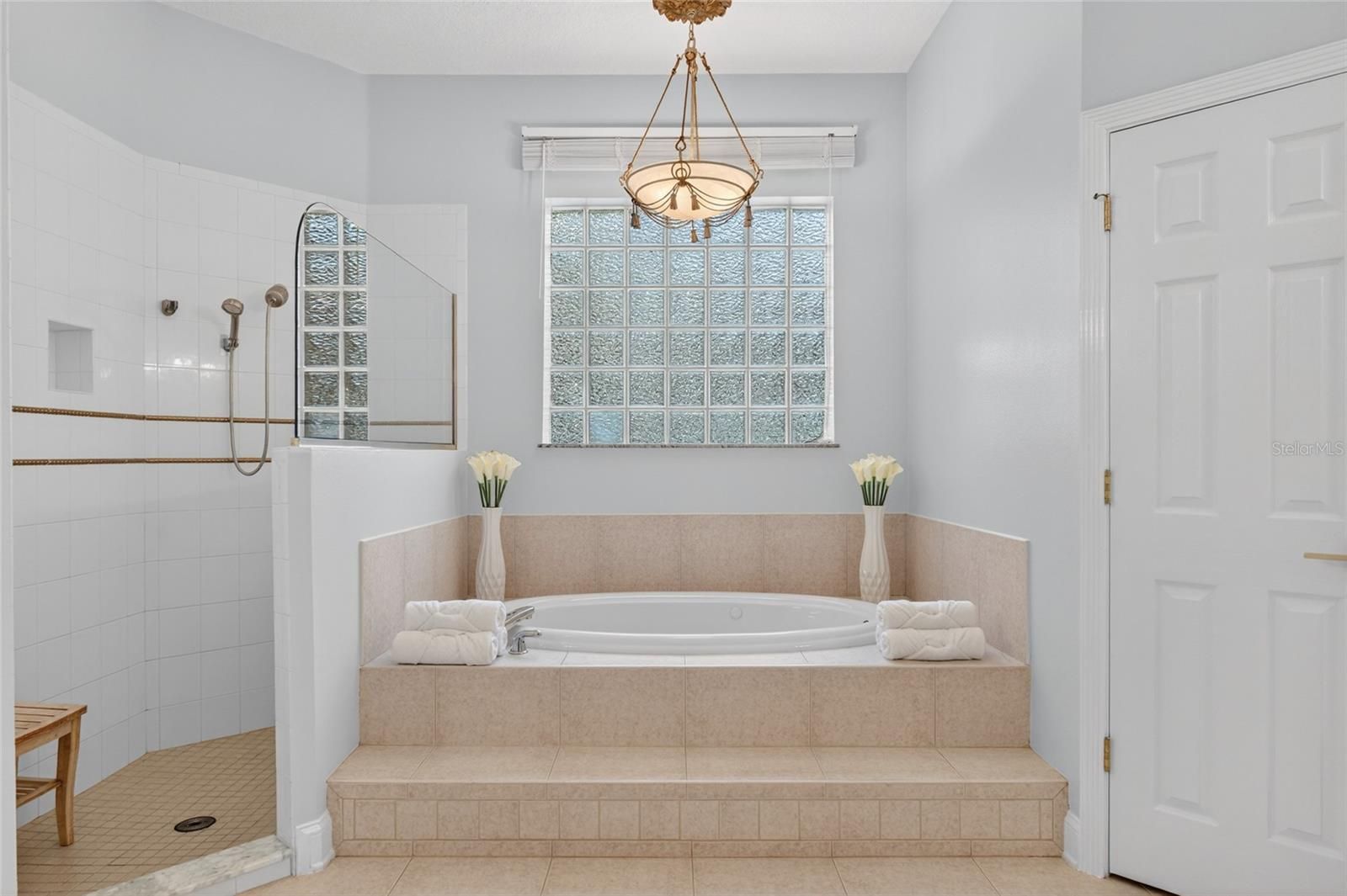 - Ceiling Fan(s), Crown Molding, Eat-in Kitchen, High Ceilings, Kitchen/Family Room Combo, Open Floorplan, Main Level Primary, Split Bedrooms, Stone Counters, Tray Ceiling(s), Walk-In Closet(s)
