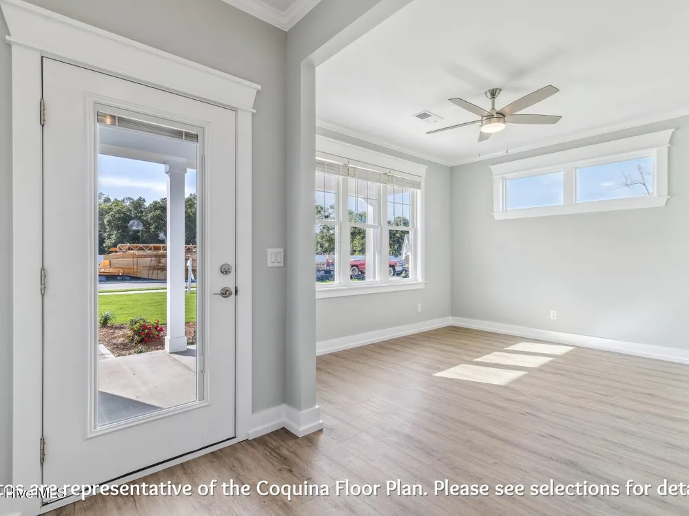 UNDER CONSTRUCTION The Coquina by Elan Homes features a spacious and inviting design, boasting three bedrooms and three bathrooms. The open living plan creates a seamless flow between the common areas, enhancing the sense of connectivity and allowing for a versatile use of space. Additionally, the inclusion of an office provides a dedicated area for work or study. The thoughtful layout of the house combines functionality with a modern aesthetic, making it an ideal setting for both daily living and special occasions. The three bathrooms add convenience and privacy for the residents and guests.One of the highlights of this home is the covered porch at the back, offering a charming outdoor space that can be enjoyed year-round. Whether you're looking to relax with a cup of coffee, entertain guests, or simply take in the fresh air, the covered porch provides a cozy and sheltered retreat. Overall, this home is designed to balance comfort and style, providing a welcoming environment for various activities and moments of relaxation.Photos are representative of the floor plan not the actual property.