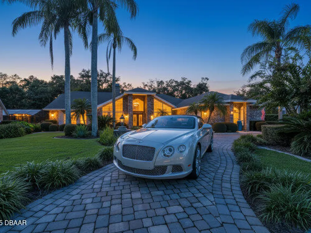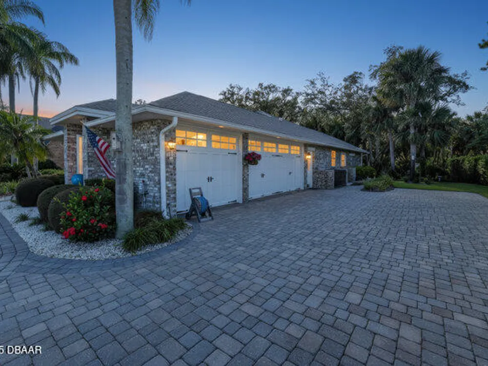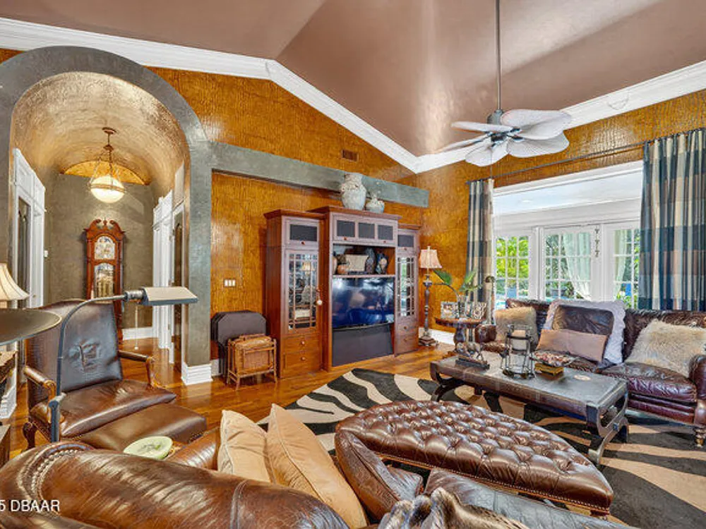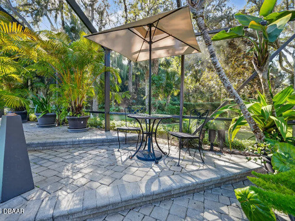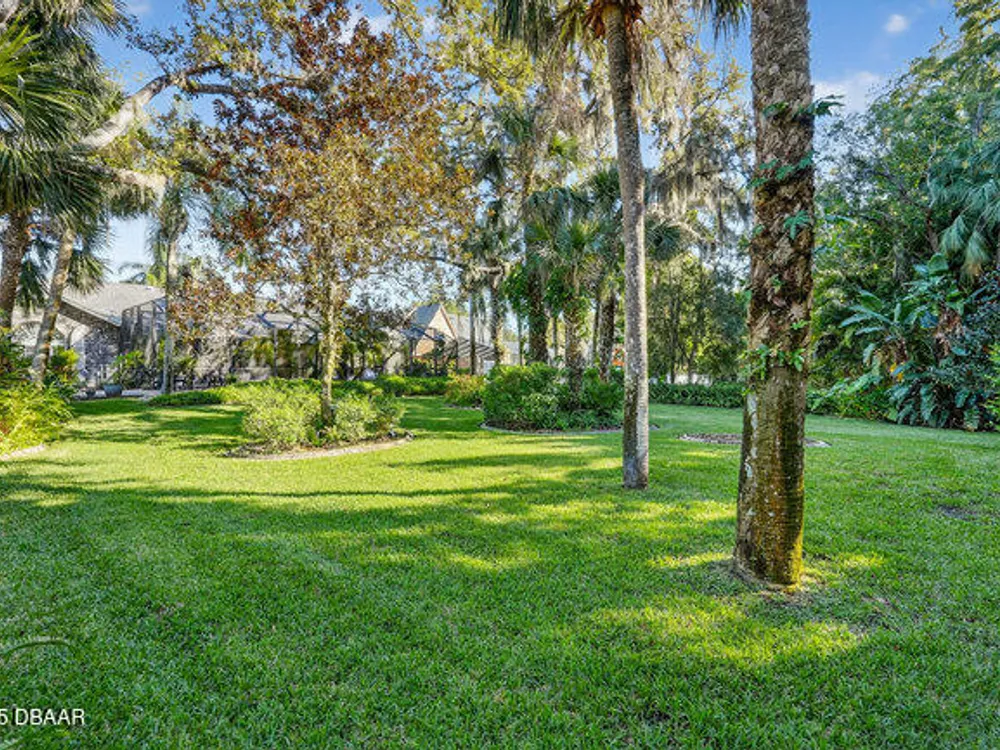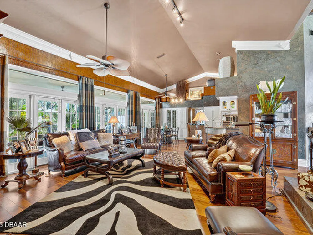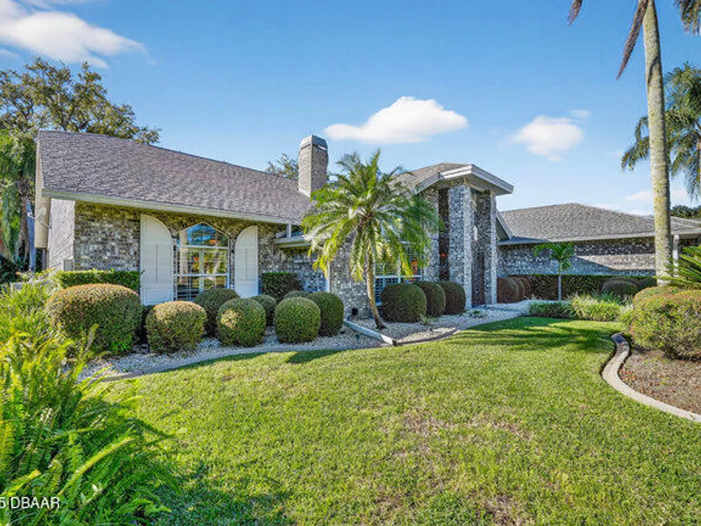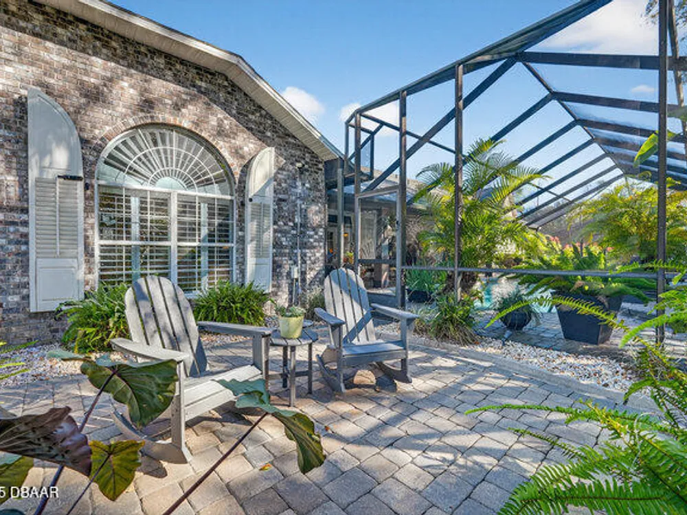 Designed for those who love both elegance and privacy, this impressive estate in gated Breakaway Trails sits on just under three‑quarters of an acre, backing up to a tranquil nature preserve. This 4‑bedroom, 3‑bath home blends timeless craftsmanship with resort‑style outdoor living. Step inside to find soaring 14‑foot ceilings, rich wood floors, and custom millwork throughout. The formal living room features a double‑sided fireplace shared with the family room, creating a warm and inviting ambiance. Luxe wall treatments and plantation shutters enhance the refined design. The owner's suite offers French door access to the lanai, a spa‑inspired bath with marble floors, dual vanities, and a California walk‑in closet. Three additional well‑sized guest bedrooms provide comfortable accommodations, along with a stylish guest bath that includes convenient pool access. The open kitchen centers around an island and cheerful breakfast nook, seamlessly connecting to the family room with three sets of French doors leading to the covered lanai. Outdoors, a resortstyle pool and paver deck set the stage for entertaining, while beyond the pool, the lush parklike backyard borders the preserve of your own private retreat. A climatecontrolled threecar garage and circular driveway complete the estate, offering ample space for guests and gatherings. Experience luxury, privacy, and natural beauty all in one of Ormond Beach's premier gated communities.