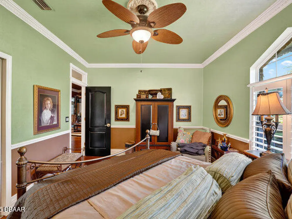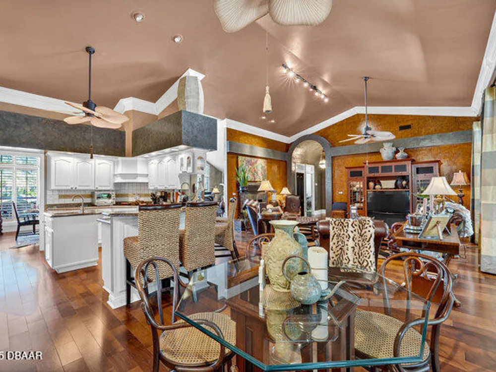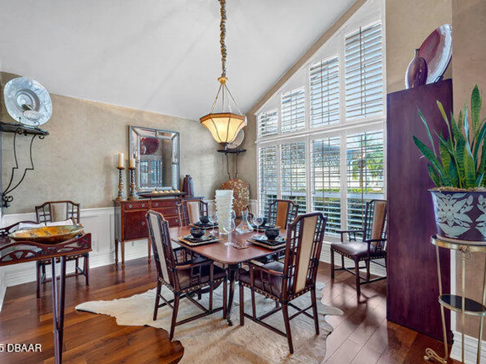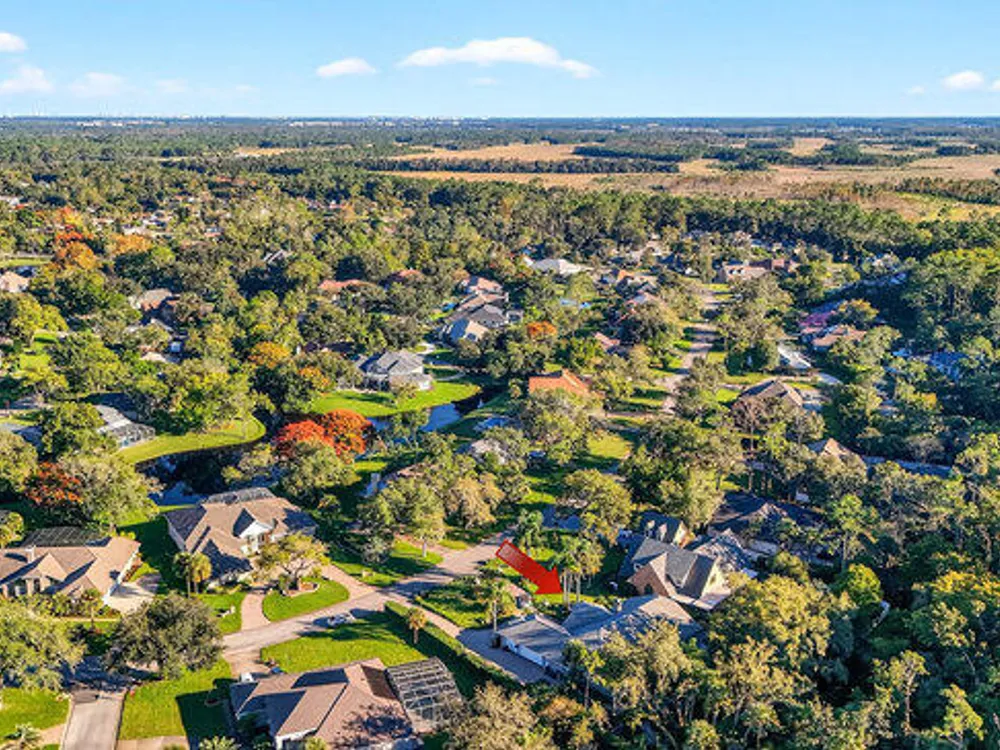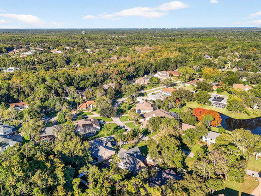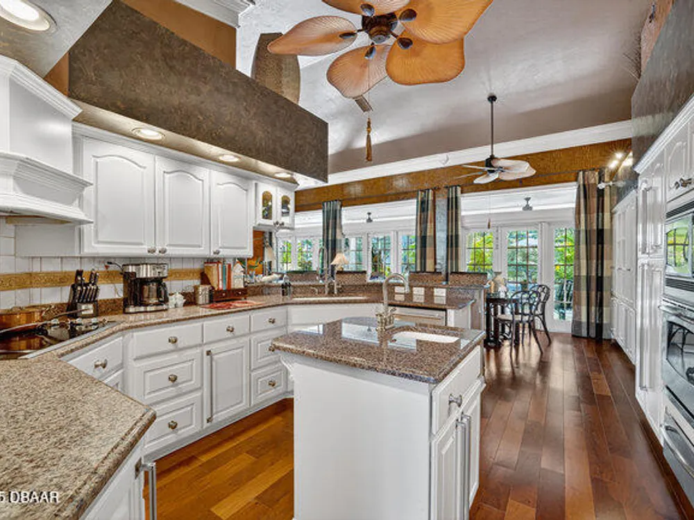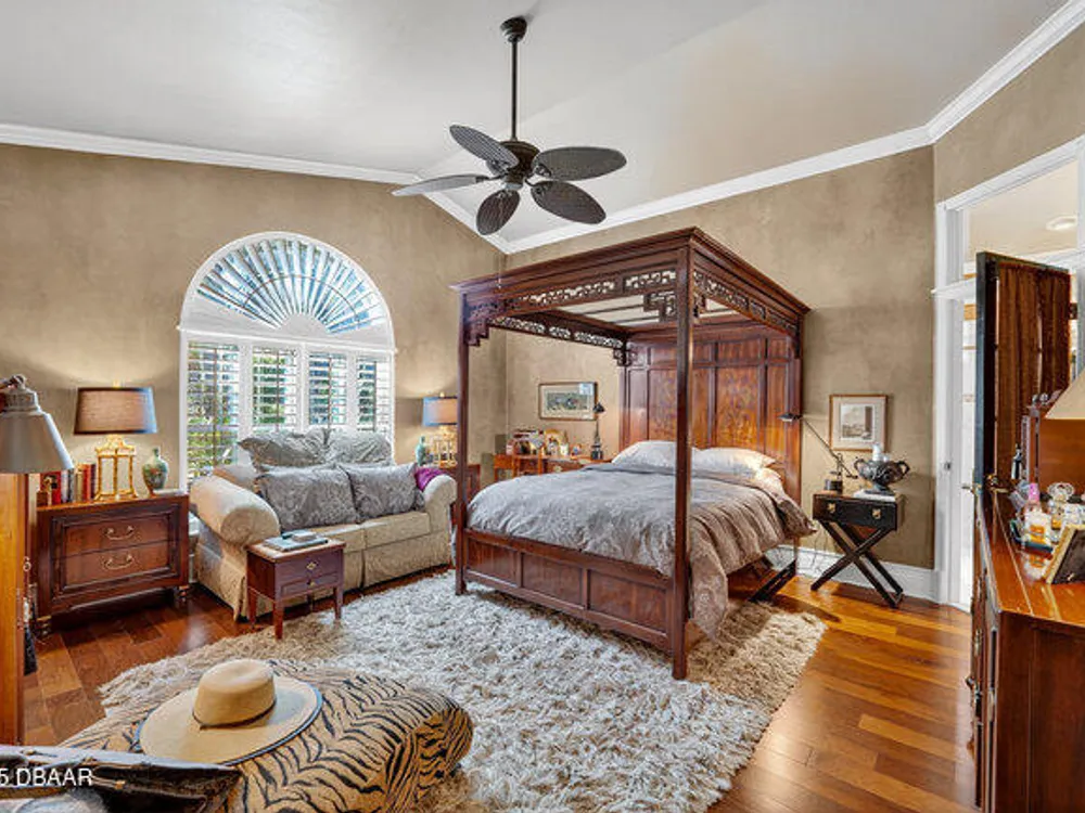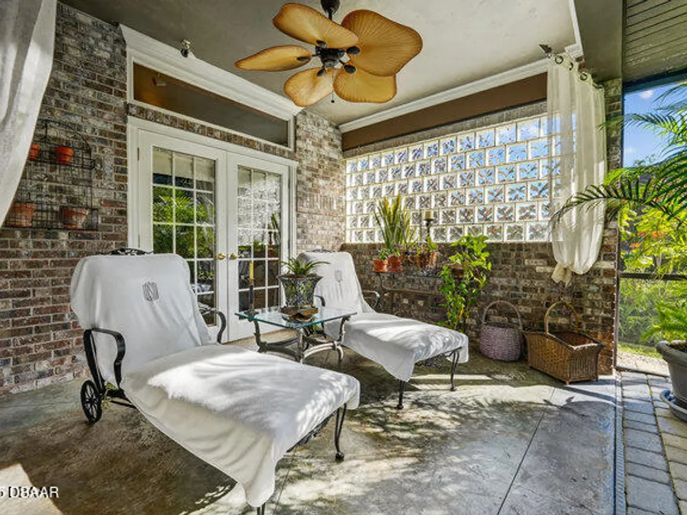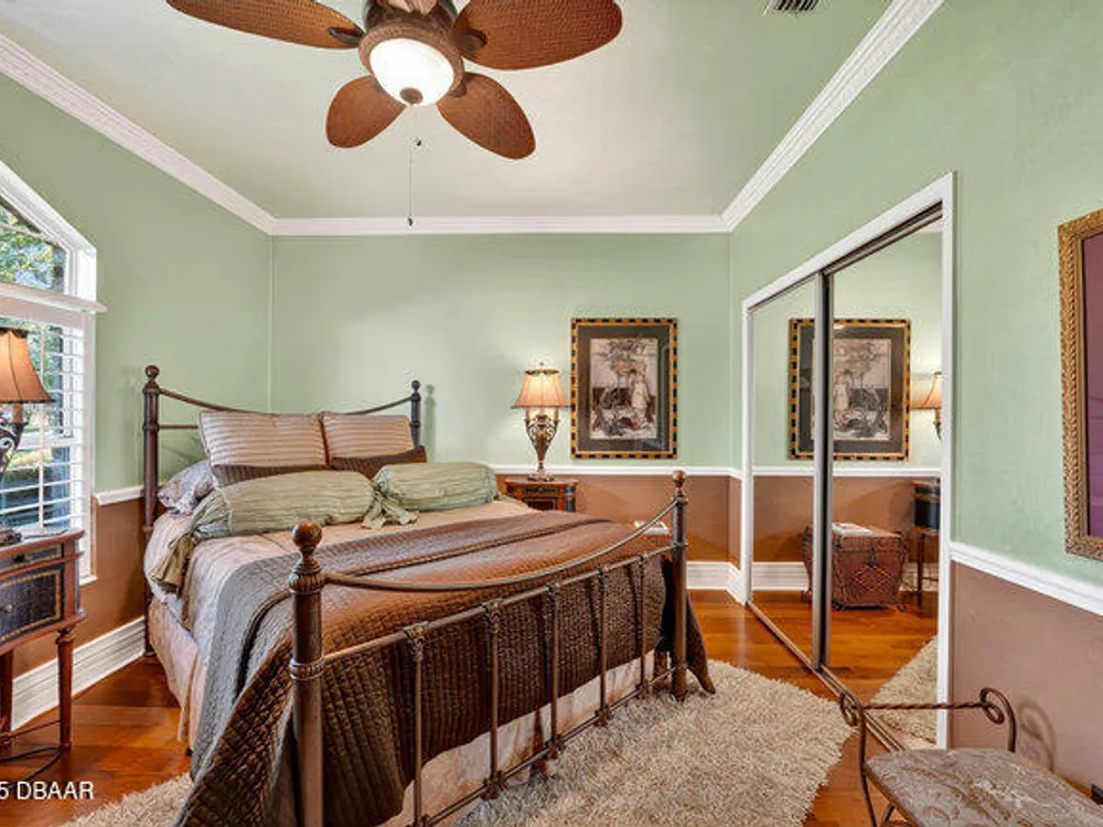 Designed for those who love both elegance and privacy, this impressive estate in gated Breakaway Trails sits on just under three‑quarters of an acre, backing up to a tranquil nature preserve. This 4‑bedroom, 3‑bath home blends timeless craftsmanship with resort‑style outdoor living. Step inside to find soaring 14‑foot ceilings, rich wood floors, and custom millwork throughout. The formal living room features a double‑sided fireplace shared with the family room, creating a warm and inviting ambiance. Luxe wall treatments and plantation shutters enhance the refined design. The owner's suite offers French door access to the lanai, a spa‑inspired bath with marble floors, dual vanities, and a California walk‑in closet. Three additional well‑sized guest bedrooms provide comfortable accommodations, along with a stylish guest bath that includes convenient pool access. The open kitchen centers around an island and cheerful breakfast nook, seamlessly connecting to the family room with three sets of French doors leading to the covered lanai. Outdoors, a resortstyle pool and paver deck set the stage for entertaining, while beyond the pool, the lush parklike backyard borders the preserve of your own private retreat. A climatecontrolled threecar garage and circular driveway complete the estate, offering ample space for guests and gatherings. Experience luxury, privacy, and natural beauty all in one of Ormond Beach's premier gated communities.