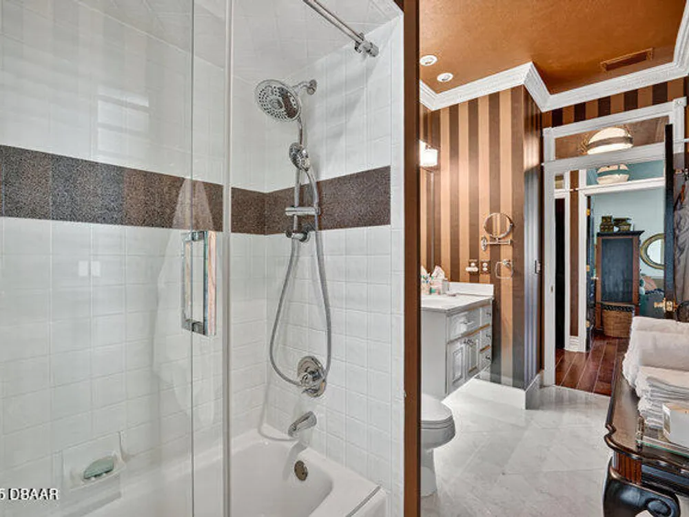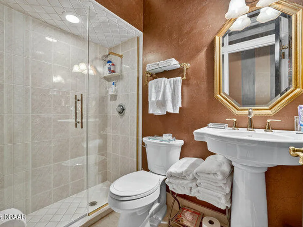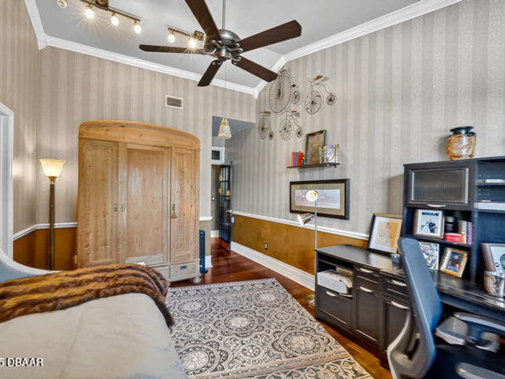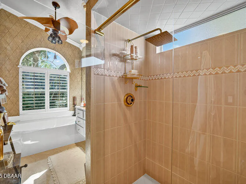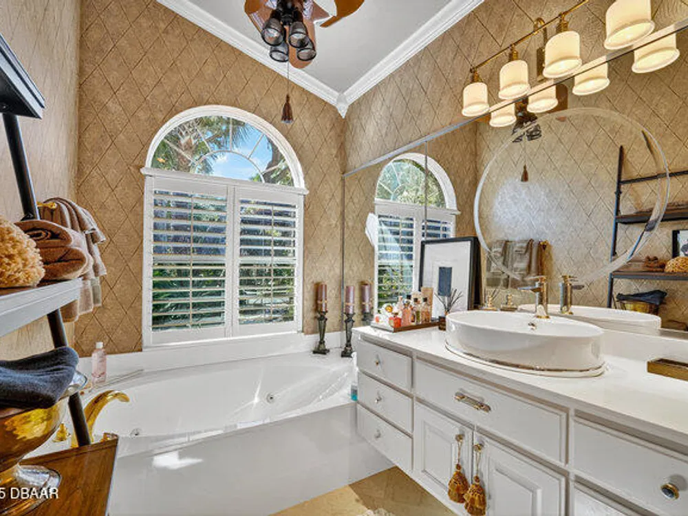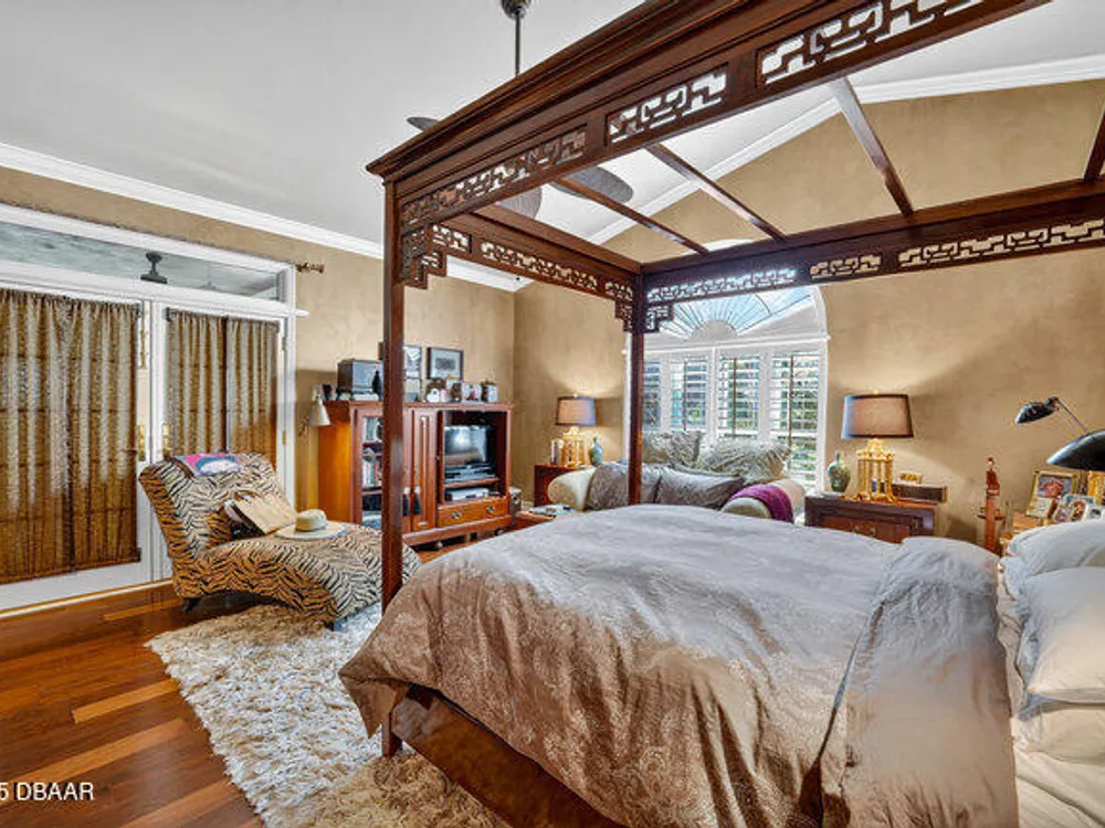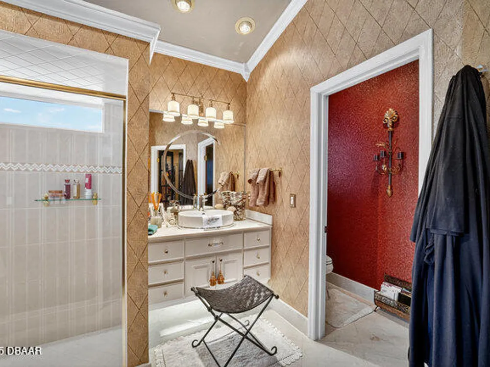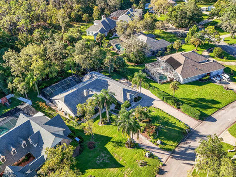 Designed for those who love both elegance and privacy, this impressive estate in gated Breakaway Trails sits on just under three‑quarters of an acre, backing up to a tranquil nature preserve. This 4‑bedroom, 3‑bath home blends timeless craftsmanship with resort‑style outdoor living. Step inside to find soaring 14‑foot ceilings, rich wood floors, and custom millwork throughout. The formal living room features a double‑sided fireplace shared with the family room, creating a warm and inviting ambiance. Luxe wall treatments and plantation shutters enhance the refined design. The owner's suite offers French door access to the lanai, a spa‑inspired bath with marble floors, dual vanities, and a California walk‑in closet. Three additional well‑sized guest bedrooms provide comfortable accommodations, along with a stylish guest bath that includes convenient pool access. The open kitchen centers around an island and cheerful breakfast nook, seamlessly connecting to the family room with three sets of French doors leading to the covered lanai. Outdoors, a resortstyle pool and paver deck set the stage for entertaining, while beyond the pool, the lush parklike backyard borders the preserve of your own private retreat. A climatecontrolled threecar garage and circular driveway complete the estate, offering ample space for guests and gatherings. Experience luxury, privacy, and natural beauty all in one of Ormond Beach's premier gated communities.