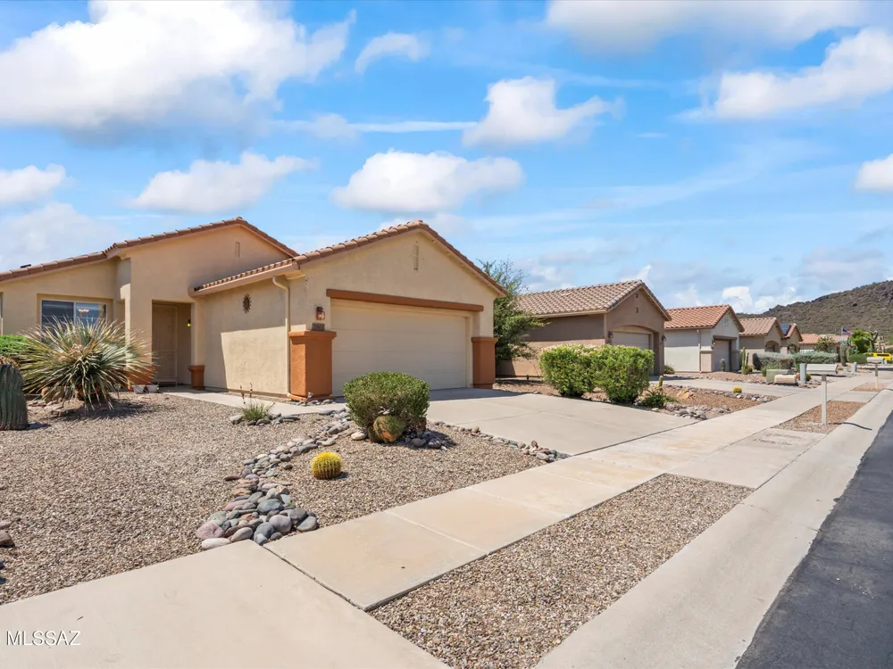 Watch hummingbirds and roadrunners from your front porch in this Sunrise model, located in the desirable Del Webb 55+ community. This 1,114 sq ft home features a spacious primary suite and a flexible bonus room perfect as a guest room, den, or study. Enjoy low-maintenance living and access to resort-style amenities including clubs, fitness classes, swimming, nearby golf, and more. Connect with friendly neighbors in a vibrant, active adult environment. Conveniently located near I-10, shopping, dining, the Huckleberry Loop, and El Rio Preserve. Live simply, actively, and joyfully.