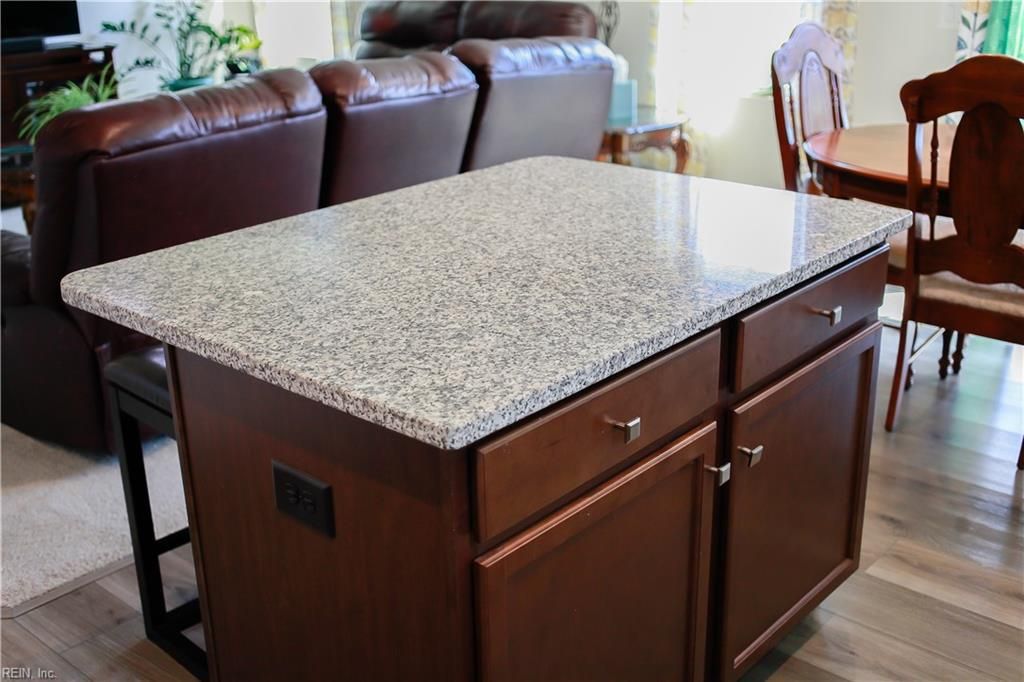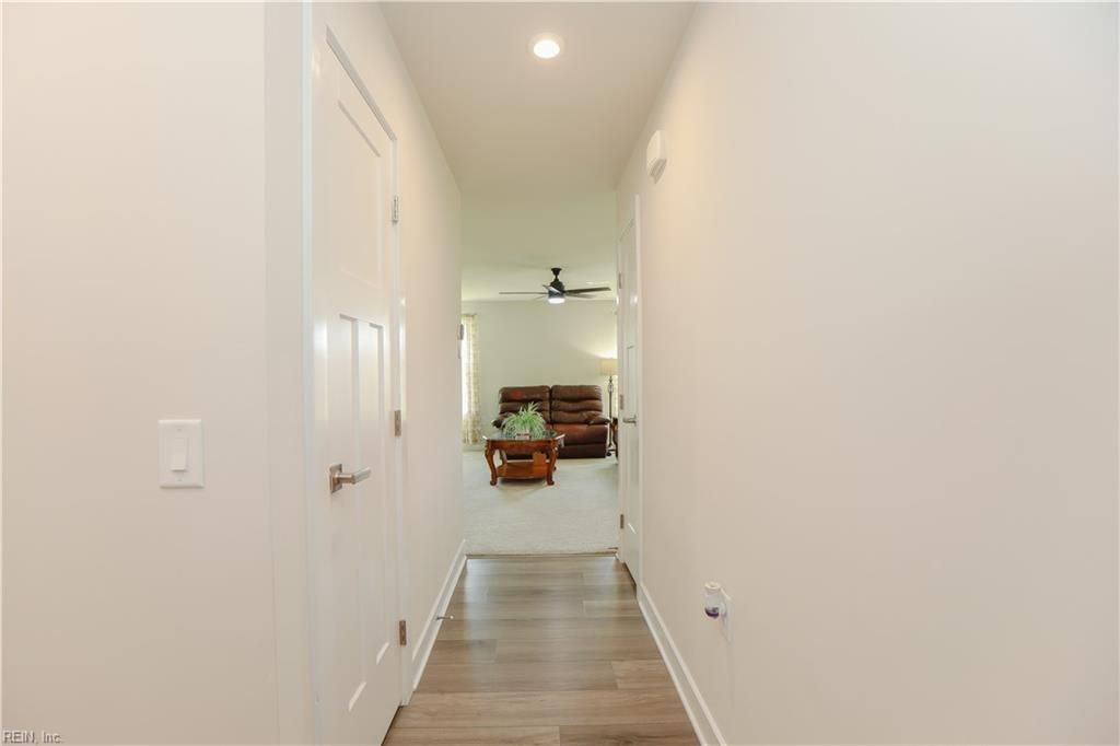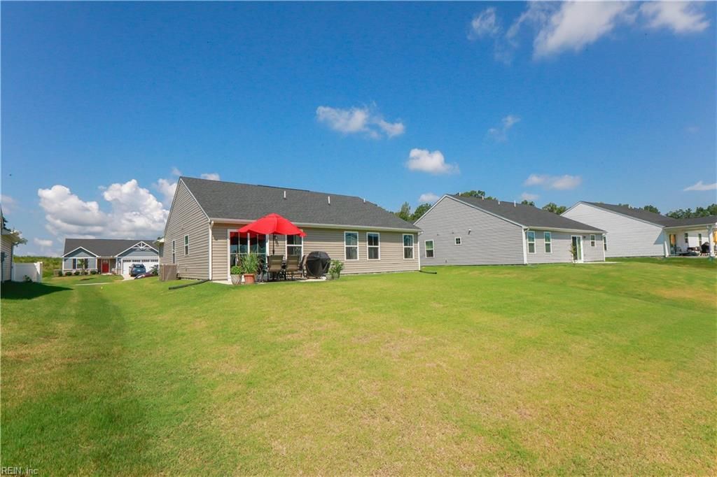 Beautifully maintained, like-new 3-bedroom, 2-bath ranch in the highly desirable Four Seasons at New Kent, a 55+ community ideally located between Richmond and Williamsburg with easy access to I-64. Partial brick home offers one-level living w/ a thoughtful layout. 2 bedrooms & a full bath sit just off the foyer, while the open-concept living room flows into a eat-in kitchen featuring SS GE appliances, granite counters, an island, & ample storage.The spacious primary suite includes a large walk-in closet and a private bath with tile flooring and dual vanities. LVP flooring runs throughout the main living areas, while both bathrooms and the utility room feature tile. Enjoy added convenience with a two-car garage (with automatic opener), driveway and street parking, and included lawn care. Situated on a premium lot with no future development behind it, the covered back patio offers privacy and peace. The Club at Viniterra and New Kent Winery are just minutes away for golf and leisure.