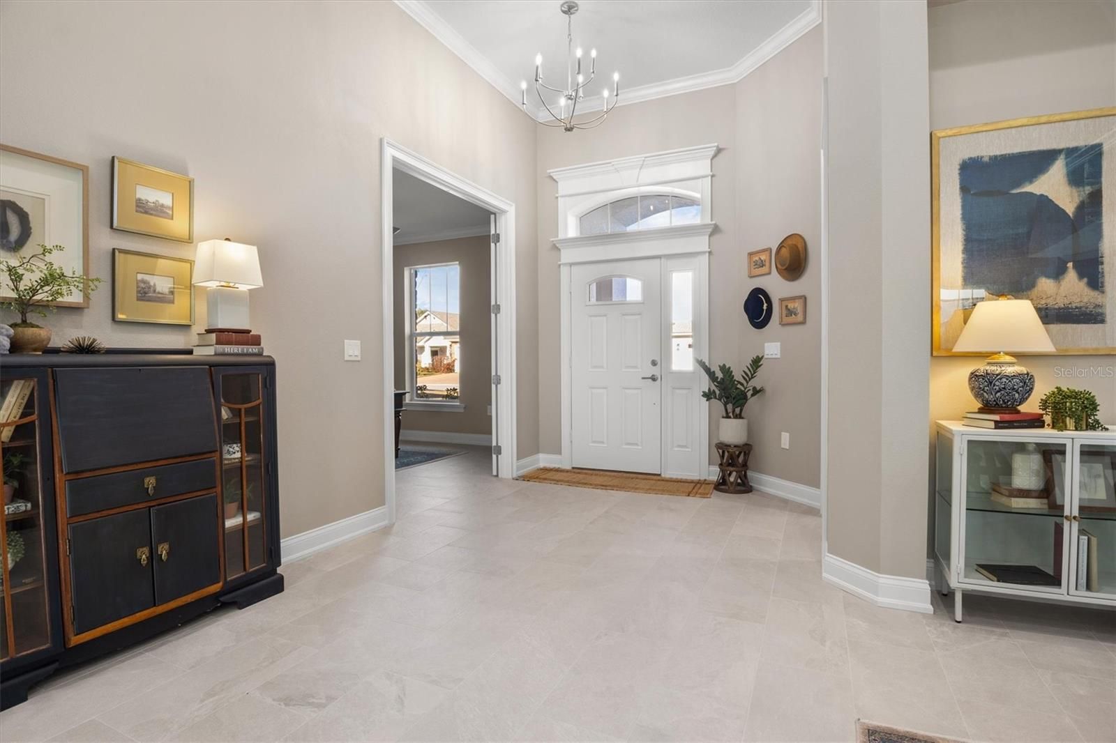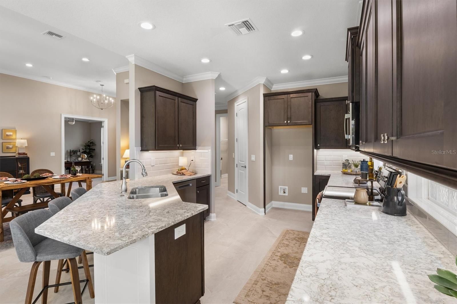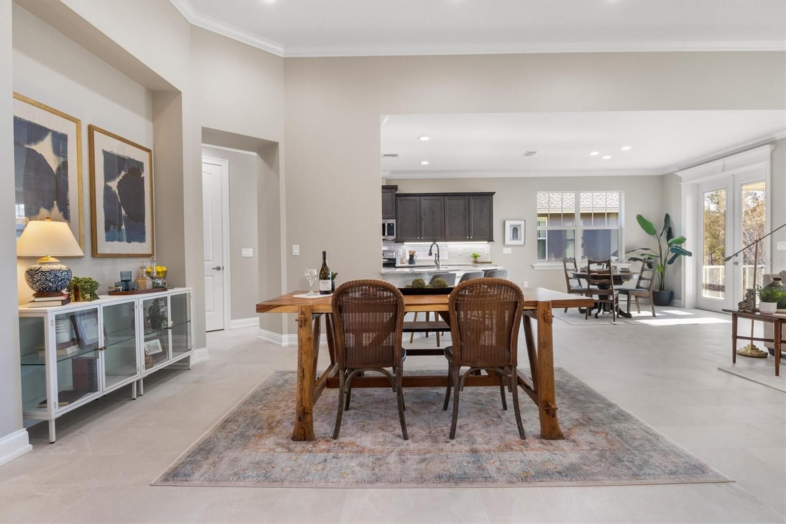 New Construction from Ernie White Construction in Lake James! This home is for the discerning home buyer, looking for quality construction, high end finishes, in a beautiful and established neighborhood. This home is bright, full of natural light, and features an open floor plan. The kitchen is sure to please the cook in the family. From the Wellborn cabinets, Cambria quartz counters, and stainless-steel appliances this kitchen is the heart of the home, overlooking the living room, dining room, and nook. The expansive living area seamlessly blends from one area to the next. If more space is needed, open the French doors and you can expand the living area onto the large screened lanai. The primary suite is located off the living room. Upon entering the primary suite, the bedroom's generous size easily accommodates a king bedroom set. The ensuite bathroom features a large vanity, dual sinks with expansive cabinetry, and a large curbless walk-in shower. There is also a water closet, linen closet, and a huge walk-in closet. The second bedroom is located across the house and has a large closet. Just inside the front door of the home is a large office behind glass French doors. The inside laundry room features a utility sink and leads to the oversized side entry garage. To fully appreciate this home, you must see it for yourself! The upgraded materials and attention to detail are just two factors that set this home apart. The HOA dues include lawn care, Wifi, Cable and upkeep of the common grounds and neighborhood amenities. Call today to schedule a showing.