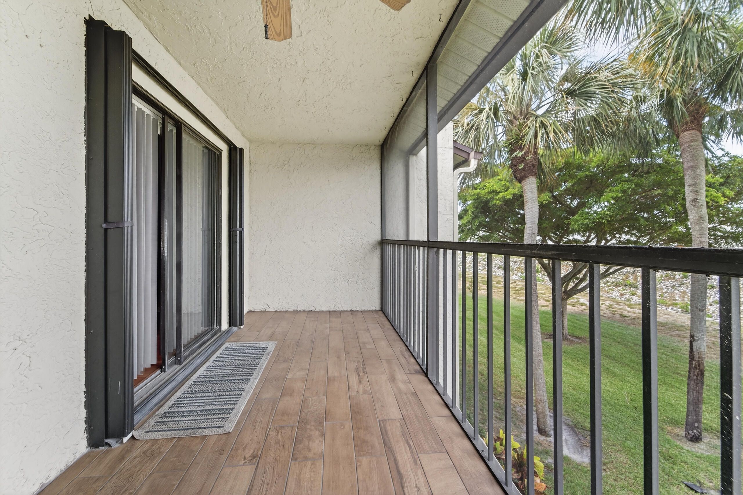 Spectacular 2/2 2nd floor condo with accordion shutters and large screened & tiled patio with storage closet. ***BRAND NEW AC Aug 2025*** Laminate flooring. Spacious kitchen with eat-in area, stainless refrigerator & microwave, awesome backsplash & pass-thru kitchen. Master features large walk-in closet, dual sinks & separate shower. Conveniently located, close to shopping, restaurants, turnpike, airport & beautiful beaches. Welcome to paradise! Move in ready!