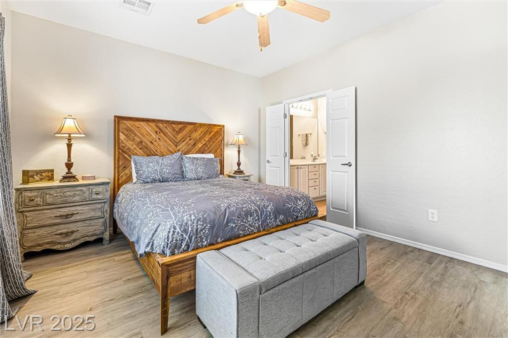 Welcome to this charming 2-bedroom, 2-bath single-story home on a corner lot in the highly desirable 55+ Sun City Aliante community! This beauty offers excellent curb appeal with desert landscaping, stacked-stone accents, and a welcoming gated front courtyard.Step inside to discover a bright and open floor plan with a spacious living area filled with natural light. The kitchen features ample cabinetry, granite countertops, and a cozy dining nook, perfect for everyday living. The primary suite features a large walk-in closet and a private en-suite bath, while the secondary bedroom and full bath are ideal for guests or a home office.Low-maintenance backyard with a covered patio and desert landscaping, perfect for outdoor relaxation. Energy-efficient solar panels added to keep utility costs low.Enjoy access to a 55+ lifestyle, complete with a community clubhouse, fitness center, pool, golf, and social activities. Located near shopping, dining, and freeway access.