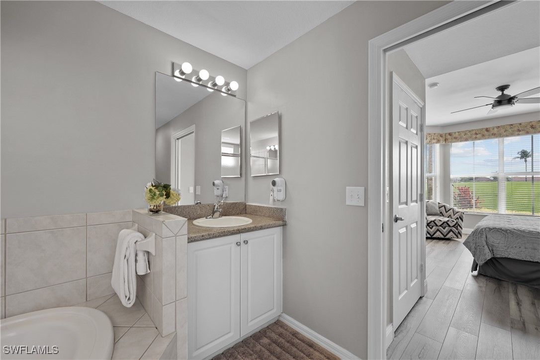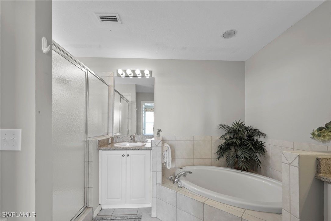 - Bathtub, Dual Sinks, Living/Dining Room, Pantry, Separate Shower, Walk-In Closet(s), Window Treatments, High Speed Internet, Split Bedrooms
