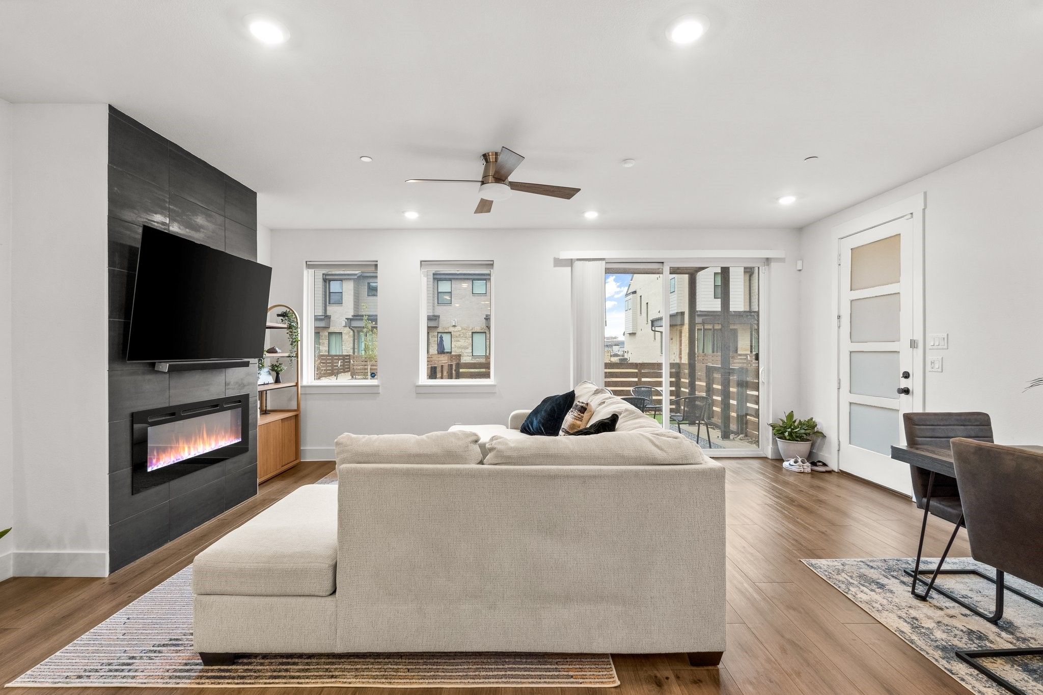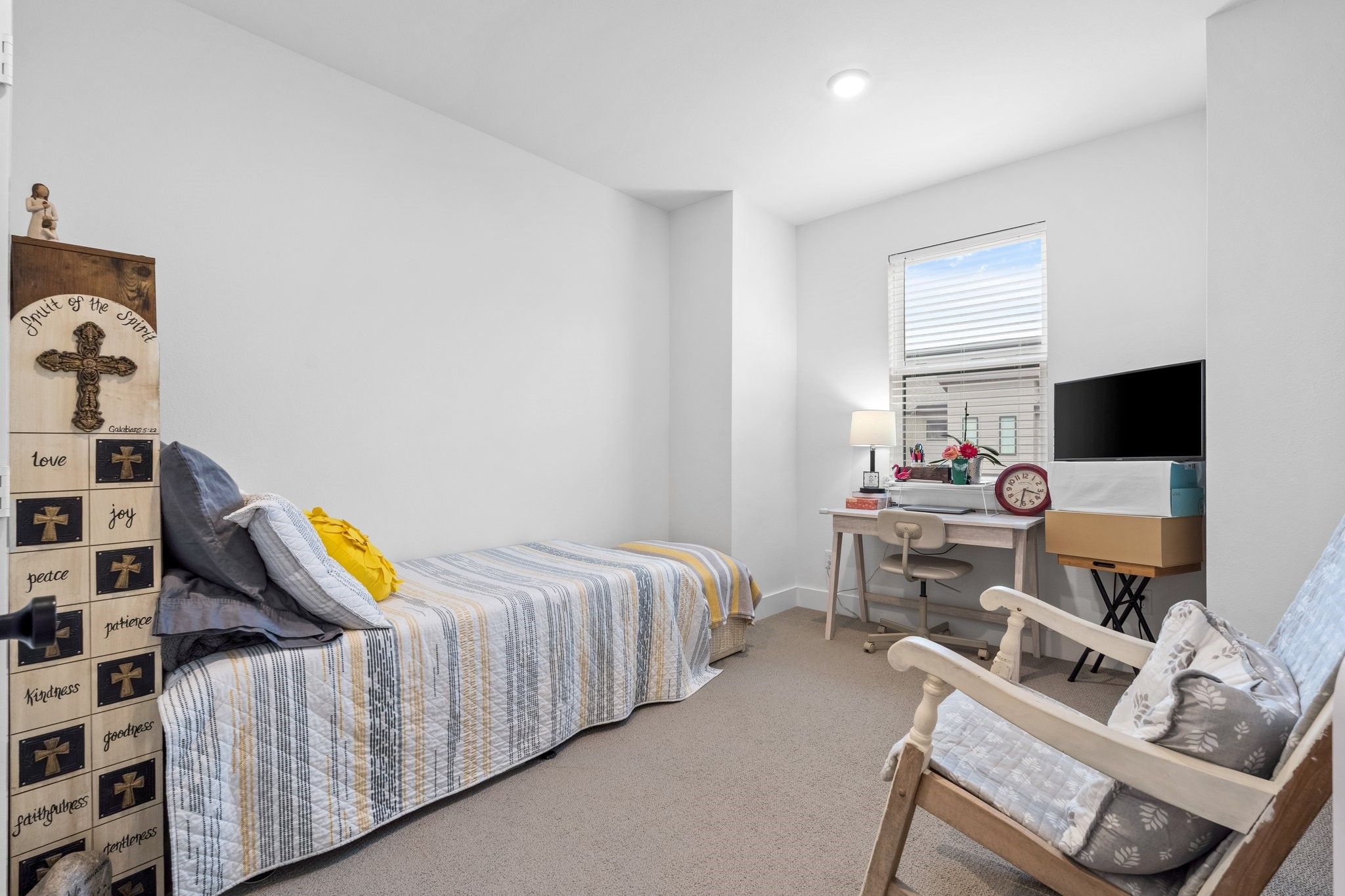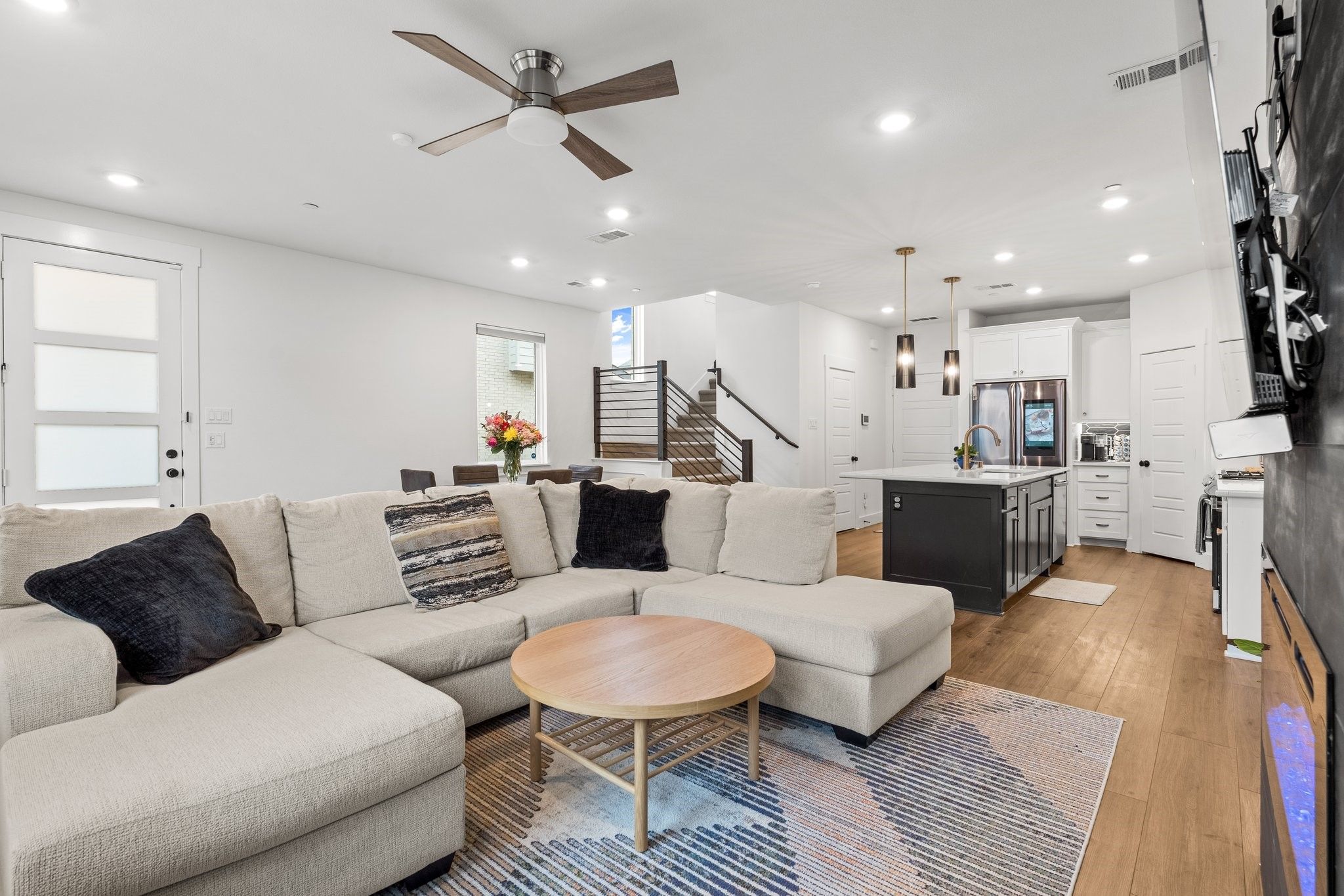 Welcome to this Move-In Ready, stunning townhome located in the award-winning community of Windsong Ranch, nestled in the highly sought-after Prosper ISD. This modern luxury townhome boasts three beds and two and a half baths, offering the perfect blend of style and functionality. As an end unit, the townhome provides extra privacy, an abundance of natural light, and additional upgraded data capabilities. The open-concept floor plan seamlessly connects the kitchen, dining, and living areas. The stylish and functional kitchen is complete with breakfast bar, gas range and stainless steel appliances, while the living area offers a cozy space with modern fireplace to relax and unwind. Upgraded lighting throughout the home can be controlled with remote access, offering convenience and energy efficiency at the touch of a button. Step outside into your pergola covered patio with turfed yard—an excellent space for outdoor entertaining without the maintenance of a traditional lawn. The two-car garage provides plenty of storage space and includes an electric car plug with a full permit, making it perfect for eco-conscious homeowners. Upstairs, the open loft area is versatile and can be used as a home office, playroom, or additional living space. The private primary suite is a true retreat, featuring a luxurious ensuite bathroom with oversized walk-in shower, dual vanities, and a spacious walk-in closet. Windsong Ranch offers an impressive array of world-class amenities, including picturesque walking trails, parks & playgrounds, resort-style pools, a state-of-the-art fitness center, a 5 acre tropical crystal clear water lagoon complete with full beach area, event lawn and more. With its unbeatable location, modern upgrades, and exceptional community, this townhome is a must-see for those seeking a high-end living experience in the sought after city of Prosper. Zoned for the brand new RICHLAND HIGH SCHOOL that just opened in 2025!