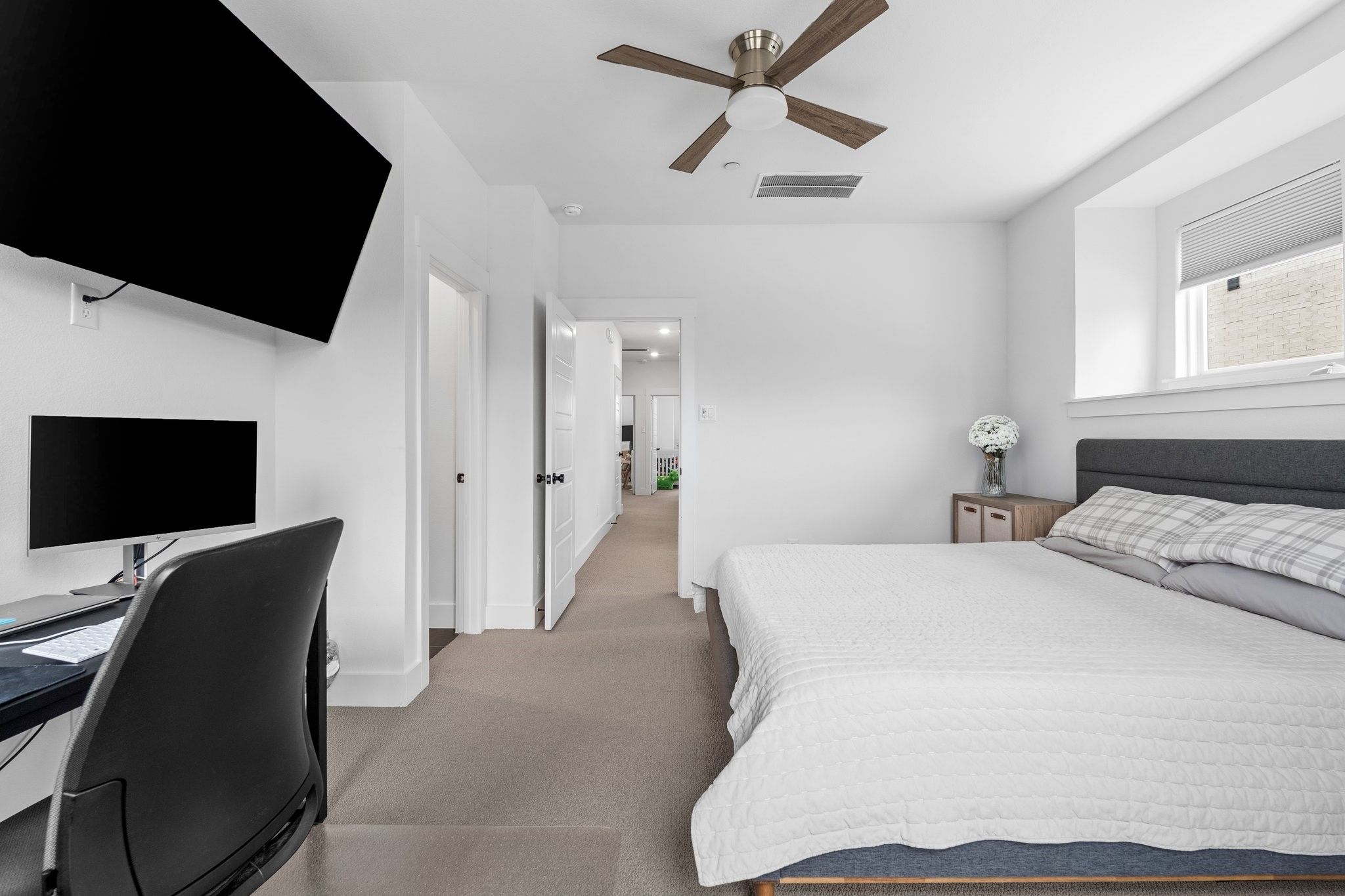 - Attic Fan, Central Air, Ceiling Fan(s), Electric
