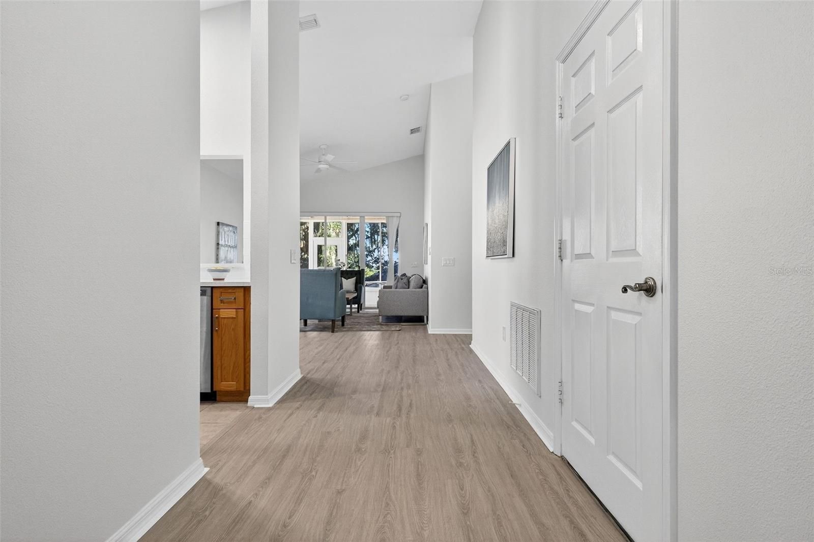 One or more photo(s) has been virtually staged. Completely Remodeled Home in the Guard-Gated Summit Greens Community. Compact layout designed for convenience and low maintenance. Welcome to 791 Wolf Creek Street, a stunning, fully remodeled residence located in Summit Greens, one of Clermont’s most sought-after 55+ golf-course communities. This home has been extensively updated, combining modern design with quality craftsmanship and low-maintenance living. Step inside to an open-concept layout featuring Luxury Vinyl flooring, custom lighting, and a bright, airy living space that flows seamlessly into the dining and kitchen areas. The modern kitchen includes custom cabinetry, quartz countertops, stainless-steel appliances, and ample storage, creating both style and function. Recent Upgrades and Improvements • New roof • New water heater • HVAC system professionally serviced and upgraded, including a full vent cleaning, rewiring, and new blower assembly • Fresh interior paint, new fixtures, and designer finishes throughout Enjoy peaceful mornings and evenings in the private screened lanai, surrounded by mature landscaping and open green views. Living in Summit Greens means enjoying resort-style amenities: an 18-hole championship golf course, heated indoor and outdoor pools, tennis and pickleball courts, fitness center, arts and crafts studios, billiards, and a spacious clubhouse that hosts year-round social activities. Conveniently situated near major highways, shopping, dining, and Clermont’s scenic lakes, this home offers a beautifully updated living experience in a secure, active, and well-maintained community.