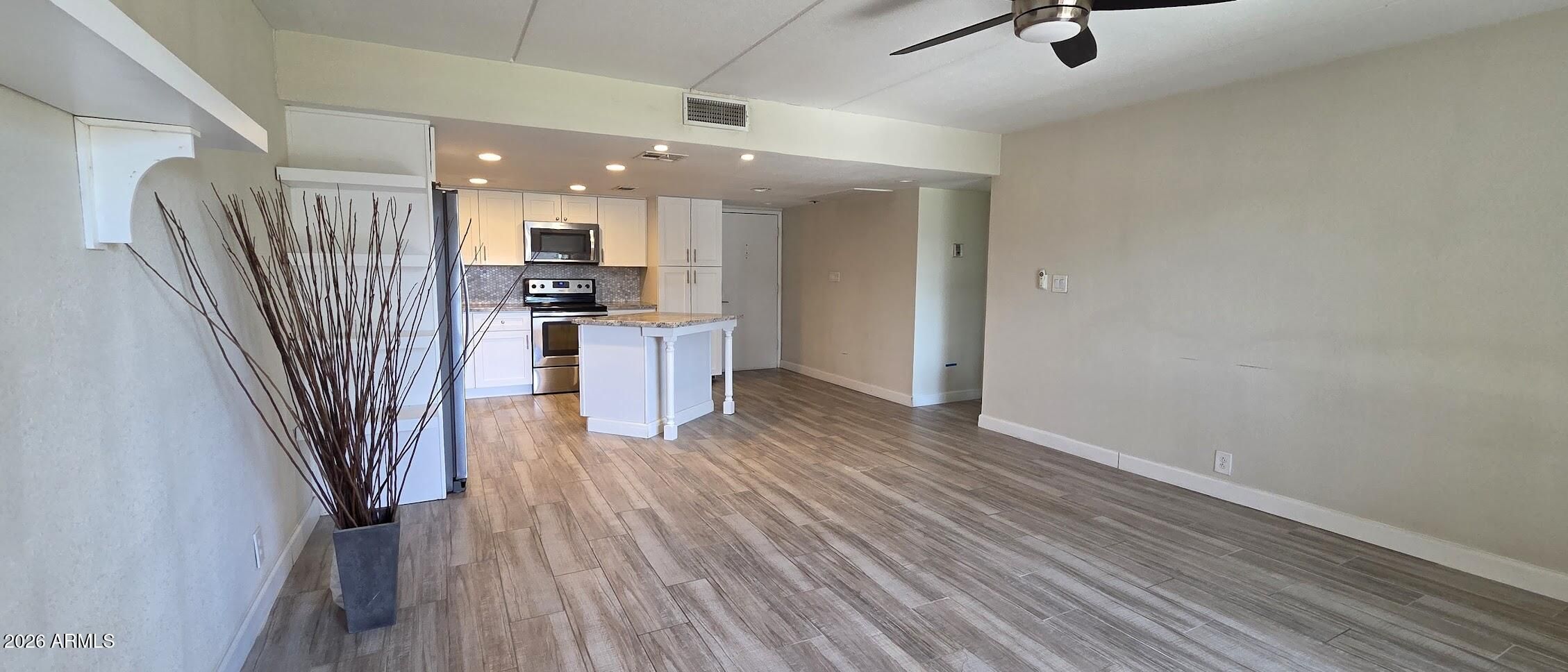 - Refrigerator, Built-in Microwave, Dishwasher, Disposal, Electric Cooktop