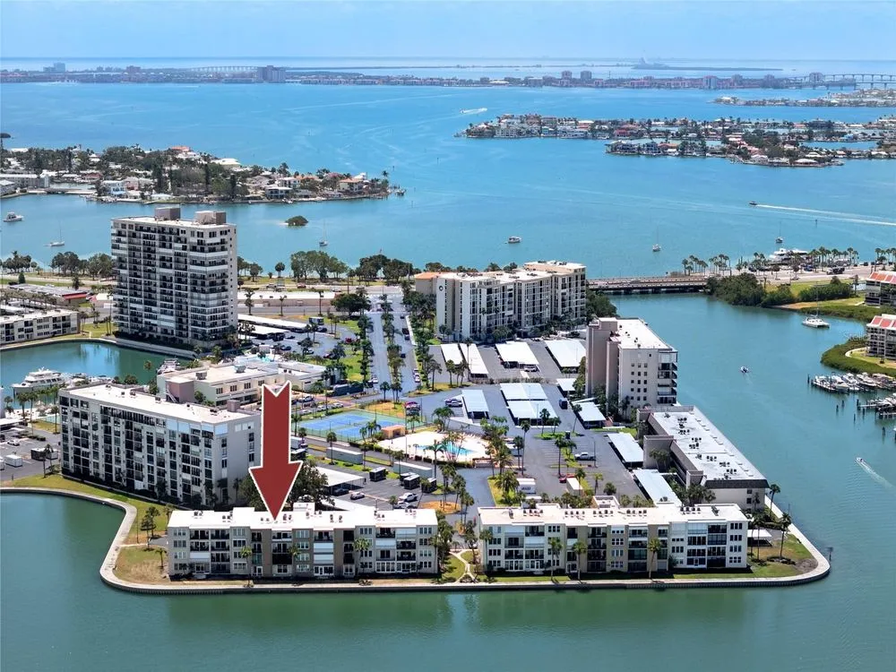 BREATHTAKING Boca Ciega DIRECT WATER VIEWS in this 4th floor unit Bay Island's premier gated 55+ community! Enjoy a vibrant lifestyle living ON THE WATER in this active & secure community with 24-hour security & gated access. This one bedroom, one bath unit is ideal! ELEVATOR ACCESS. CAT & DOG FRIENDLY! — This unit had a leak in the ceiling from the roof, and it was repaired. The right person could complete some remodeling and create a wonderful place to call home or use as your second/vacation getaway. — ENJOY one of 6 heated pools, gather around the BBQ grills at the waterfront tiki hut with friends, work out in the gym or take a mile long waterfront walk for the health of it. Monthly condo fee includes flood insurance, cable, internet, water, trash, exterior maintenance, community tennis and pickle ball courts, 6 heated pools, clubhouse, fitness centers, 4 shuffleboard courts, billiards, library, grilling area, dock and 1+ mile waterfront walking trail. MARINA onsite which features boat slips available through a convenient sign up list. The clubhouse -while getting remodeled- does include pool tables, card rooms, a library with internet access, and separate his & her gyms, 2 spas, and saunas. COVERED PARKING SPOT #404 ** WASHER/DRYER coin operated machines located on the 4th floor! PLUS extra storage locker. Located close to beaches, restaurants, and downtown St. Petersburg, with easy access to Tampa. Bay Islands is a wonderful place to call your own! More pics to come!