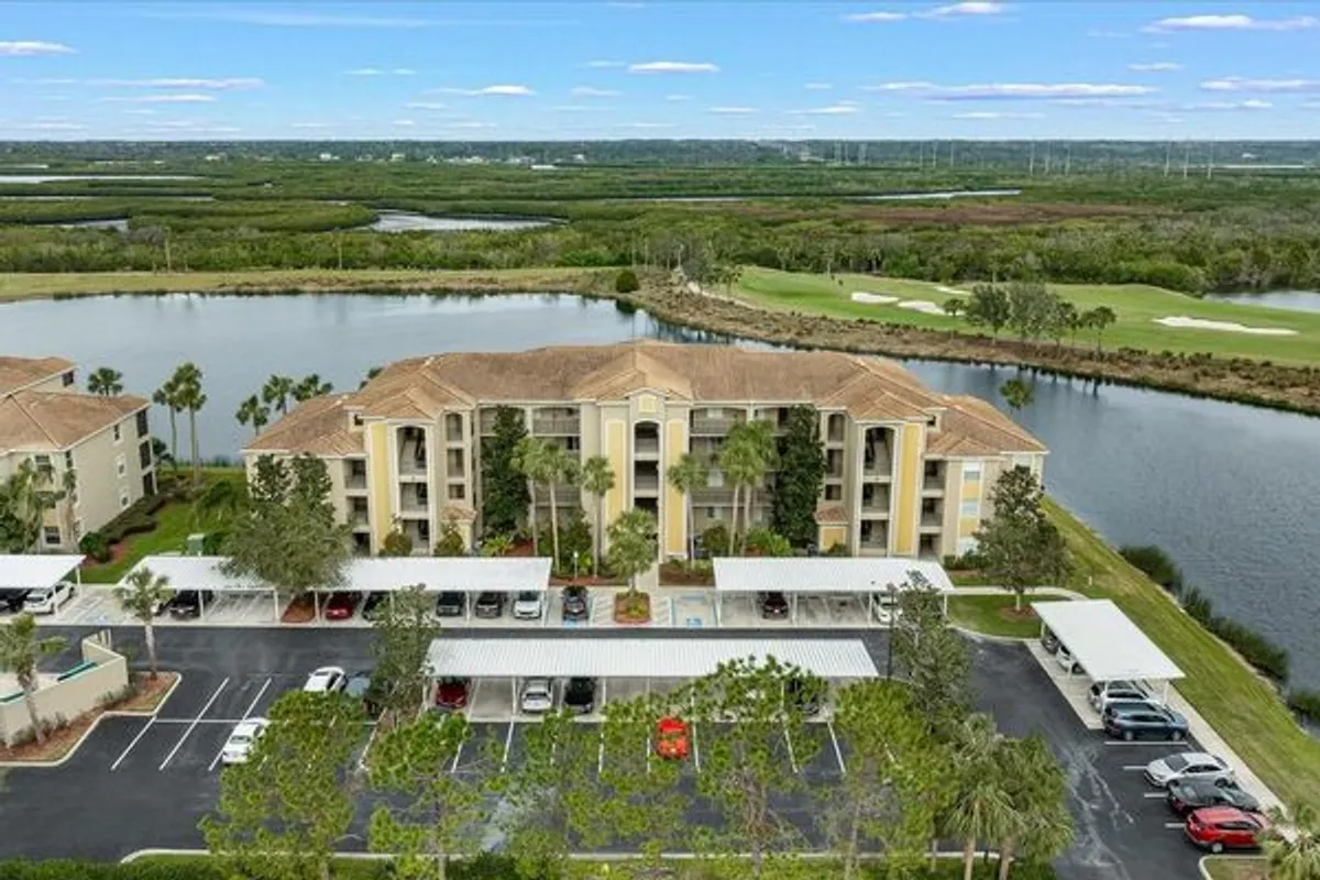 **FULL GOLF PACKAGE COMES WITH THIS UNIT**PANAROMIC WRAP AROUND WATER AND GOLF VIEW! THIS MAY BE THE BEST VIEW IN RIVER STRAND! LOCATION, LOCATION, LOCATION makes this condo the easiest access with your carport right in front of the unit. A GROUND floor TURNKEY FURNISHED "Brookside" model with a bumped-out lanai showcases the ULITIMATE PANORAMIC wrap around WATER AND GOLF VIEWS. The rear Great Room concept is perfect when entertaining friends or enjoying the Picturesque views through the Wall of Windows that includes an EXTRA Window that accompanies the rear lanai sliders.(Not all Brookside models have this.) The spacious lanai is the perfect place to enjoy a cup of coffee and watch the golfers take on the 6th hole of the Estuary. This condo features an owner's retreat with an en suite bathroom and dual walk-in closets and an additional guest bedroom and full bathroom. This favored floor plan has tile throughout the living area and new wood laminate in bedrooms, stainless steel appliances, and a separate storage unit for golf clubs or beach equipment. This condo includes a FULL GOLF MEMBERSHIP to River Strand Golf and Country Club, which features 27 hole Arthur Hills Designed championship golf course. Residents can enjoy the community resort-style pool, as well as onsite restaurant and bar. Order up a daiquiri to celebrate after a round, relax by the pool, or arrange a social meet with friends. As well as the many social activities in the community, residents have access to not just the scenic golf course views, but deeded membership to the stunning (and challenging) River Strand Golf Course, as well as the Har-Tru tennis courts and newly installed Pickleball Courts. Representing Exceptional value, and being in move-in ready condition, River Strand condos do not come much better........ The 39,000-square-foot clubhouse offers dining facilities in a semi-formal dining area, a grille room, and a Tiki bar for those who want to enjoy our beautiful Florida weather. The clubhouse also has a fitness center, aerobics room, locker rooms, resort-style pool, resistance pool, and heated spa. Our Pro Shop carries the latest in golf technology and apparel and the Pro Shop staff are certified teaching professionals, ready to help you with every part of your golf game. Adjacent to the clubhouse is the Racquet Sports Pro Shop and 9 Har-Tru clay tennis courts. Racquet sports extend to the community center and 8 pickleball courts. The Racquet Pro Shop offers products for sale, and services such as racquet re-stringing and lessons. Our Racquet Pro Shop staff are certified teaching professionals and are ready to help you with your tennis and pickleball needs. In addition to six satellite pools strategically located throughout our community, River Strand's community center has a second resort style pool with a heated spa. At our community center, members can get in shape at a second fitness center. They can frequently be found playing Bridge, Mah Jong, Bingo, simply getting together for social events, or competing with other members on our half-court basketball courts. River Strand hosts several events throughout the year with live entertainment. These include holiday parties, Trivia nights, Name That Tune competitions, and pool parties. Welcome to River Strand!