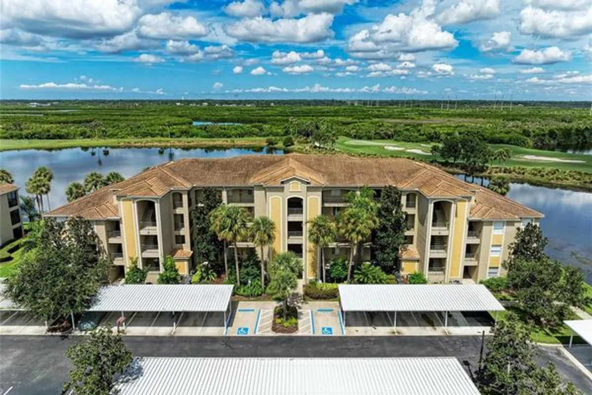 Welcome to the lifestyle you’ve been dreaming of in this Colonnade model — the largest of its kind — ideally located in the end building for added privacy and breathtaking WRAPAROUND WATER VIEWS from every main living space! Offering nearly 1,300 sq. ft. of beautifully designed living area, this FULLY FURNISHED, FIRST FLOOR END UNIT features the perfect layout with a spacious kitchen overlooking the dining area, and great room perfect for entertaining or relaxing. Sliders lead to the screened lanai designed to be your own private escape, as you watch the golfers approach the green and enjoy the surrounding wildlife. The primary suite is a true retreat, complete with two walk-in closets, a large en-suite bath, and serene water views. You will also appreciate a generous second bedroom and a versatile flex space that can be used as a home office, den, or extra guest room. With a newer A/C (2023) and water heater (2024), fresh custom paint, updated light fixtures, and stylish furnishings, this GOLF DEEDED home is move-in ready and waiting for it's next owner to enjoy! Additional conveniences include a covered carport, a private storage room just across the hall, and HOA-covered water, cable, and internet. River Strand is a gated resort community known for its 27 holes of championship golf, a full clubhouse with restaurant and grille room, two resort pools and spas, tiki bar, six satellite pools, tennis and pickleball courts, and a vibrant calendar of fitness and social events. The clubhouse is currently undergoing an exciting renovation, featuring impressive updates to the restaurant, grille, and tiki bar that promise an elevated experience for both members and guests. Located just minutes from the new Marketplace featuring Costco, Target, and an exciting lineup of new restaurants and shops — plus, you're only a short drive to the stunning Gulf Coast beaches! This home offers everything you've been looking for, so come and experience River Strand at it's best, you may never want to leave!