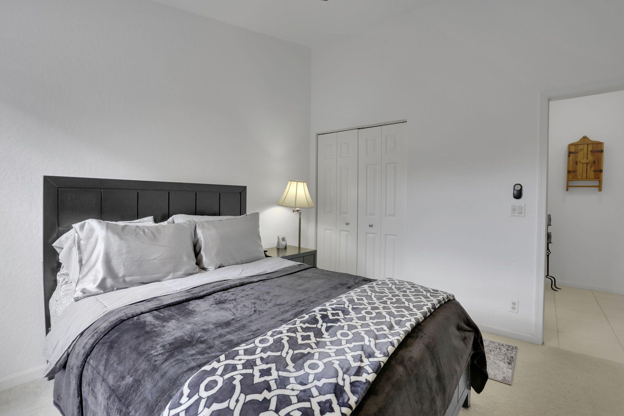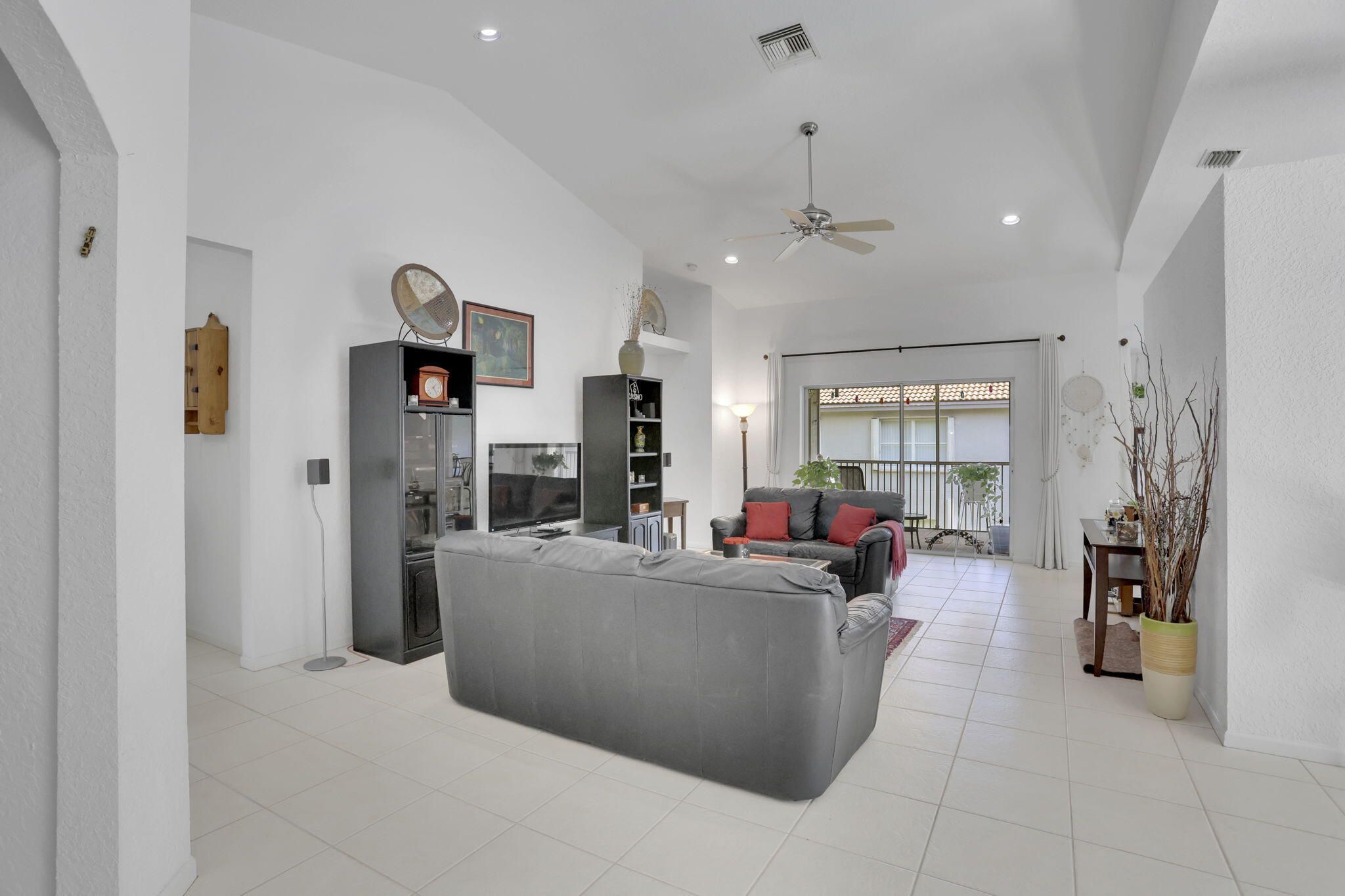 Beautiful end-unit coach home featuring 3 bedrooms, 2 baths, vaulted ceilings, and a private elevator. Relax on your large enclosed patio with serene lake views. Enjoy peace of mind with 2023 Roof, 2025 Exterior Paint, AC 2023 and HW 2020. The spacious primary suite offers two closets and a double-vanity ensuite, while the third bedroom functions perfectly as a den or office. Beautiful wood blinds throughout. The Grove is an active lifestyle community with a newly renovated clubhouse offering a saltwater pool, hot tub, fitness center, aerobics room, pickleball, tennis, shuffleboard, bocce, putting green, billiards, library, and more. Conveniently located near shopping, dining, major highways, the Delray Marketplace, and just minutes from the beach—experience Florida living at its best
