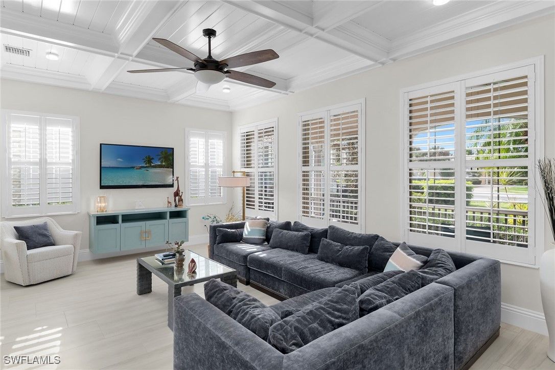 This four bedroom/four bath (double master bath) Carlyle single family home is a rarely available 2800-sq. ft. model, especially with the many designer upgrades it features, in the popular Verona Walk community. This original DiVosta-built home has poured concrete walls, a built-in vacuum cleaning system, and a screened, tiled front porch that leads to an airy foyer. Enjoy sophisticated Florida living in your formal extended living and dining rooms. Porcelain tile floors cover the entire living space, which also features a fireplace with heater, wine refrigerator, and Patricia chandelier. Outside, enjoy the heated pool and spa and retractable awning with a water view through a panoramic lanai cage screen and complete privacy due to its location on a private cul-de-sac. Garage has A/C and workshop. Roof new in 2020. Verona Walk offers 24-hour security with guarded gate, large resort style community pool, lap pool, 6 pickleball courts, 8 tennis courts, bocce ball, basketball courts, gym, kids’ playground, and walking paths with bridges. Town Center includes the newly-remodeled Verona Grill Restaurant, the Pink Frog ice cream shop, Salon at Verona Walk, travel agency, gas station, post office, library, computer center, ballrooms for events, card rooms, and activity director. REASONABLE HOA DUES THAT INCLUDE CABLE TV WITH DVR, INTERNET, ADT SECURITY SYSTEM, AND LANDSCAPING SERVICES THAT INCLUDES LAWN CARE A short drive to Downtown Naples & Marco Island for fine dining, beaches, and boating and to Physicians' Regional Medical Center. You MUST see this home to appreciate the many upgrades it features.
