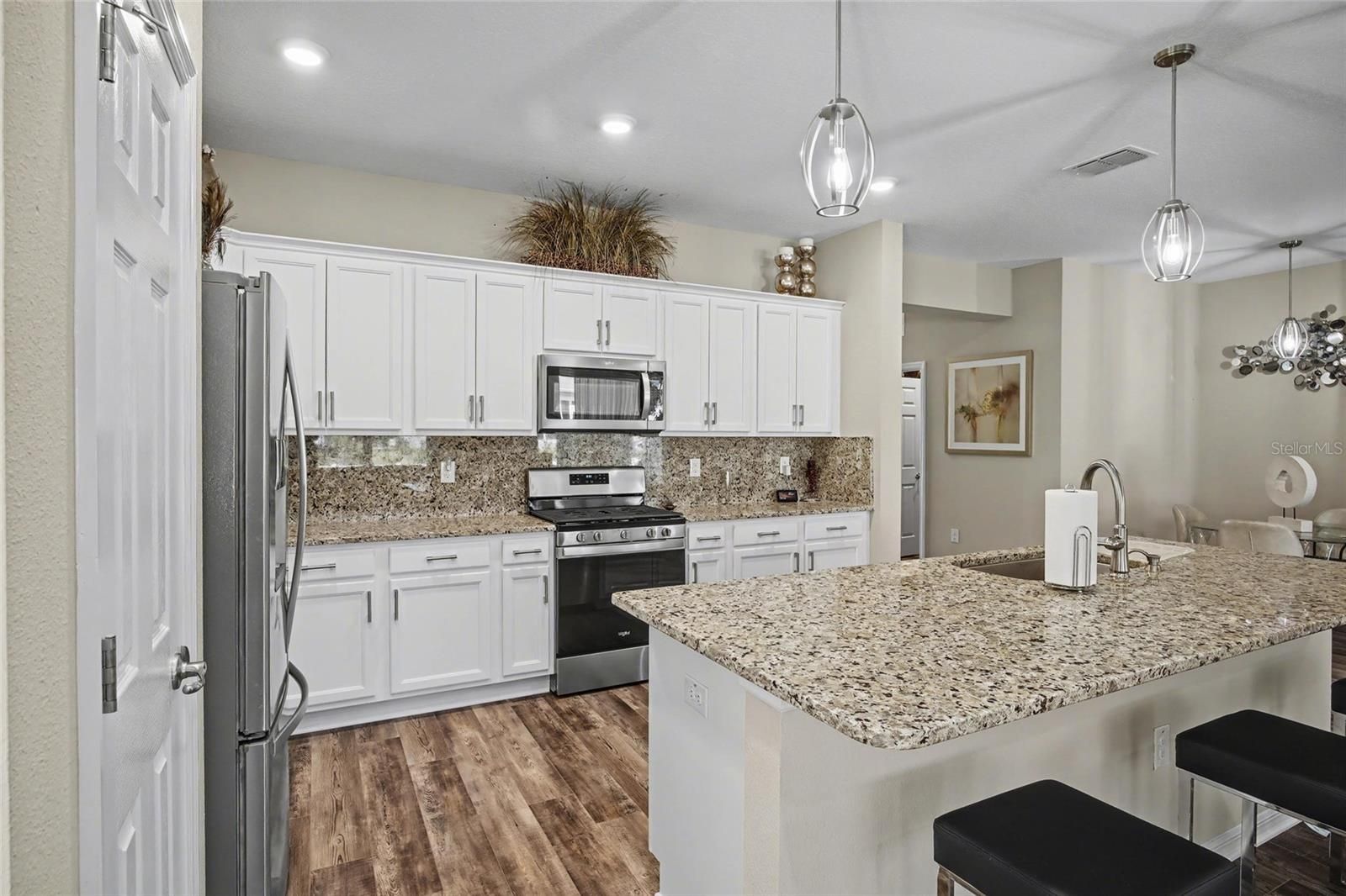 Welcome to this impeccably maintained home in Weybourne Landing, where luxury meets functional design. A grand PAVER DRIVEWAY leads you into an interior defined by elegant tray ceilings, crown molding, and high-quality LUXURY vinyl plank flooring. The heart of the home is an impressive open kitchen featuring granite countertops, a matching granite backsplash, and a gas range. The primary suite serves as a true retreat, boasting a spacious walk-in closet and an upgraded en-suite bathroom with a massive, high-end walk-in shower and dual vanities. Step outside to your private sanctuary: a FULLY FENCED-IN backyard complete with a DECORATIVE PATIO and a serene zen garden. Practical upgrades abound, including a large laundry room with built-in cabinetry, a water softener, extra garage ceiling storage, and a smart-home security system. Escape the everyday and step into the lifestyle you deserve. Schedule your private showing today to experience this Weybourne Landing gem in person.
