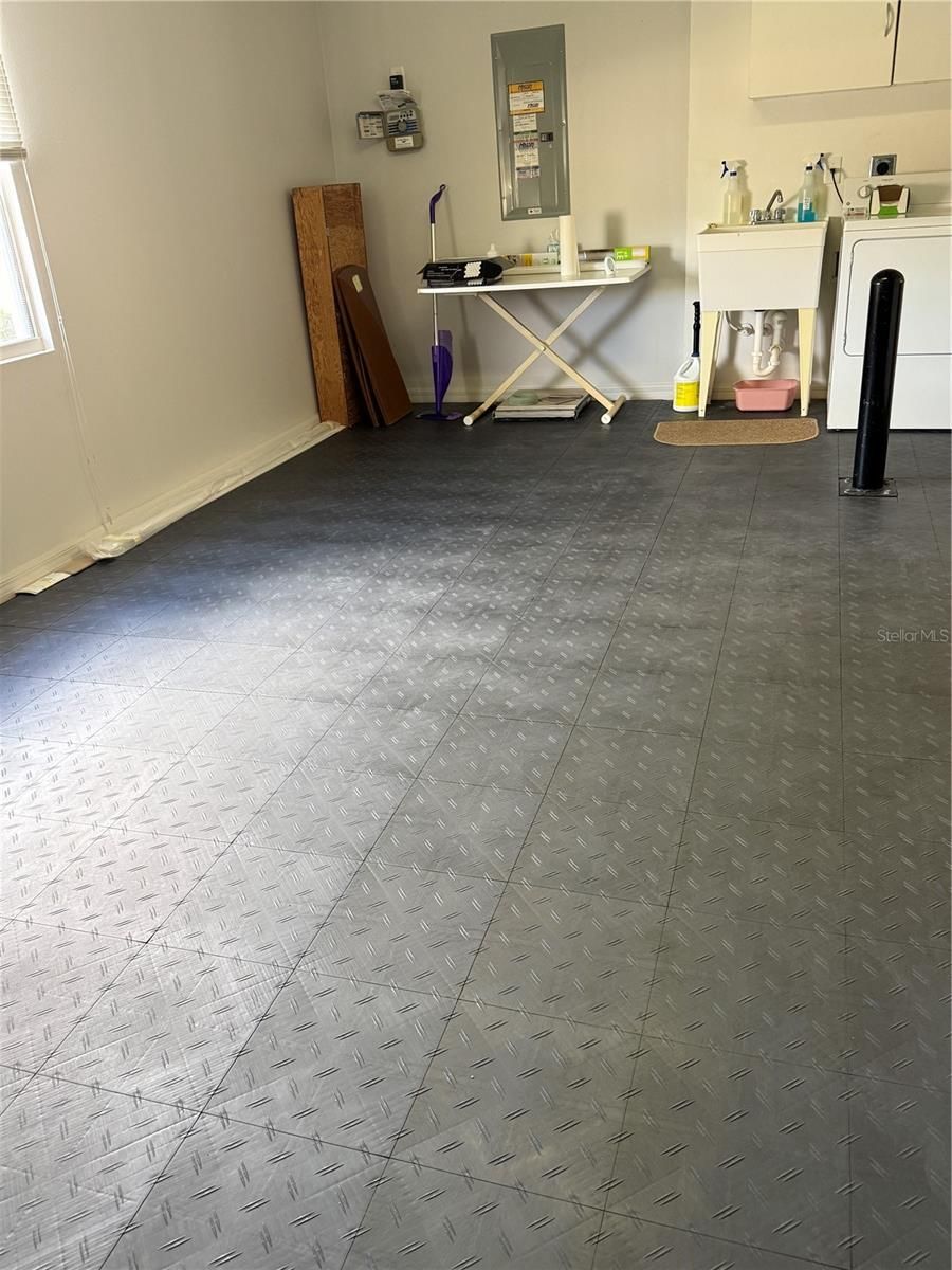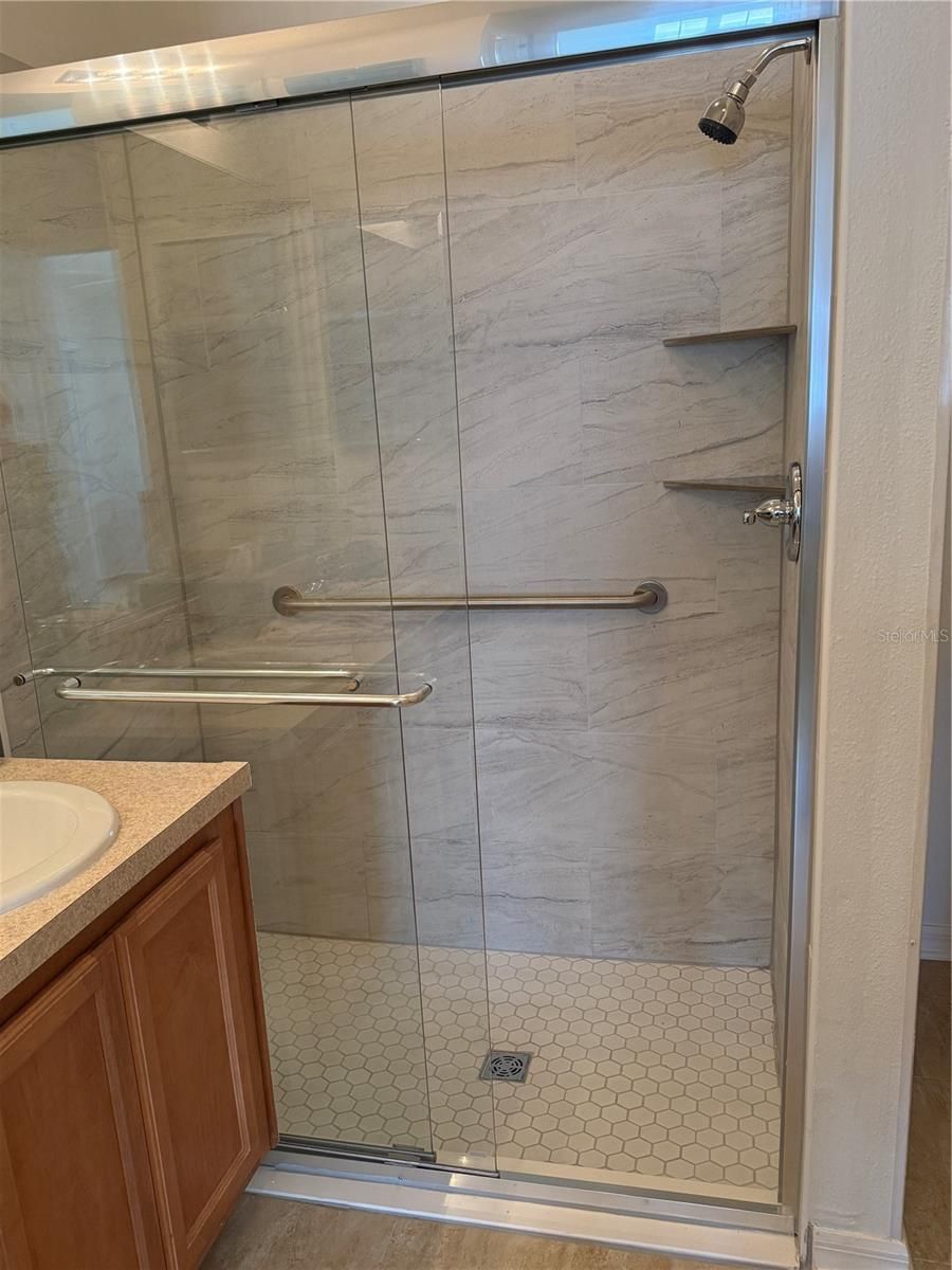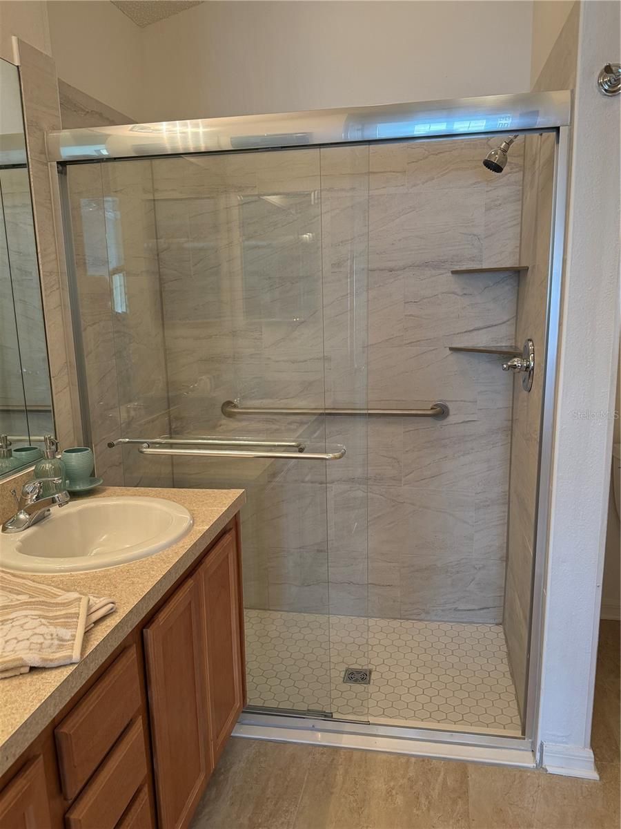 SELLER IS MOTIVATED AND PRICE HAS BEEN REDUCED. Back on the market and better than ever! Buyer had to back out because of health issues. This lovely block and stucco Beauregard courtyard Villa is located in a highly sought after Village of Virginia Trace in the Still Water Villas. You are just blocks from Sumter Landing town square. The is an all block and stucco neighborhood. It is a 2/2 with an enclosed lanai and a nice courtyard out back. The flooring is all luxury vinyl planking except the bathrooms which are tiled. Plantation shutters provide a nice look to the windows and all of the slats on the vinyl verticals have been replaced. Some furniture is included in this home and it's ready to move right in. As you enter the home you see the kitchen with gleaming laminate counter tops. The refrigerator is 2024 and the other appliances are original. The range is gas. There is a tidy pantry in the kitchen. The garage is 1 1/2 and has the washer and dryer. There are pull down stairs for storage and race track flooring and a light. This open concept plan has a nice dining room with a table and 4 chairs. There are table pads and two leaves also there. The living room has a love seat and a sofa and an end table with a lamp. The Parrot picture stays and ducks. The Primary bedroom has a queen bed, two night stands, a corner cabinet and a dresser. The Primary bath has dual sinks and a nice step in shower. which has been completely redone. The large walk-in closet has lots of room. The guest room has room for a queen bed, and has a closet. The guest bathroom has a tub and shower combo and tile flooring. Roof 2023, HVAC 2025 (new) and Hot Water Heater 2025 (just installed). Primary bath shower has just been completedly redone. There is a small bond left on this home $4.057.10, Maint $299.20 Year, Fire $320.71 Year, Bond pmt Year $486.96.