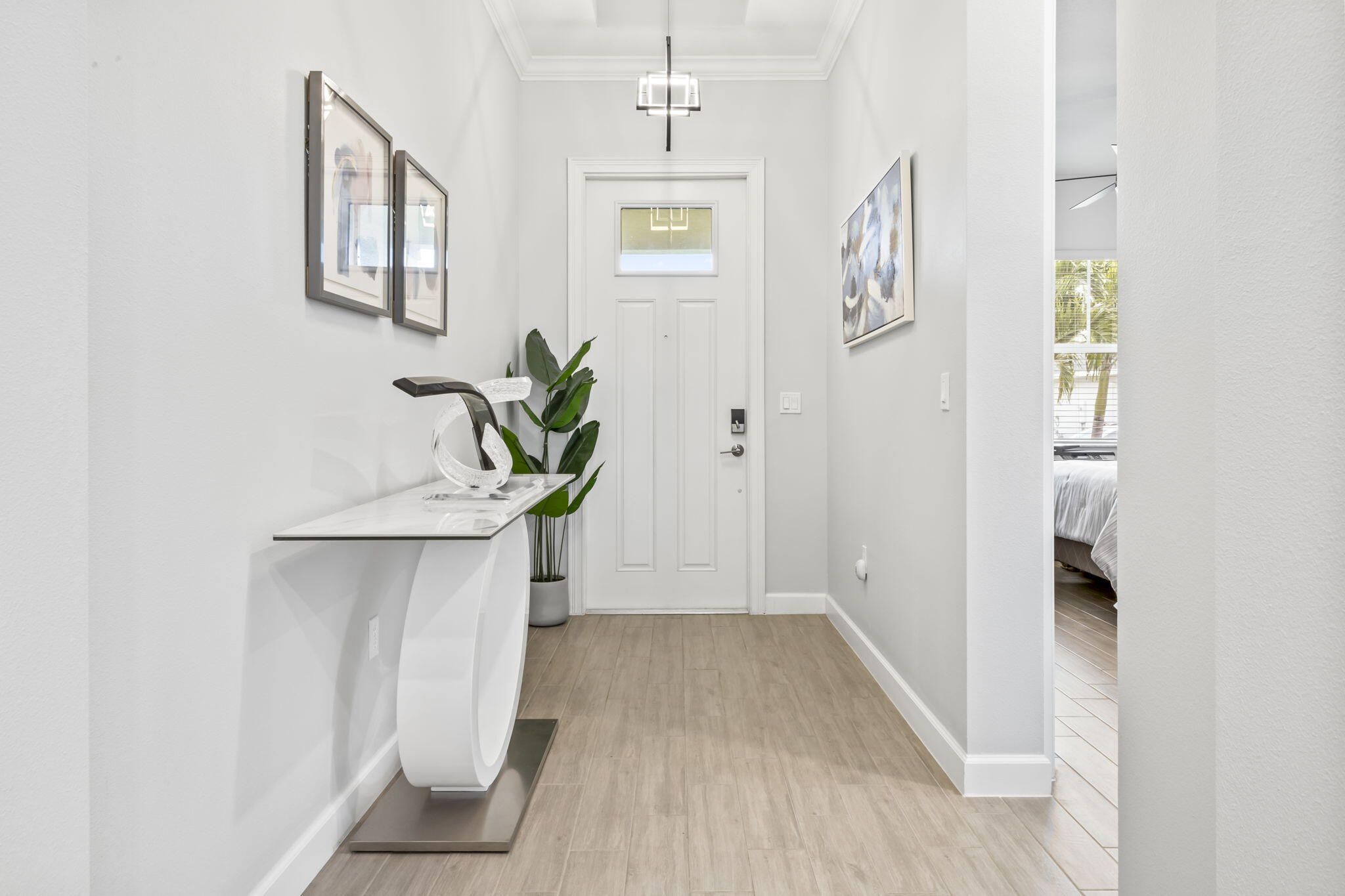 Why wait to build? Enjoy resort-style living in this 2023 home-3 bedroom, 3-bath home showcasing a rare open-concept, split floor plan with spacious bedrooms, ample storage, and custom cabinetry. Recently all three bathrooms have been beautifully upgraded with frameless doors/new hardware and both patio/driveway pavers resealed. Entertain in the gourmet kitchen featuring quartz countertops, custom cabinets with crown molding, gas stovetop, stainless steel appliances, and a built-in coffee bar. Impact windows, a tankless water heater, and sleek 6''x24'' tile elevate the home's modern elegance. Step outside to a fully fenced backyard overlooking a peaceful lake—perfect for relaxing or hosting guests. Owners are willing to contribute funds towards closing costs with an acceptable offer