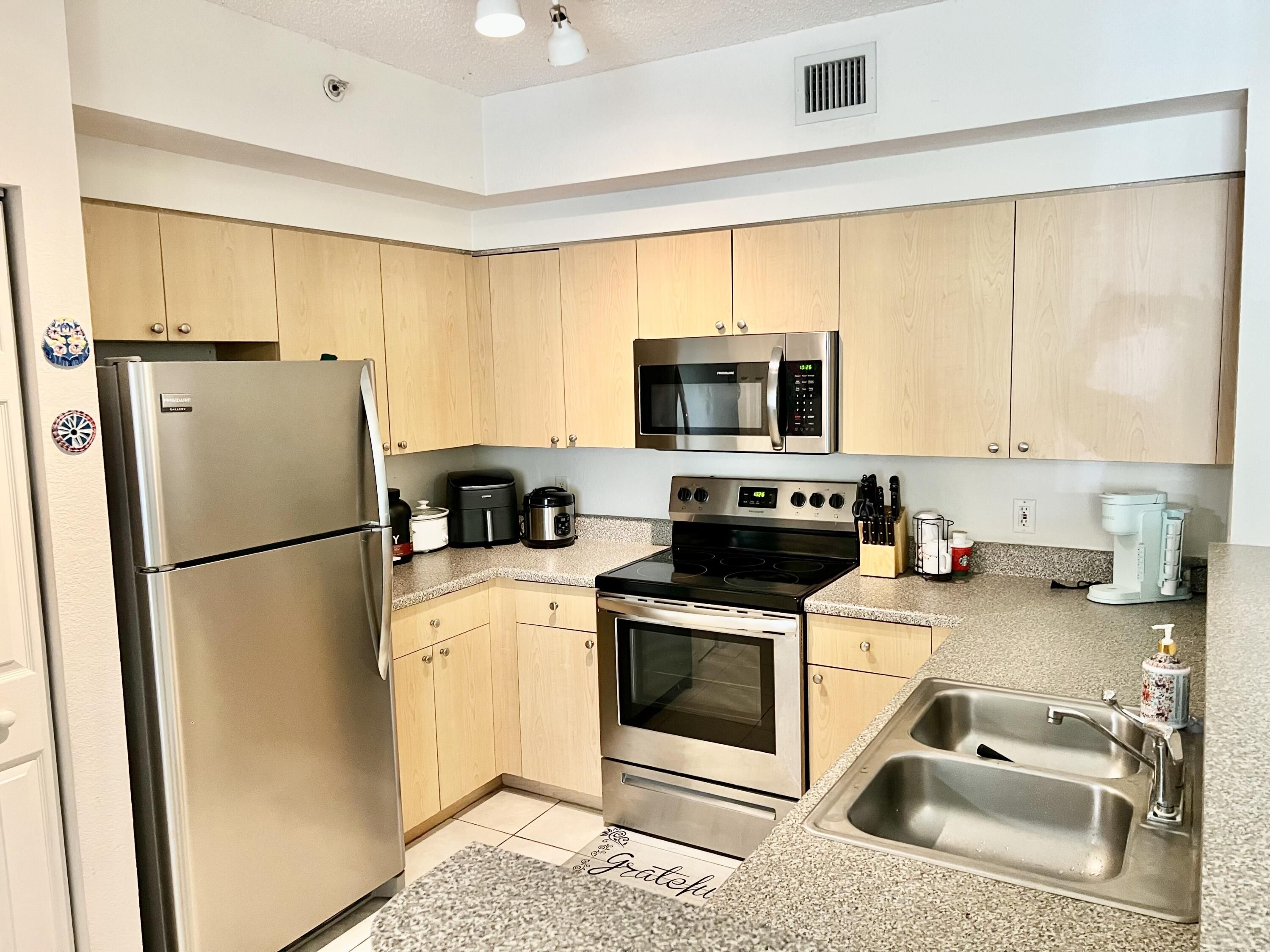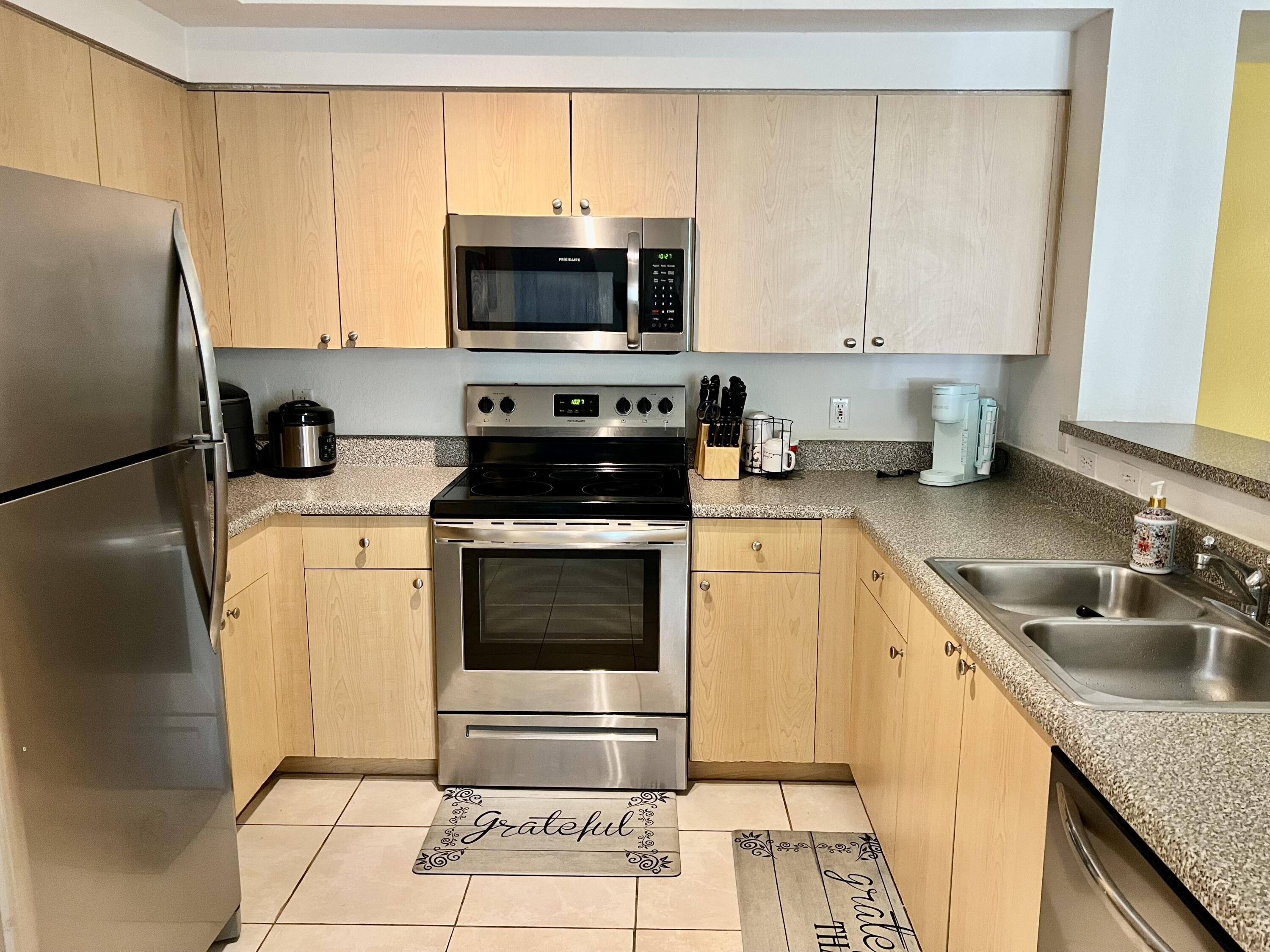 - Dryer, Disposal, Dishwasher, Electric Range, Ice Maker, Microwave, Oven, Refrigerator, Washer, Range