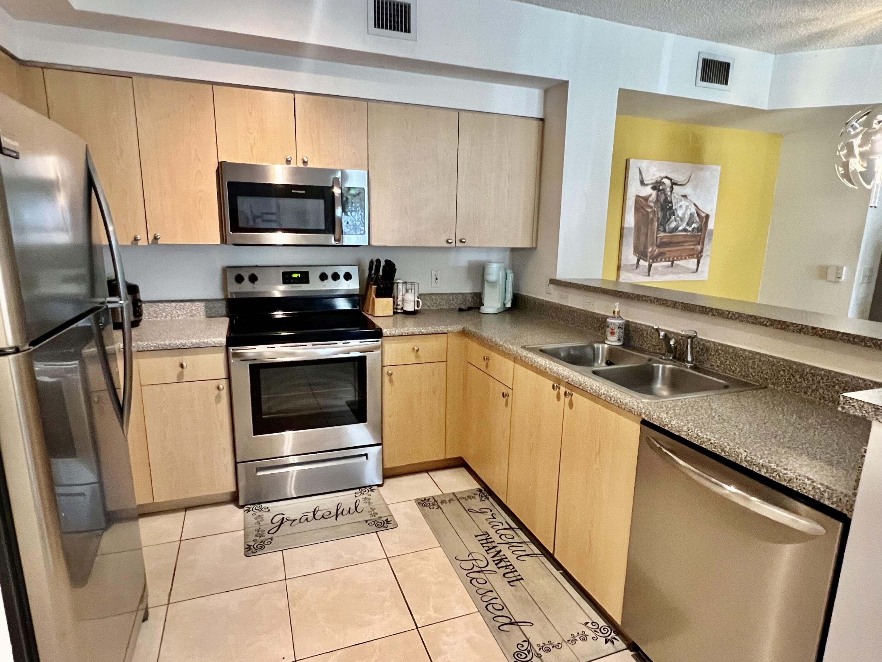 Well kept 2 bedroom / 2 bath condo. Corner, first floor unit located in highly desired gated community of St. Andrews at Nob Hill. This unit offers a spacious living area with separate living and dining areas, split floor plan, spacious bedrooms, walk-in closets. Tile throughout (no carpet.) Move in ready. Washer & Dryer in unit. Building has brand new roof (2025). New water heater (2023). A/C 2017. Community offers resort style pool and hot tub, fitness center, tennis courts, BBQ areas, clubhouse and more. I must see! Priced to sell!