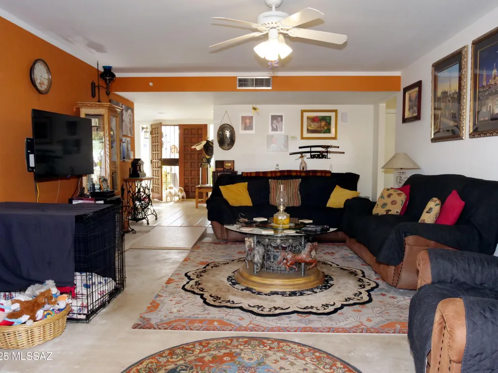 Welcome home! 2bedroom, 2bathroom townhome located in the Omni Tucson National, 55+ gated community. A new HVAC system was installed on 9/29/2025 with a warranty also new carpet in the living room, new ceiling fan and new paint in Primary bedroom.Sunken living room has a ceiling fan facing the doors to a spacious patio surrounded by backyard oasis with fruit trees. The primary suite also has a sliding door to the backyard for morning coffee, and offers comfort and convenience with a dual vanity and soaking tub/shower with grab bars.The kitchen features plenty of cabinet space and a ceiling fan to keep u cool, opening up to a bright dining area /office with a large window. 2car garage with laundry hookups.Enjoy the friendly community, potlucks to year-round fun at the heated pool and spa,