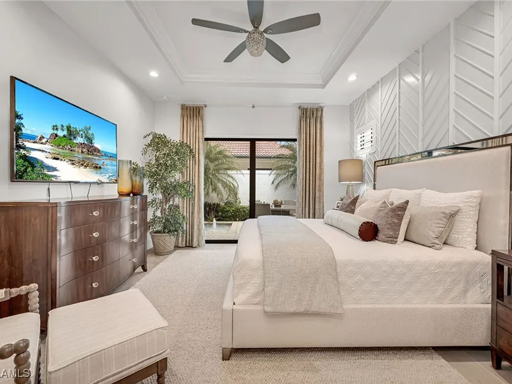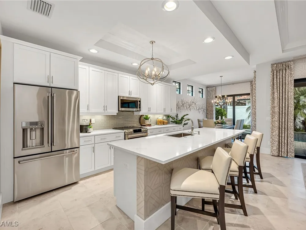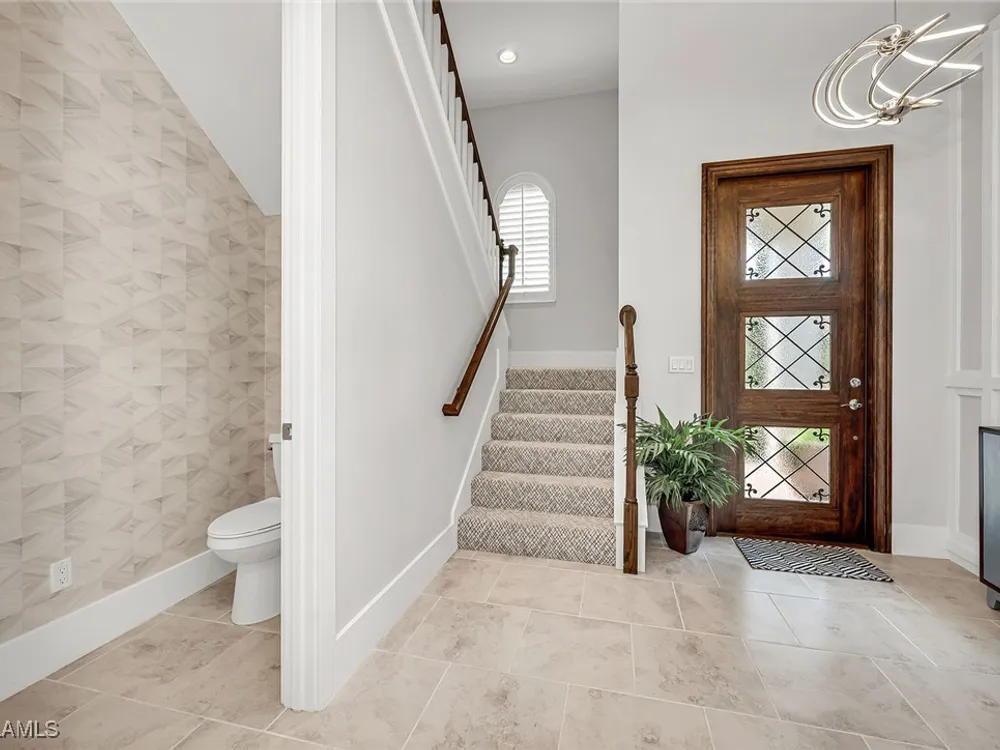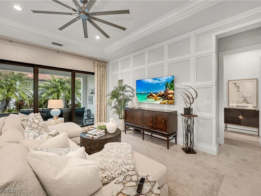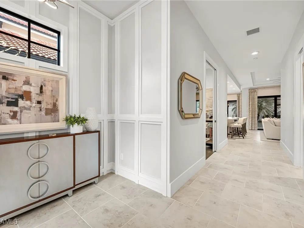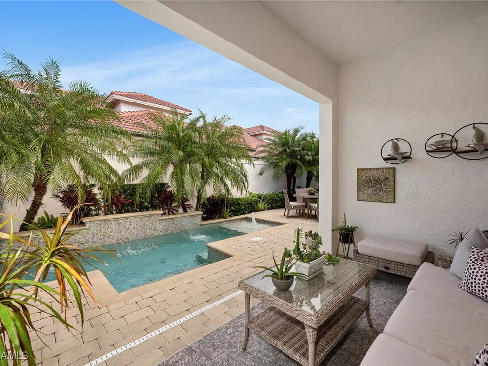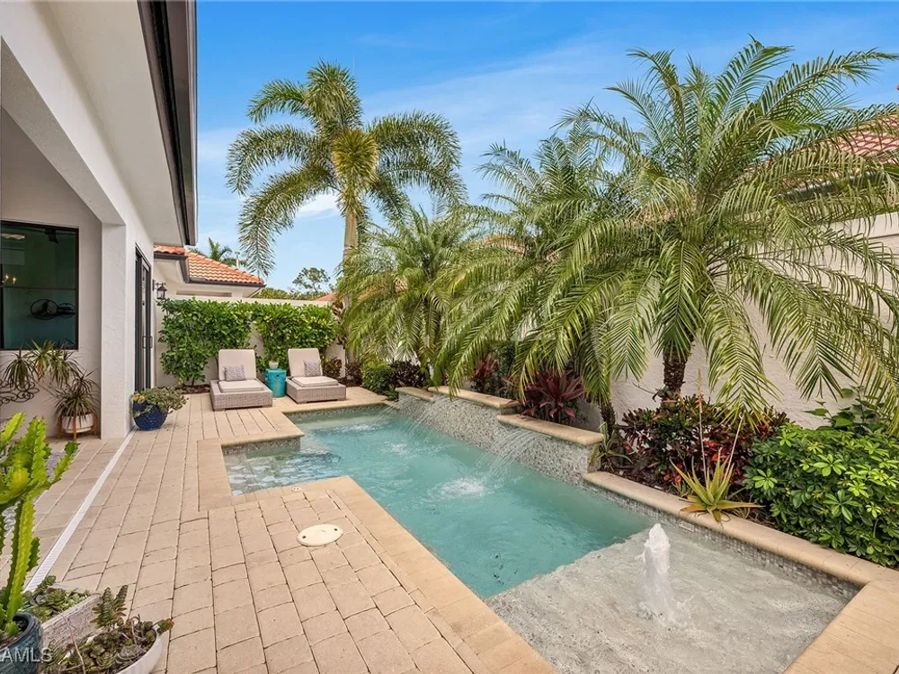 Embrace unparalleled resort-style living in this pristine Cordoba at Lely Resort home, presented in model-like condition. Nestled within the prestigious, gated Cordoba enclave, celebrated for its exceptional craftsmanship and meticulous attention to detail, this residence shines with extensive upgrades. The interior boasts premium GE Café kitchen appliances, sophisticated quartz countertops, freshly painted walls and ceilings, intricate crown molding, and chic new flooring in the primary suite. The staircase and upper level feature luxurious new carpeting, while the garage impresses with epoxy flooring, custom shelving, air-conditioning, and abundant storage. Designed for both elegance and durability, the home includes hurricane-impact-resistant windows and doors, ensuring year-round tranquility. The open-concept design allows the kitchen to flow effortlessly into the great room and dining area, ideal for entertaining. Expansive walls of glass welcome an abundance of natural Florida sunshine, seamlessly connecting indoor and outdoor living. Step outside to your private tropical retreat, complete with lush landscaping and a saltwater pool, ideal for relaxing in privacy. Thoughtful landscape lighting in the front and rear creates a magical ambiance for evening gatherings. The elegant first-floor primary suite is a sanctuary, featuring a luxurious main bath and generous walk-in closets. Upstairs, guest bedrooms provide a haven for visitors, while a versatile first-floor den serves as an ideal home office or reading nook. Enjoy immediate membership to The Players Club & Spa, where world-class amenities await such as resort-style pools, pickleball, tennis, bocce, fitness center, fine dining and year-round entertainment. Lely Resort is also home to three championship golf courses. Ideally just minutes from downtown Naples, pristine beaches, dining, shopping and top medical facilities. this is the lifestyle you deserve at Lely Resort.