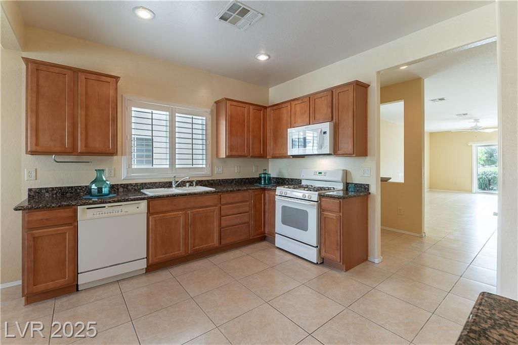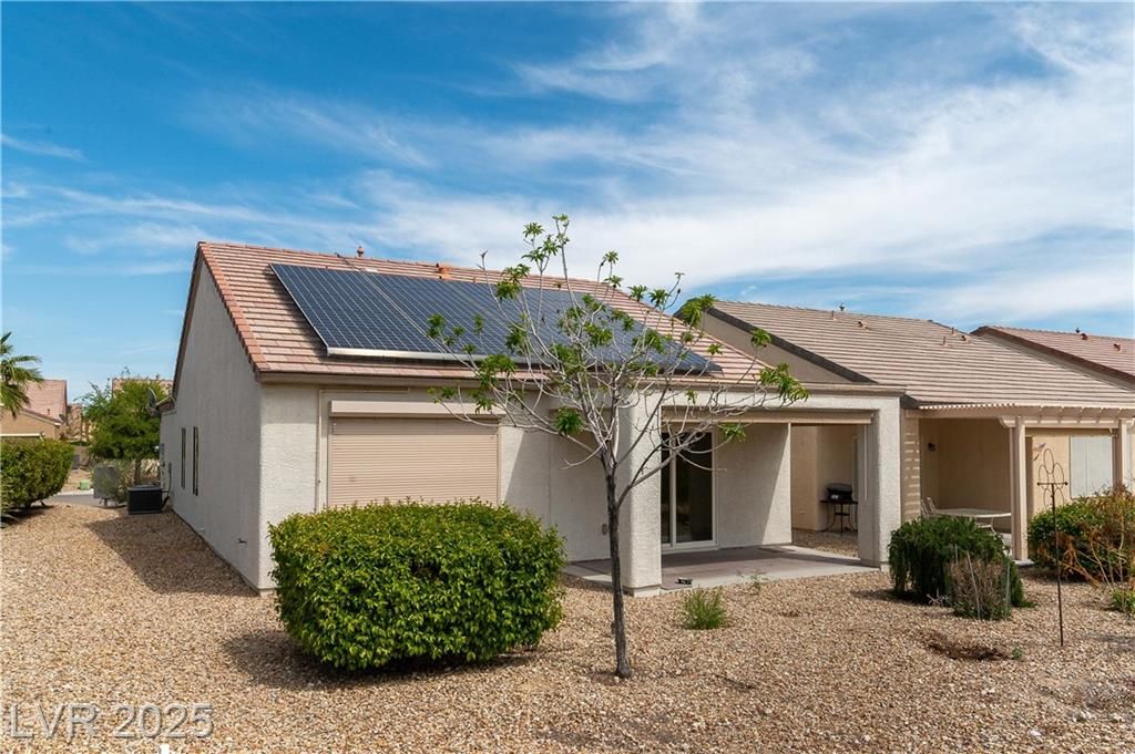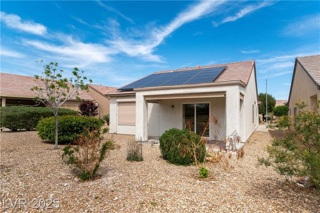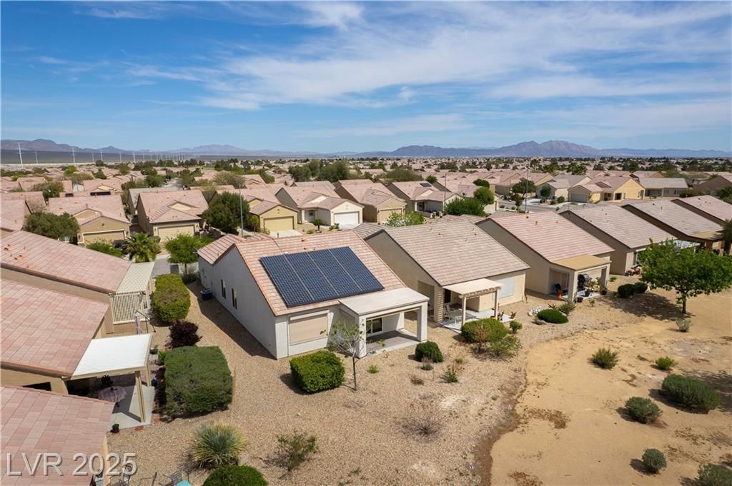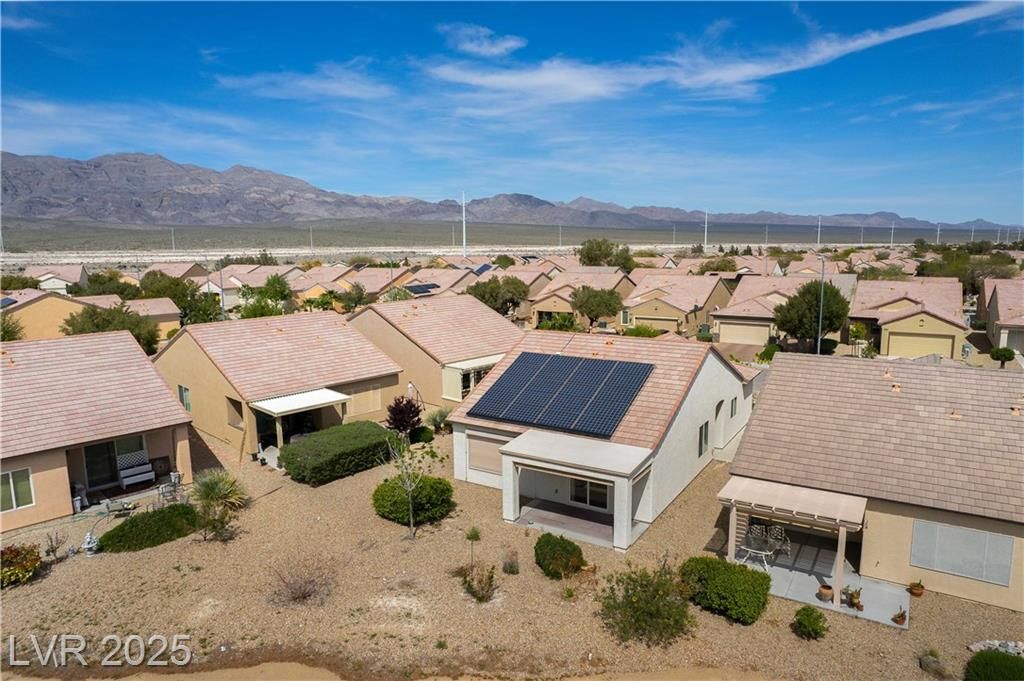 Discover resort-style 55+ living in Sun City Aliante! This open-concept home sits on the 7th green, offering breathtaking, unobstructed golf fairway and Mt. Charleston views from the living room, primary suite, and covered patio with crank-down shades. Enjoy tranquil wildlife watching—quail, roadrunners, and bunnies abound! The spacious primary suite features a large walk-in closet and a relaxing walk-in tub/shower. Natural light flows throughout the home, enhancing its inviting atmosphere. Additional features include epoxy garage flooring, leased Sun Run solar for energy efficiency, and the convenience of a mailbox right out front. Seller is offering an $1,850 flooring allowance, allowing you to customize the space to your taste. Experience an amenity-rich, active lifestyle in a highly desirable community. Don’t miss this opportunity—schedule your showing today!