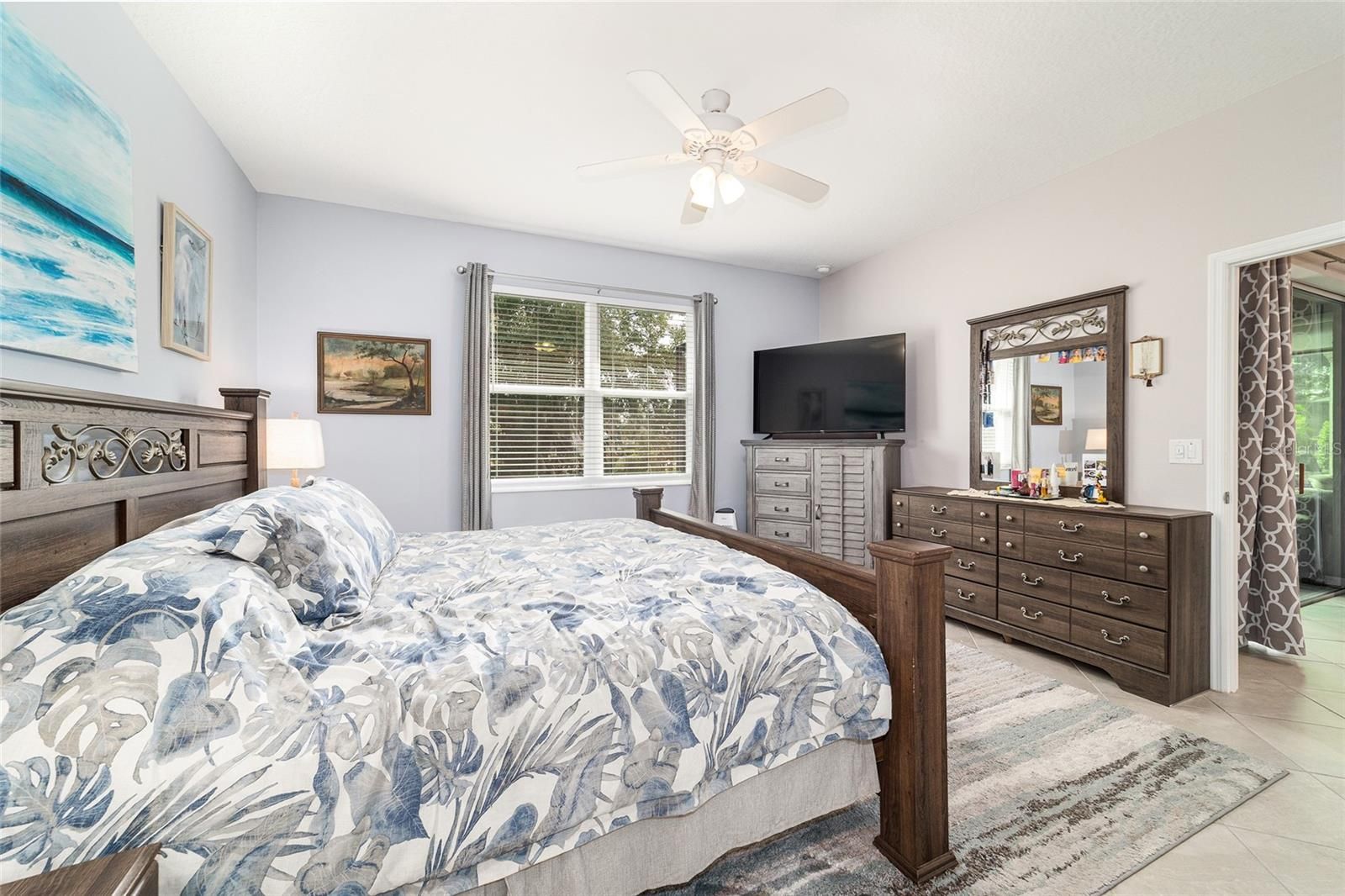 - Ceiling Fan(s), Eat-in Kitchen, High Ceilings, Living/Dining Room, Open Floorplan, Split Bedrooms, Stone Counters, Thermostat, Walk-In Closet(s), Window Treatments