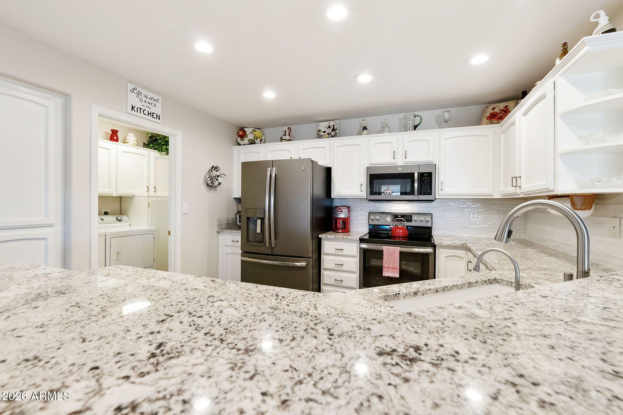 - Dryer Included, Washer Included, Water Softener Owned, Refrigerator, Built-in Microwave, Dishwasher, Disposal, Electric Range, Electric Oven, Water Purifier
