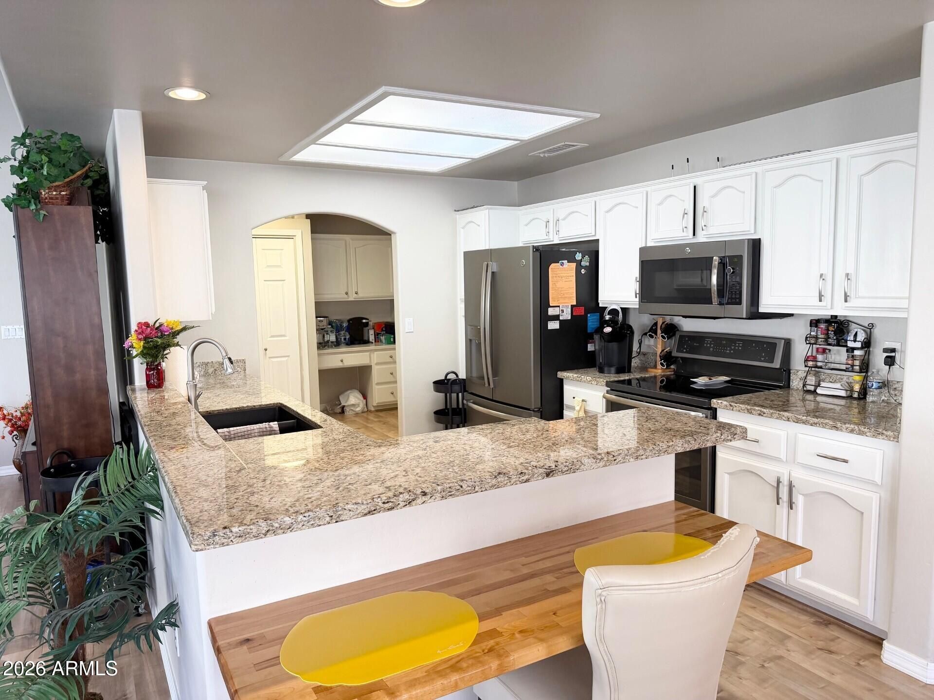 Welcome to easy, low‑maintenance living in the heart of Fountain of the Sun, Mesa's premier 55+ guarded and gated golf community. This inviting FURNISHED, 2 Bedroom 2 Bath Condo in Pueblo Estates offers a bright, Open Floor Plan & Vaulted Ceilings with thoughtful updates throughout, including an Updated kitchen with Granite counters and sleek black slate appliances, and Beautiful Laminate Flooring, Both Bedrooms have Walk-In Closets, Primary Bathroom w/ Granite Counter & Tiled Primary shower that elevates the owner's suite. Guest Bathroom w/ Granite Counter and Tub/Shower, Built-in Desk Epoxy‑coated garage floor, Garage Storage Cabinets, Heat Pump (2023), Water Softener, Enjoy the lock‑and‑leave lifestyle plus access to a vibrant community offering an 18‑hole spa, fitness center, pickleball, onsite restaurant, and endless social activities. Conveniently located near shopping, dining, and major freeways, this home places you at the center of the activeadult lifestyle Fountain of the Sun is known for.