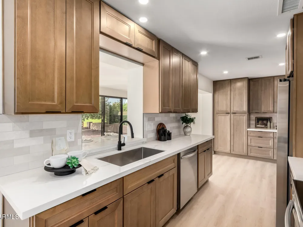 Welcome to your new Remodeled Golf Course Home. This Beautiful Home has 2 bedrooms, 2 bathrooms with modern finishes throughout. Open Concept Living Space with tons of natural light. New cabinets, counter tops, flooring, lighting, Master Shower, & much much more just adds to the new home experience. The inviting back yard invites friends, family and neighbors to enjoy the good life with you. Don't miss the chance to make this home yours.