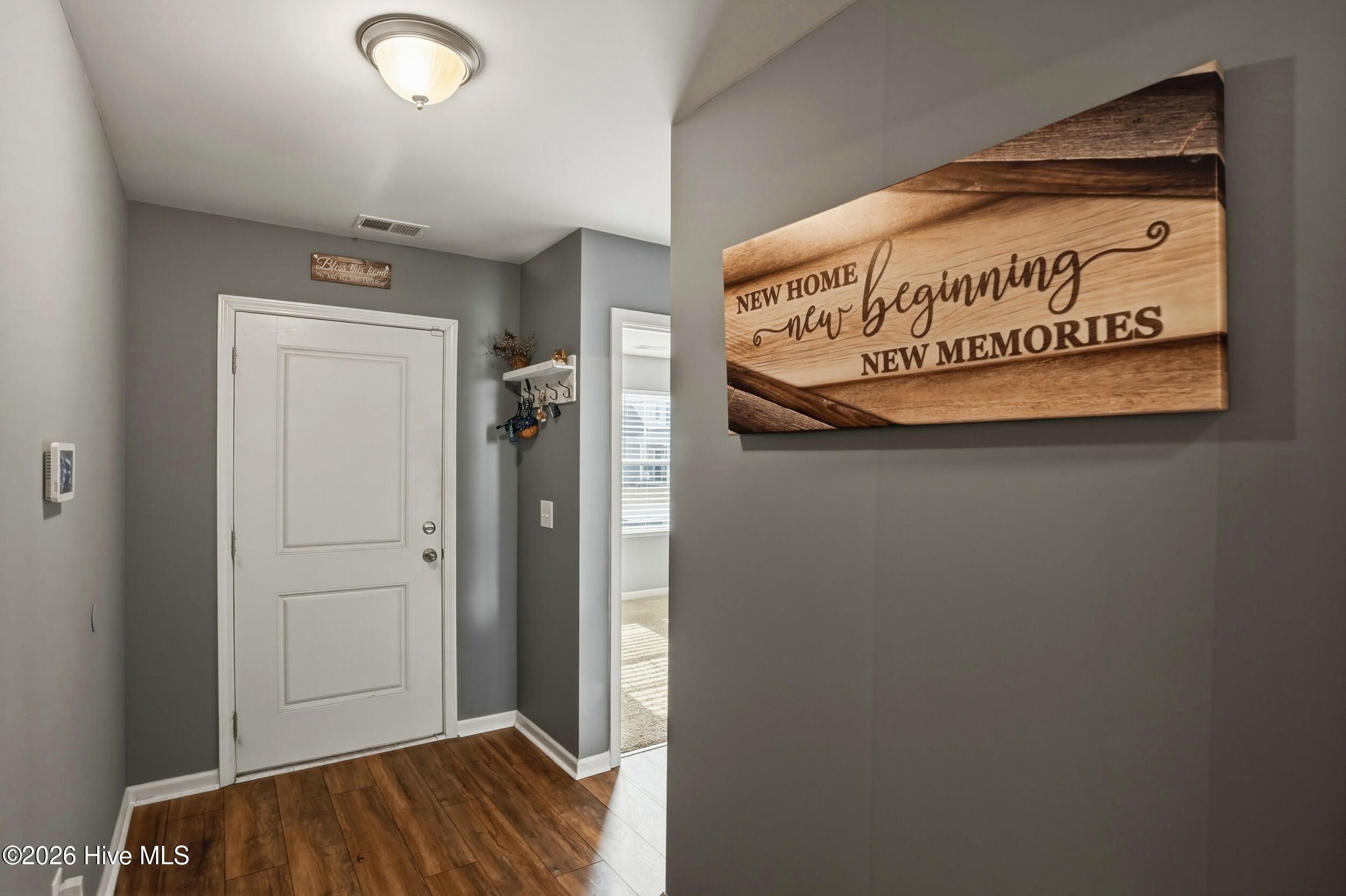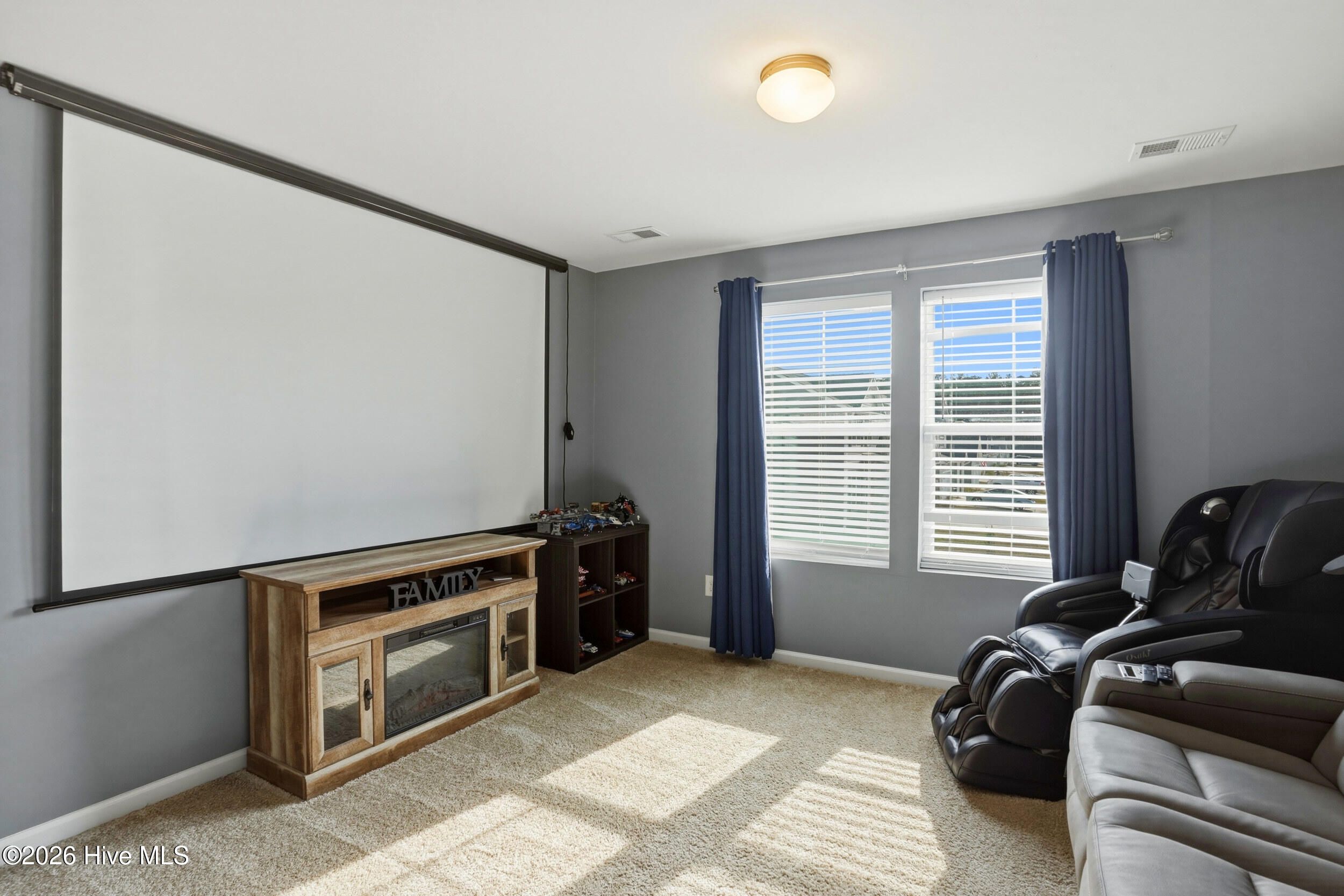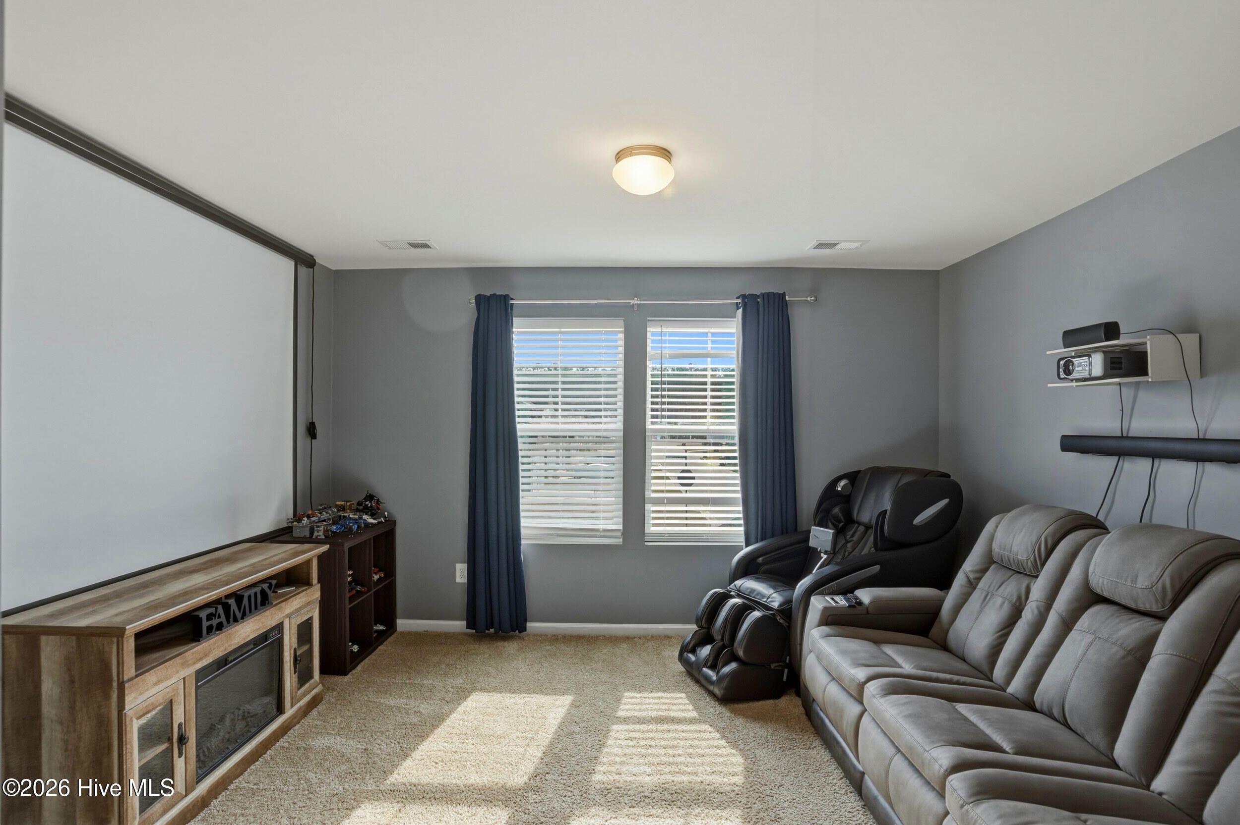 Welcome to 793 Landmark Cove, a stunning 4-bedroom, 2.5-bath home in the highly desirable Calabash community. This thoughtfully designed home combines bright, open interiors with functional spaces that flow effortlessly from room to room. Step inside to durable LVP flooring throughout the main living areas and a welcoming entry that sets the tone for this light-filled residence. The spacious living room features abundant natural light and a ceiling fan, seamlessly connecting to the dining area and kitchen. The kitchen is a chef's dream with a large island with integrated sink and prep space, ample cabinetry, a pantry for storage, and an open layout that makes entertaining effortless. Sliding doors from the dining and living areas lead to a covered back patio with ceiling fan, perfect for enjoying North Carolina's seasonal weather. The main floor also offers a convenient bedroom and half bath, while upstairs features a versatile flex/family space, additional bedrooms, a full bath, and a media room, providing room for every need. The primary suite is a bright and spacious retreat with carpeted floors, ceiling fan, and a primary bathroom with double vanity and walk-in shower. Outside, enjoy a fully fenced backyard, low-maintenance landscaping, and a covered patio, all backing to a serene wood line for added privacy. The two-car garage and front covered entry add both functionality and curb appeal. Drone and aerial photography showcase the home's location, lot, and neighborhood, including nearby green space and a scenic community pond. Located in a welcoming neighborhood with well-maintained streets, green spaces, and natural water features, this home offers the perfect blend of comfort, style, and coastal North Carolina living.