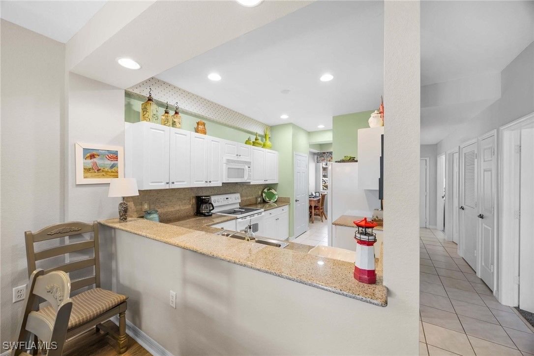 This gorgeous end-unit condominium for sale in the heart of Lely Resort offers a stunning resort pool view, creating a serene and picturesque setting. This villa features three spacious bedrooms and two modern bathrooms, perfect for comfortable living or hosting guests. The interior feels open and airy, enhancing the sense of space and elegance. The updated kitchen comes equipped with sleek modern countertops, modern appliances, and ample storage, ideal for cooking and entertaining. Turnkey and ready to go for you and your family or as a rental. The property is not only a beautiful home but also a great investment opportunity, situated in a desirable location with potential for rental income or long-term value appreciation. No limits on the number of rentals or number of days you can rent. The combination of resort style, living, stylish updates, and investment potential makes this condo a fantastic choice for buyers. Amenities include: Optional Players Club membership, on site restaurant, tennis, bocce, resort style swimming pool, shuffleboard walk to 2 semi-private golf courses and enjoy 42 rounds of gold that come with this property. Must be seen to be fully appreciated.