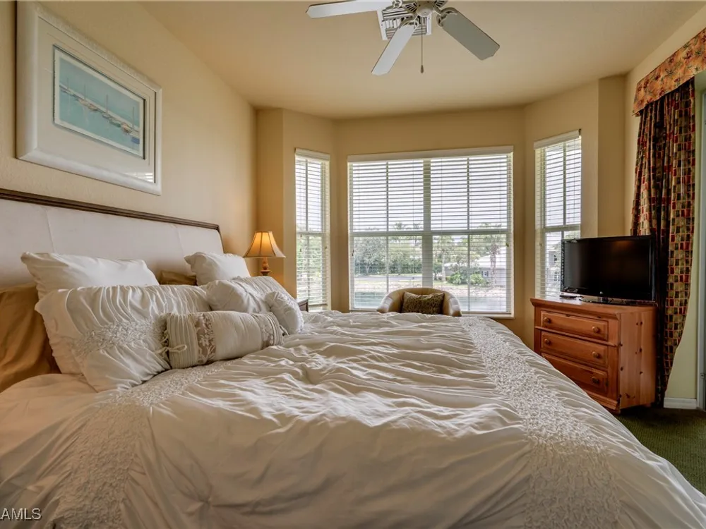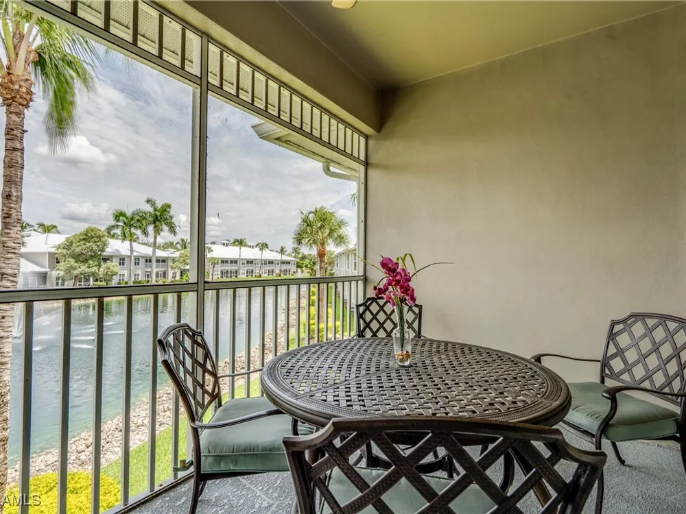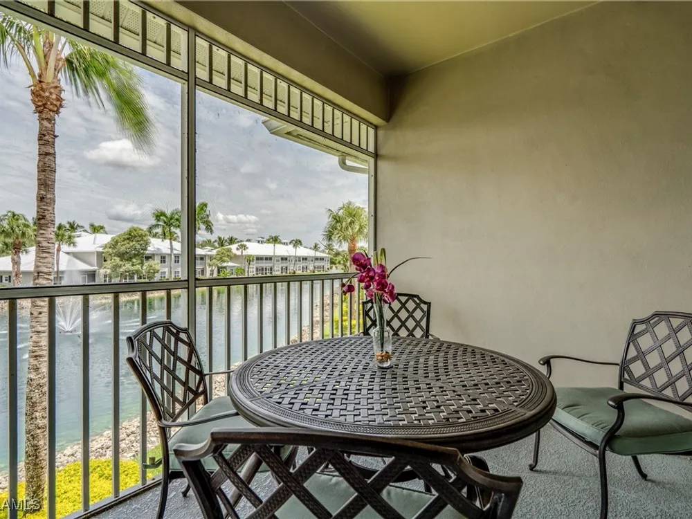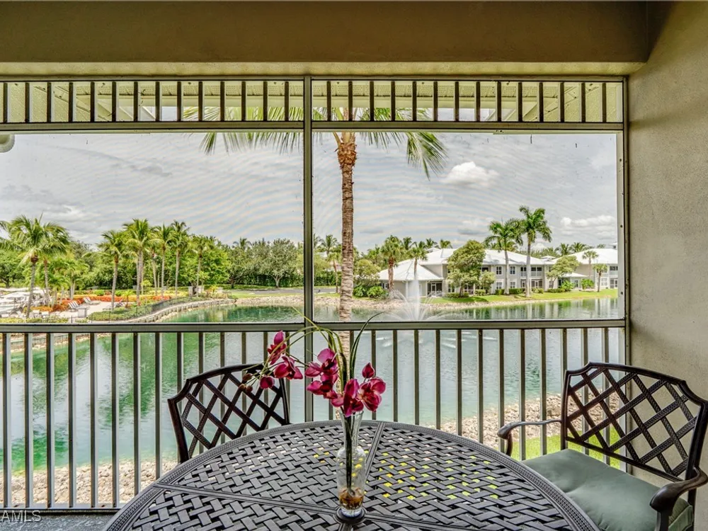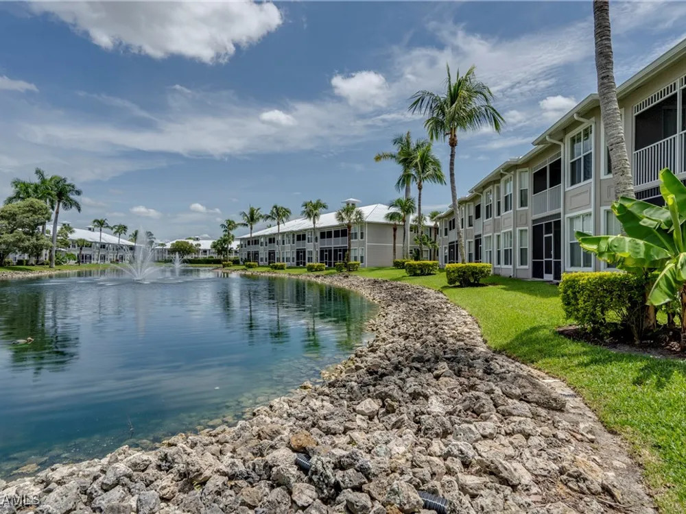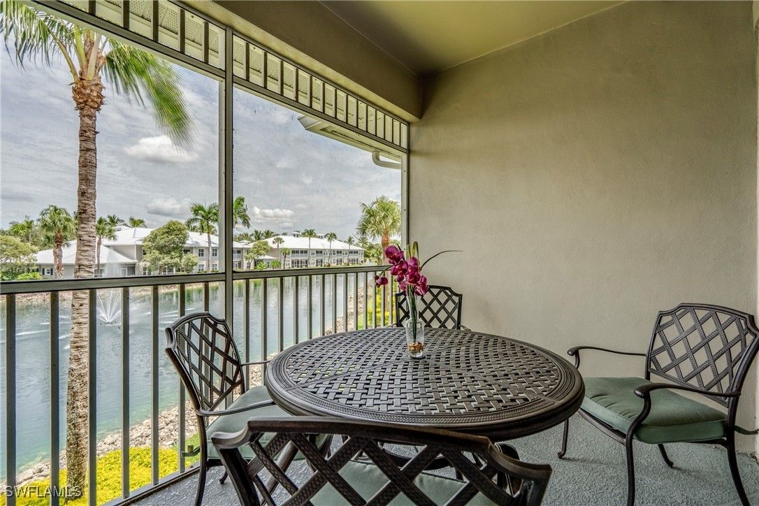 Best views and location in Lely resort. Excellent income producer, no Short Term rental restrictions. 42 free rounds of golf, on two championship courses, that are transferable to guests. Resort like setting: pool, hot tub, gym, tennis, pickle ball, shuffle board, club house, golf country club with restaurant and sports bar - all within 3minute walk. Larger updated unit. Sleeps 6, 2 bedrooms, 2 full bath, den with queen size pull out sleeper. Master with separate soaking tub. Office area, newer appliances include washer/dryer, fridge, and range. UNIT IT TURNKEY and beautifully appointed. Large furnished screened balcony overlooks lake and water feature. Low taxes, low insurance, HOA $697. / mo includes water, cable T.V., all amenities and grounds maintenance. Parking in front of unit, no limit on vehicles. Bocce, Bike Storage, BBQ grills on site. Rental management available. Excellent investment with excellent rental history