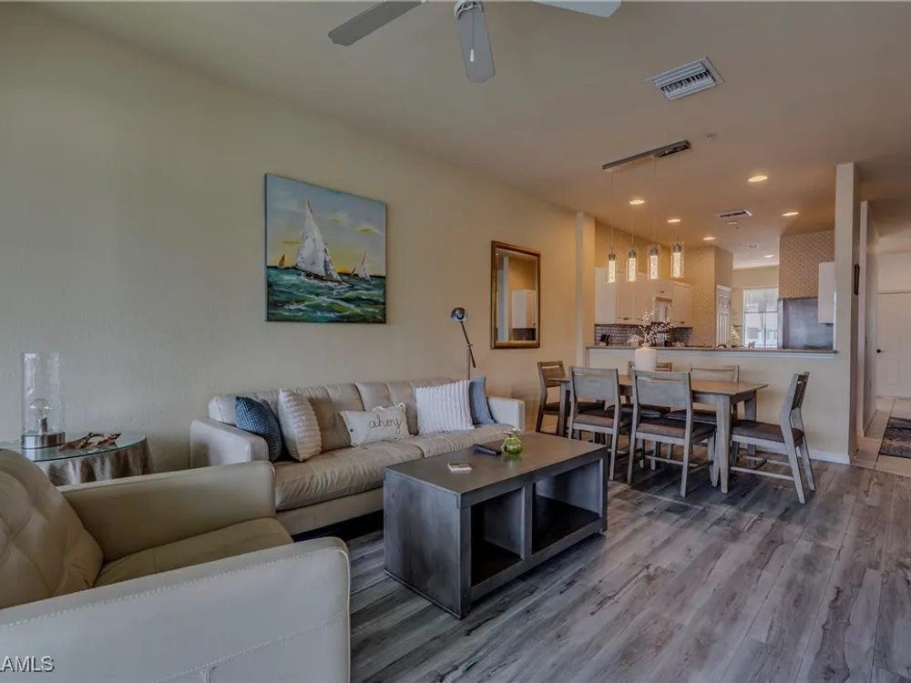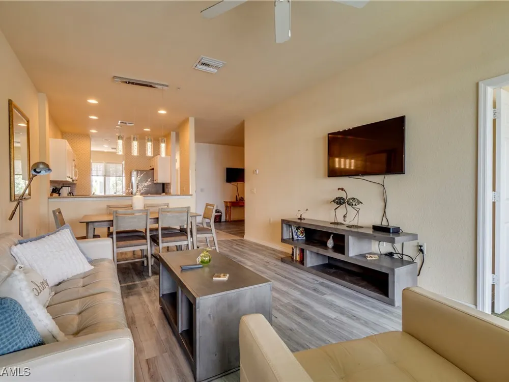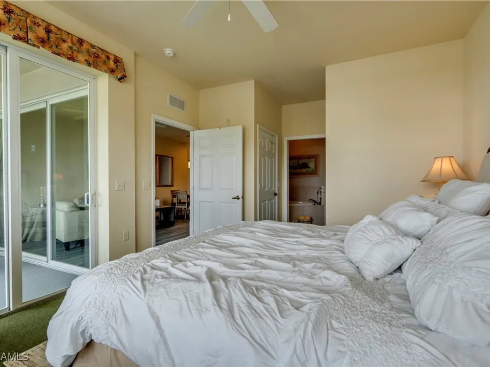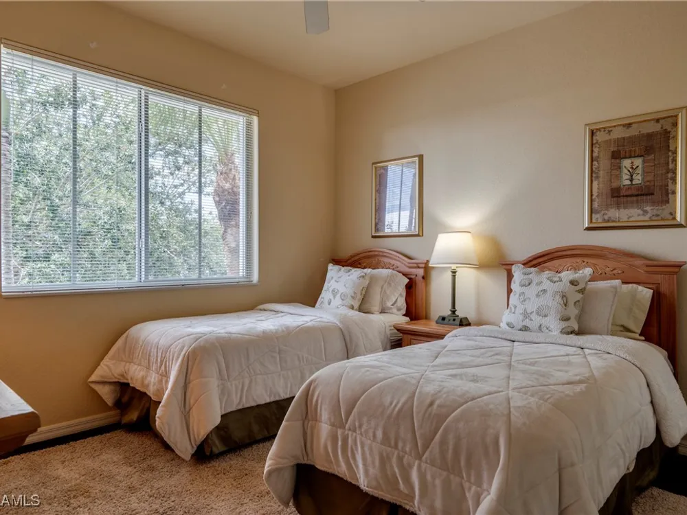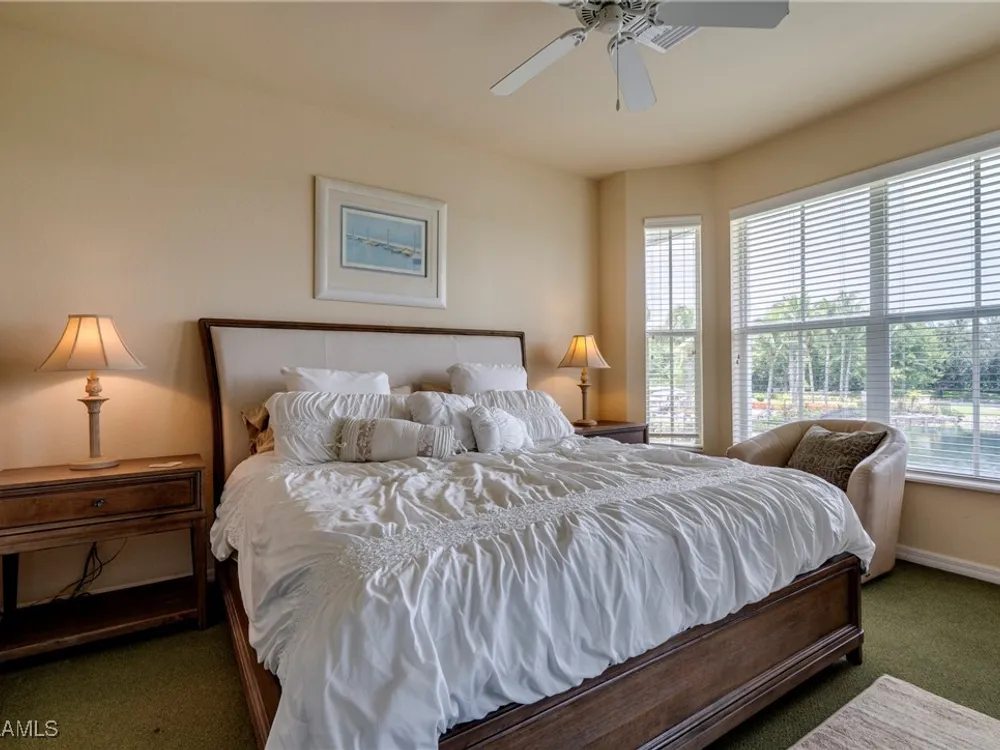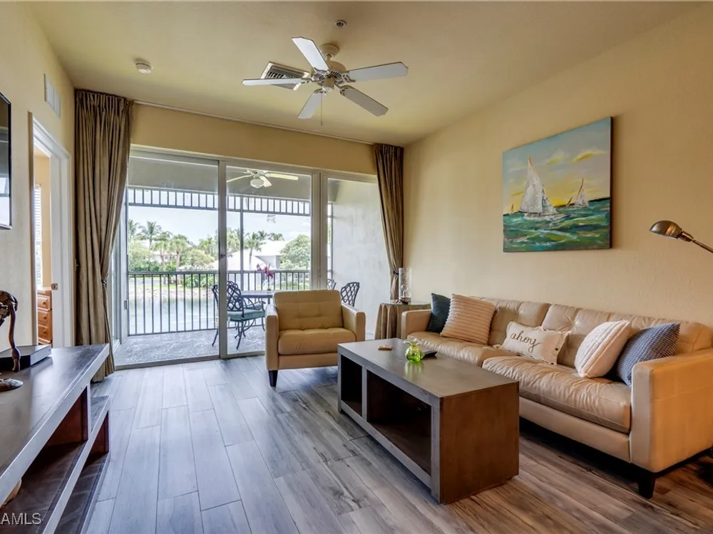 Best views and location in Lely resort. Excellent income producer, no Short Term rental restrictions. 42 free rounds of golf, on two championship courses, that are transferable to guests. Resort like setting: pool, hot tub, gym, tennis, pickle ball, shuffle board, club house, golf country club with restaurant and sports bar - all within 3minute walk. Larger updated unit. Sleeps 6, 2 bedrooms, 2 full bath, den with queen size pull out sleeper. Master with separate soaking tub. Office area, newer appliances include washer/dryer, fridge, and range. UNIT IT TURNKEY and beautifully appointed. Large furnished screened balcony overlooks lake and water feature. Low taxes, low insurance, HOA $697. / mo includes water, cable T.V., all amenities and grounds maintenance. Parking in front of unit, no limit on vehicles. Bocce, Bike Storage, BBQ grills on site. Rental management available. Excellent investment with excellent rental history