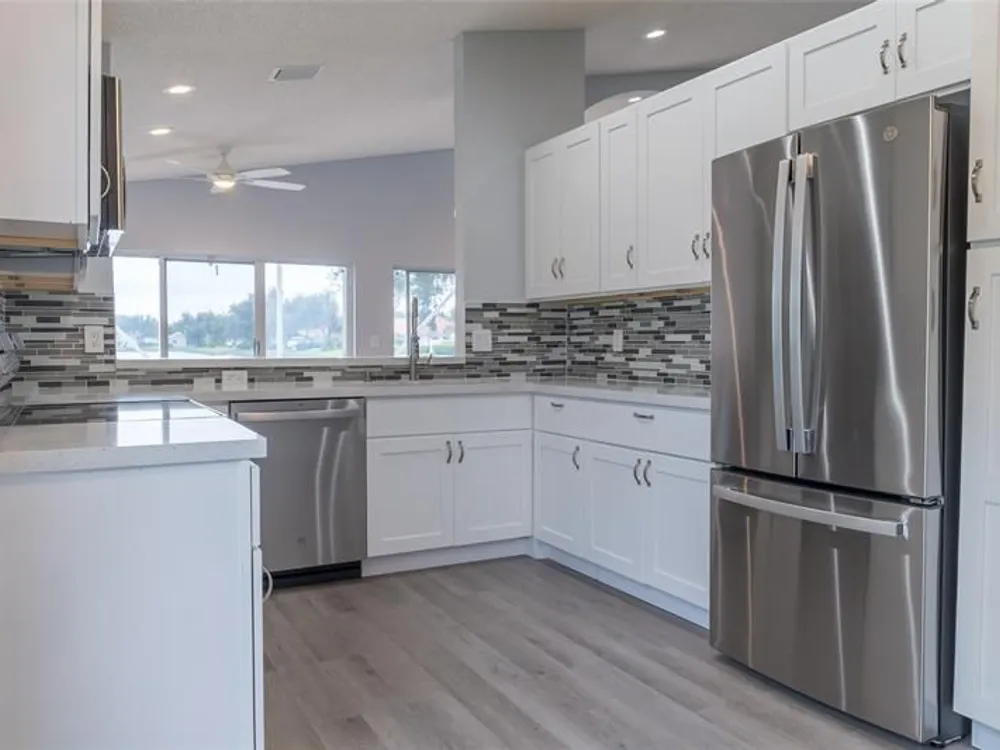 Welcome to Palm Isles in Boynton Beach. This 55+ community is located close to highways, shops, restaurants and a short drive to the beach. This 3 bed, 2 bath property has been beautifully updated with fresh paint, new waterproof vinyl flooring, new kitchen with all stainless steel appliances, and recessed lighting. The bathrooms have new frameless shower doors, new toliets and vanities. Relax and unwind on your private enclosed patio overlooking the lake to watch the sunsets. Enjoy an open layout that offers tons of natural light, 2 car garage with new rubber mat flooring, gutters, and vaulted ceilings. Community amenities include a 24/7 guard gate, tennis, pickleball, indoor/outdoor pools, cafe, and fitness center. A brand new clubhouse opens December 2025! Call today to see in person.