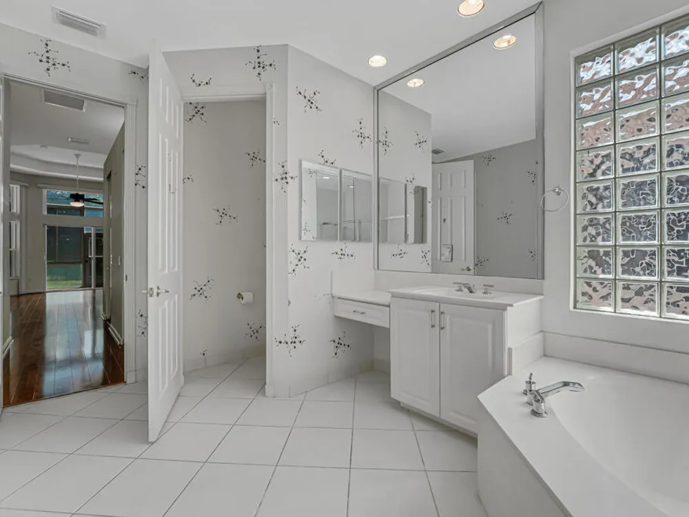 - Entrance Foyer, Kitchen Island, Pantry, Garden Tub/Roman Tub, Split Bedrooms, High Ceilings, Walk-In Closet(s), Attic, Home Office, Family Room, Great Room, Breakfast Area, Kitchen/Dining Combo, Eat-in Kitchen, Separate/Formal Dining Room, Snack Bar, Bay Window, Blinds, Sliding Window(s), Dual Sinks, Sitting Area In Primary Bedroom, Separate Shower, Bathtub, Storm Shutters