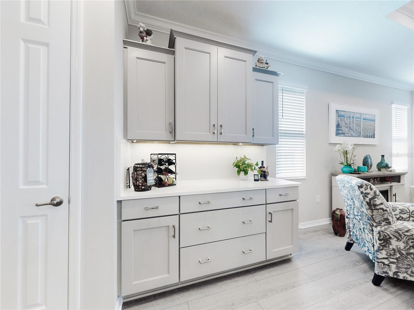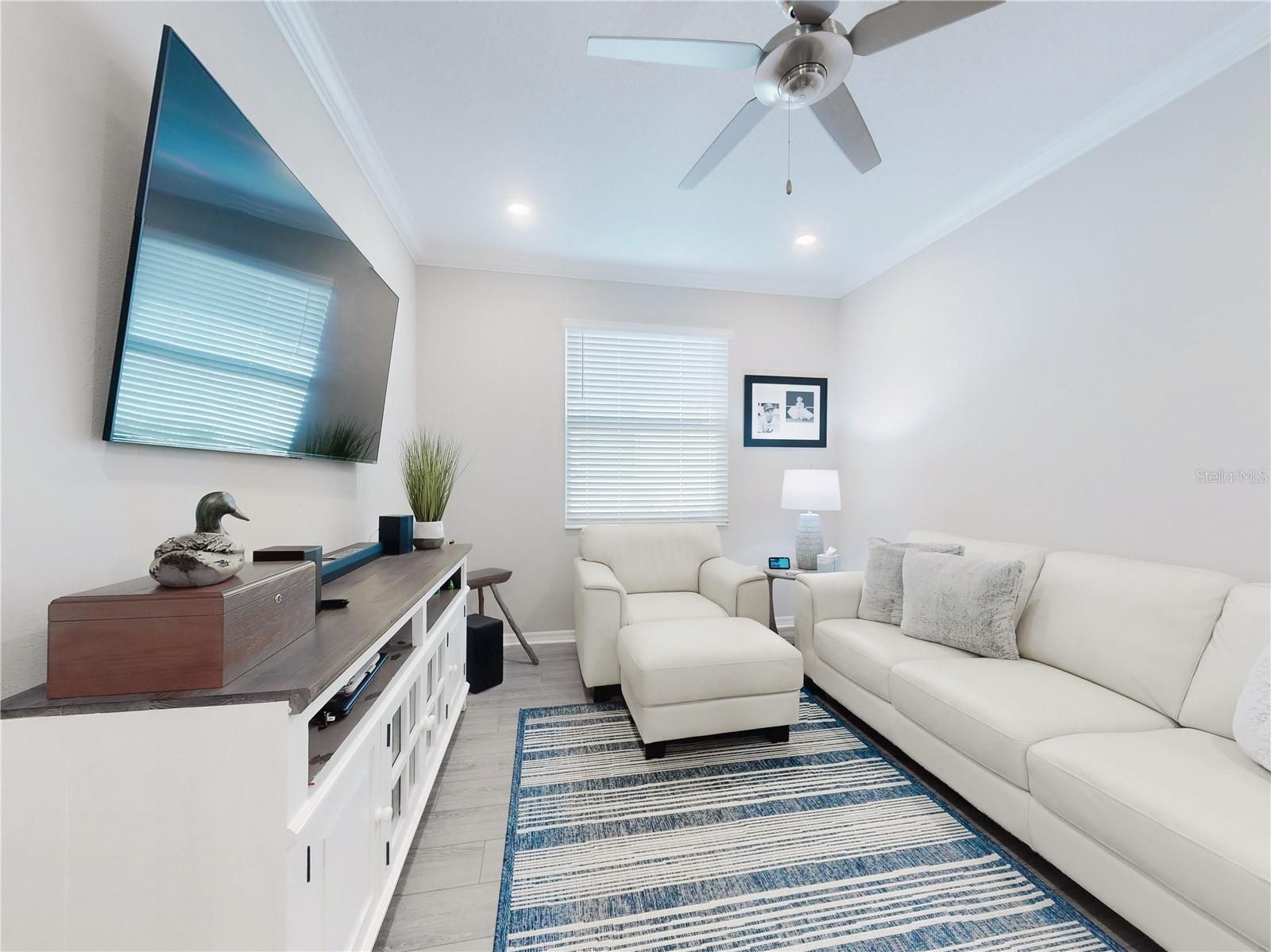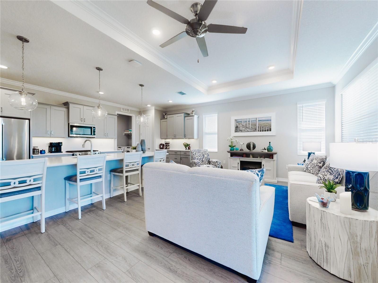 - Ceiling Fan(s), Crown Molding, High Ceilings, Kitchen/Family Room Combo, Open Floorplan, Smart Home, Solid-Wood Cabinets, Stone Counters, Thermostat, Walk-In Closet(s)
