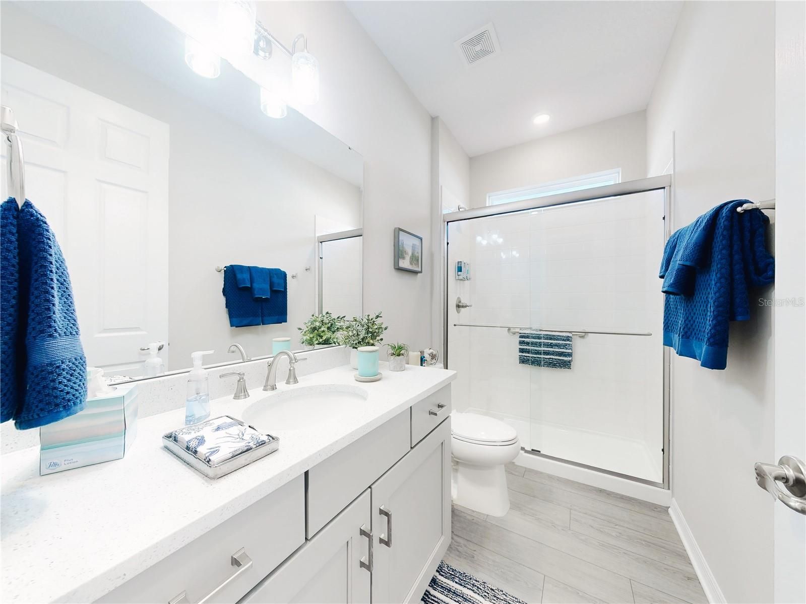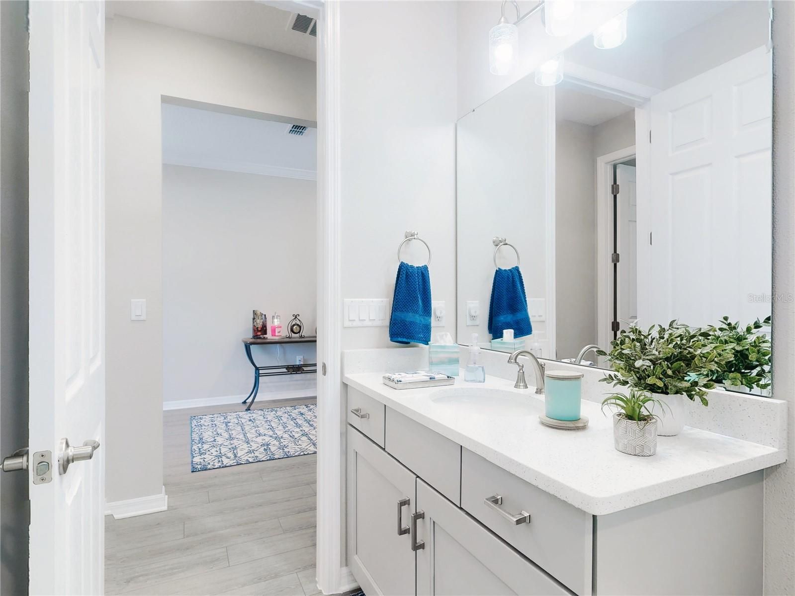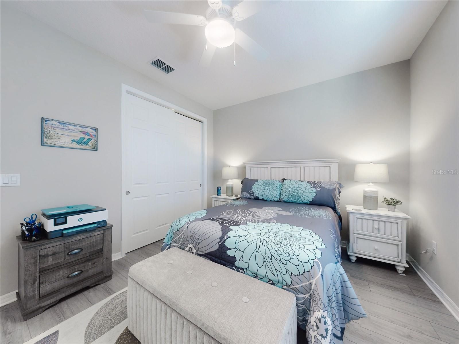 Discover refined living in this beautifully enhanced Ginger model home located in the highly desirable Weybourne Landing community. This residence offers $74,000 in premium upgrades, exceptional blend of comfort, style, and functionality, featuring 2 bedrooms, 2 bathrooms, and a flex room ideal for a home office, craft space, or guest suite. Home offers window shades with 2" cordless blinds, The Great Room impresses with tray ceilings, crown molding, 8-foot interior doors, 9ft 4"ceilings throughout, and luxury vinyl plank flooring throughout, creating a seamless flow. The chef’s kitchen showcases staggerd cabinets 36-inch uppers, quartz countertops, Breakfast Bar, stone backsplash, under cabinet lighting, upgraded soft-close cabinetry, a five-burner gas range, French-door counter-depth refrigerator, Kitchen upgraded with Kitchen Aid stainless steel appliances. The Primary Suite offers a private retreat, custom closet system, and a spa-inspired bathroom featuring a quartz dual vanity with oval undermount sinks and an upgraded walk-in shower with built-in seat. The guest bedroom and secondary bath offers a walk-in shower to provide both comfort and style for family or visitors. Relax and entertain year-round in the enclosed, covered, and screened lanai with a 24-inch masonry knee wall offering privacy and comfort. Lanai also offers natural gas to outside grill. Additional highlights include 2 ft widened driveway to corner of garage which adds storage or workspace, cascade windows, garage door with outside coded garage door opener, water softener. Interior laundry room with cabinetry, washer and dryer (1yr old is included). Premier Lighting, This property offers a serene backyard setting with no neighboring homes behind, backing to a natural dry pond area that enhances privacy and openness, added features, irrigation system, ring door bell. This home is truly move-in ready, showcasing high-end finishes and meticulous attention to detail—an exceptional opportunity to enjoy the best of Weybourne Landing living. Furniture is negotiable, golf cart is for sale, has upgraded Lithium battery with wall mounted charger (1 yr. old). Residents enjoy a clubhouse, pool, fitness center, pickleball courts, and with a Gateway Pass, access to all On Top of the World amenities.
