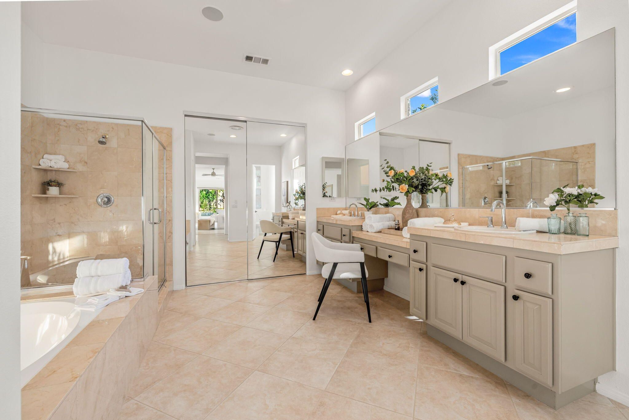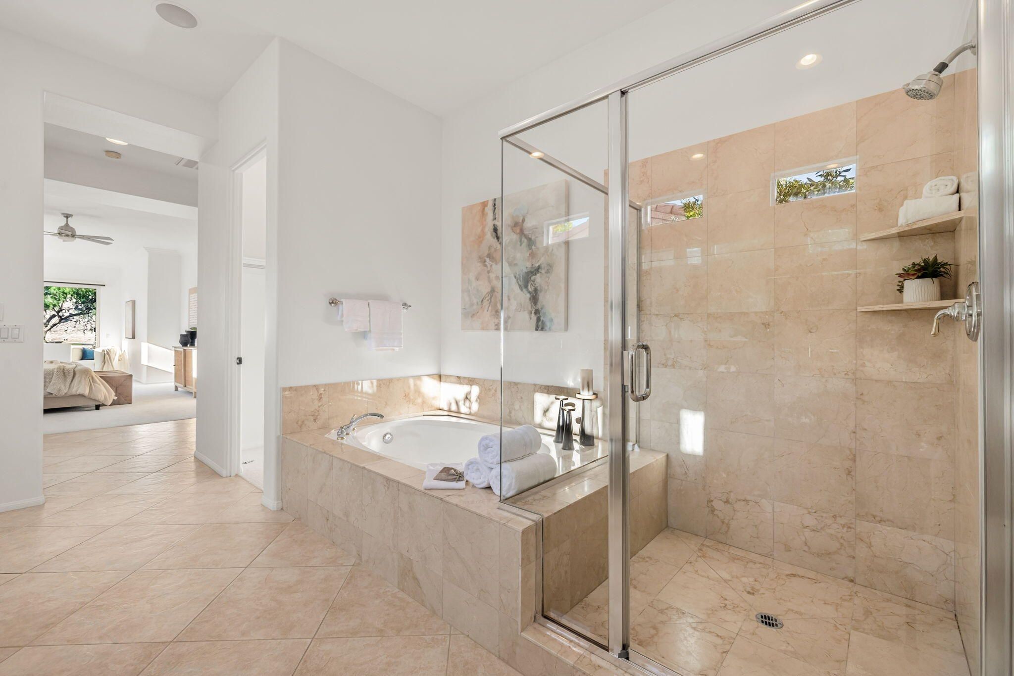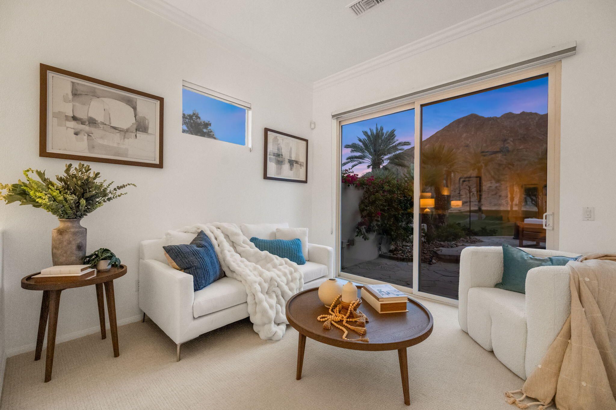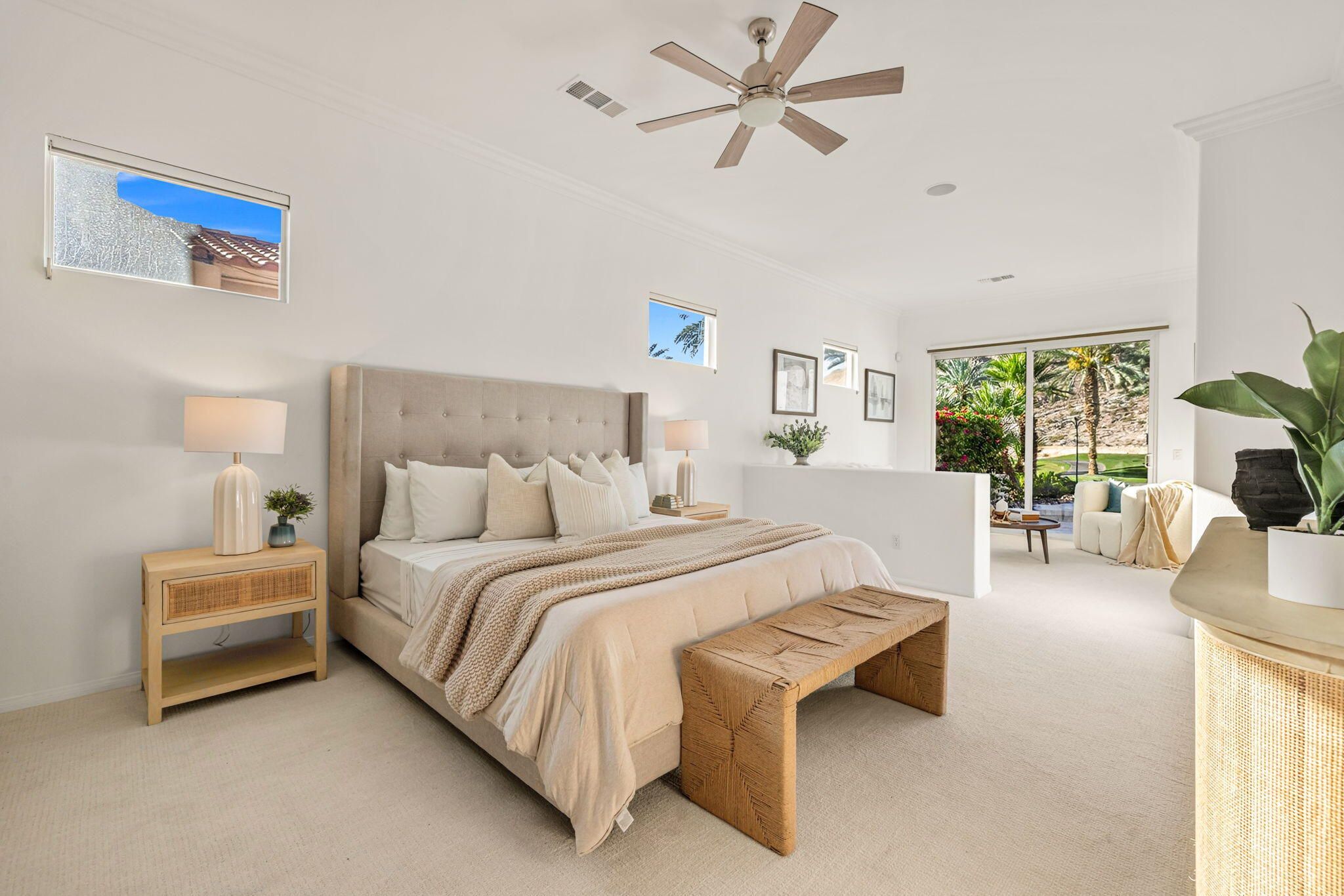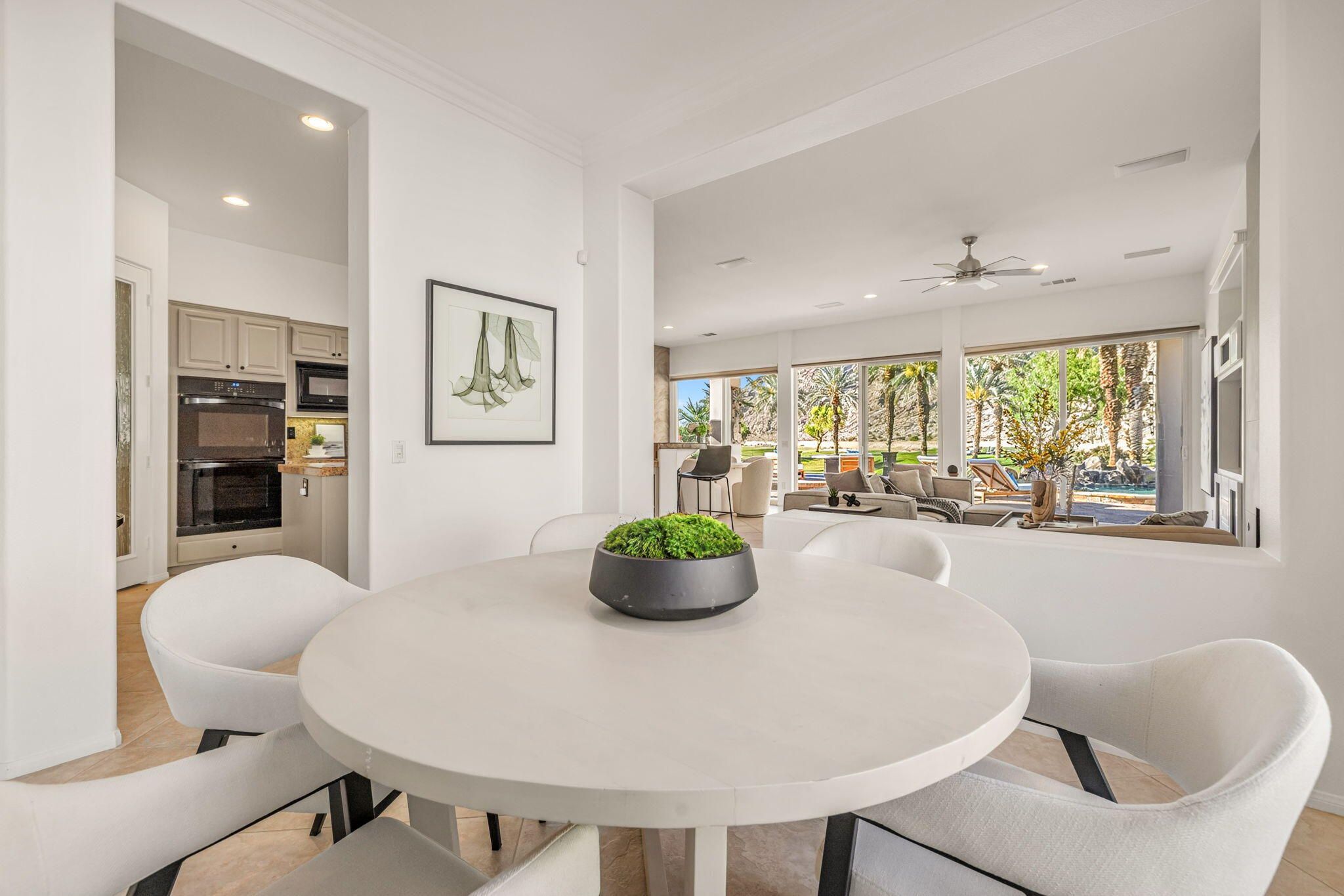 PGA Palmer Private: **OPEN This Saturday 4/18, 11:00AM-1:00PM. COME SEE!!** Do you want an upgraded fairway home with nothing behind you but stunning mountains? This is it!! Perfectly positioned near the 14th tee of the prestigious Palmer Private Course at PGA West, this property offers a rare and highly sought-after combination: wide-open fairway frontage with no homes behind you--just unobstructed mountain views that come alive at night when the Santa Rosas are beautifully illuminated. No rooftops, no back-to-back neighbors--just privacy, space, and dramatic desert scenery. The home has been thoughtfully refreshed and shows beautifully, with a clean, bright interior that is completely move-in ready. With approximately 2,800+ sq ft, 3 bedrooms and 3 bathrooms, the layout is open and functional, designed for easy indoor-outdoor living. The backyard is where this property truly shines. An oversized outdoor space features a private pool with a water feature and built-in cocktail table--perfect for relaxing or entertaining--plus a fire pit and expansive patio, all set against that incredible view. Here's the opportunity: the property comes with HOA-approved plans to build a casita, allowing you to create a 4-bedroom home. Four-bedroom properties with this kind of view in PGA West typically command significantly higher prices, making this a compelling value play. Additional highlights include no cart path behind the home and minimal golf ball exposure--another rare benefit for a fairway property. Located within the guard-gated PGA West community, offering world-class golf, tennis, dining, and resort-style living. Views. Privacy. Upside. Opportunity. Don't miss it!