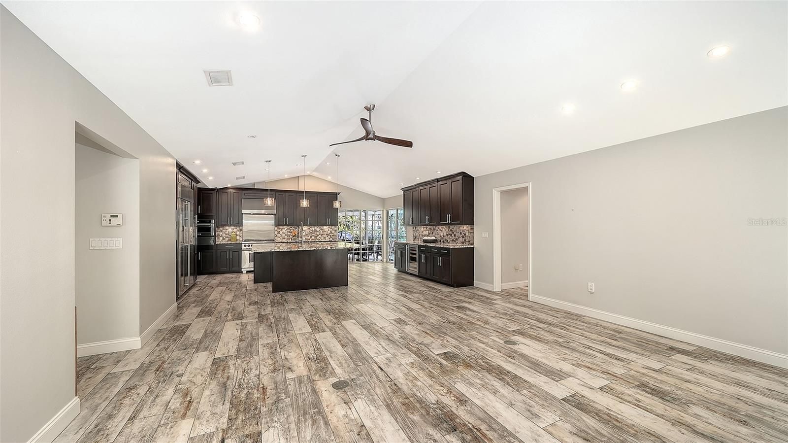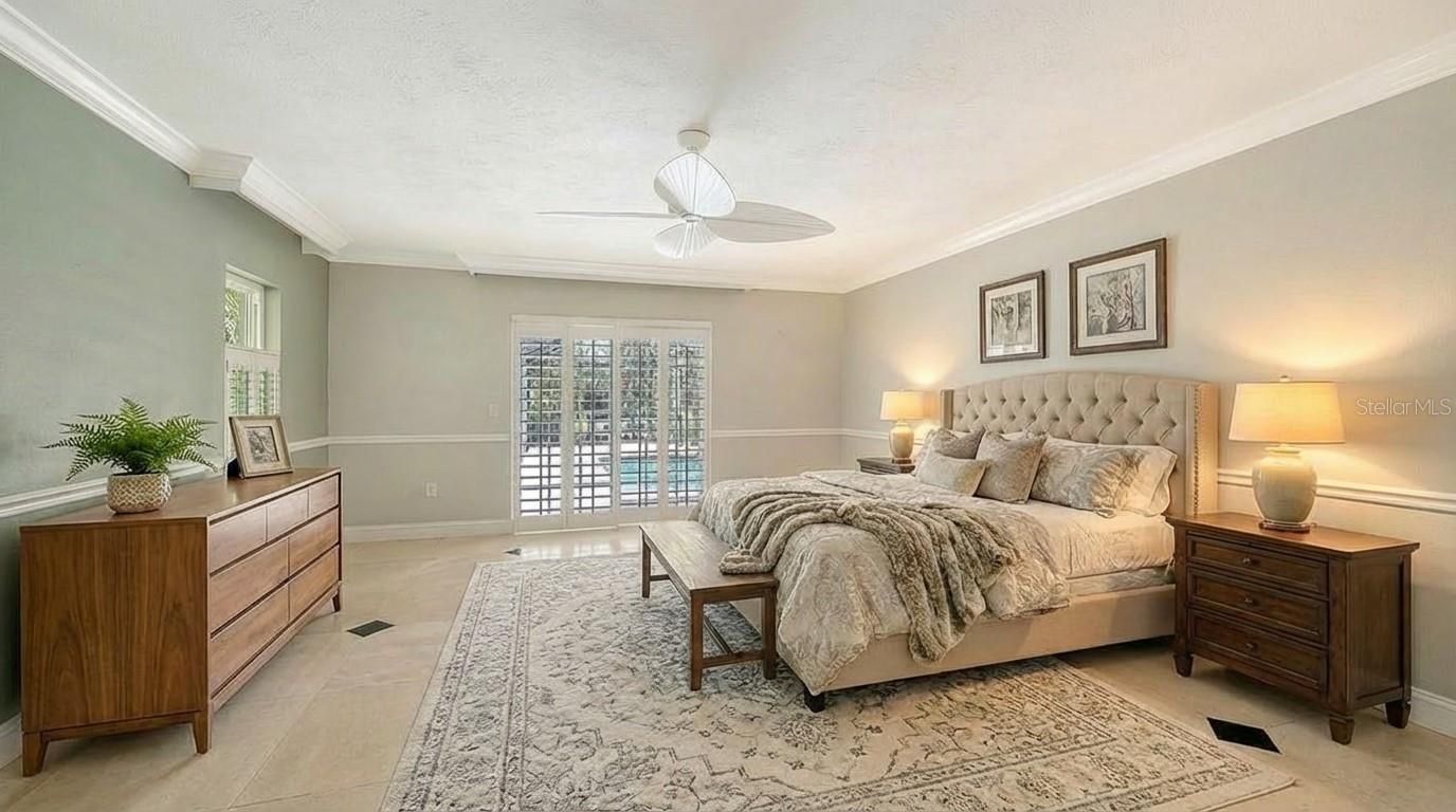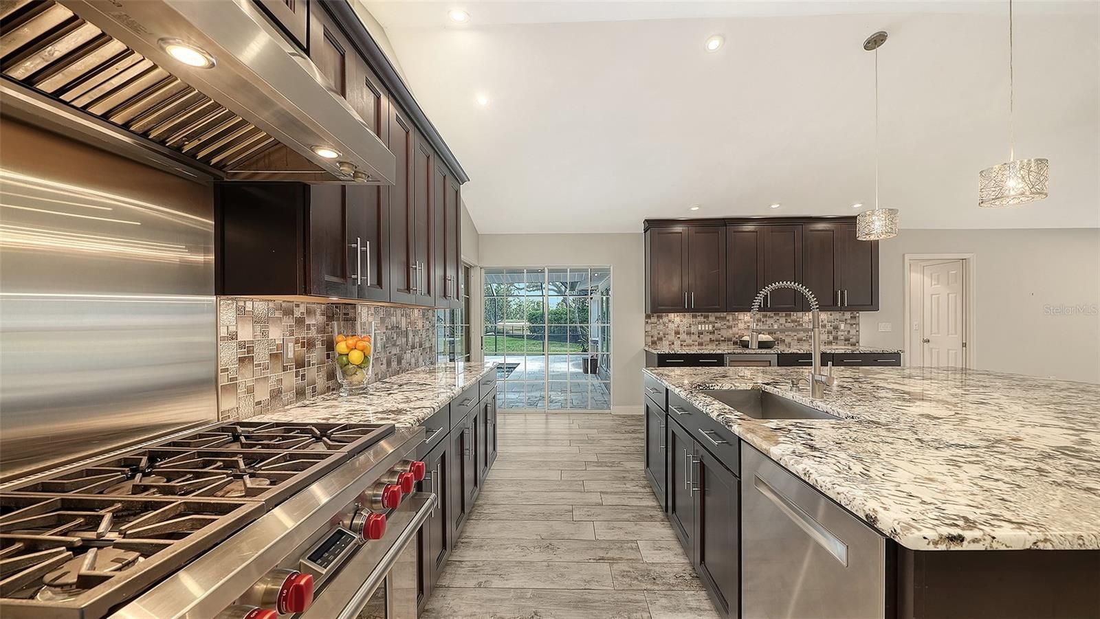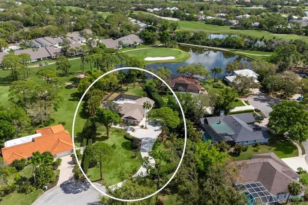One or more photo(s) has been virtually staged. Rare opportunity in Broadmoor Pines at Palm Aire Country Club. This beautifully renovated home sits on over ¾ of an acre at the end of a quiet cul-de-sac offering privacy, mature landscaping, and long water views with the 4th hole of the Lakes Course in the distance. Set deep off the road, this winding driveway and lush setting creates a striking arrival. New roof May 2025. Impact windows and a 3 car garage. The home is designed for comfortable everyday living and effortless entertaining, with porcelain plank tile flooring, crown molding, recessed lighting, upgraded ceiling fans and Hunter Douglas window treatments throughout. Gorgeous glass front doors open to formal living and dining spaces, while the open kitchen and family room form the heart of the home. The chef’s kitchen features premium appliances: Wolf dual-fuel 6-burner gas/convection range, GE Monogram refrigerator/freezer, KitchenAid built-in microwave, Bosch dishwasher, and Uline two-zone wine cooler. Custom dovetail cabinetry with pull-outs, pull-out pantry storage, granite countertops, mosaic tile backsplash, and under-cabinet lighting provide both style and functionality. A large dining island anchors the space and opens to an expansive family room with vaulted ceilings and a stone gas fireplace. The split-bedroom floor plan provides excellent privacy. The primary suite includes travertine flooring, plantation shutters, sliding doors to the lanai, and two custom walk-in closets. The updated bath offers dual granite vanities and a large walk-in shower with frameless glass and multiple shower heads, including dual rain showers. A flexible den with pocket doors and a closet can serve as a fourth bedroom, with access to a nearby half bath. The guest wing, tucked behind a pocket door, includes two spacious bedrooms and a full bath with direct pool access. This outdoor living is exceptional with a re-surfaced (heated) saltwater pool, travertine pavers, expansive covered bronze screened lanai, and fully fenced backyard. Located just 15 minutes from downtown Sarasota, Lido Beach, and Sarasota-Bradenton International Airport. Palm Aire Country Club offers 36 holes of golf with optional membership, plus tennis, pickleball, fitness, pools, and an active social calendar.