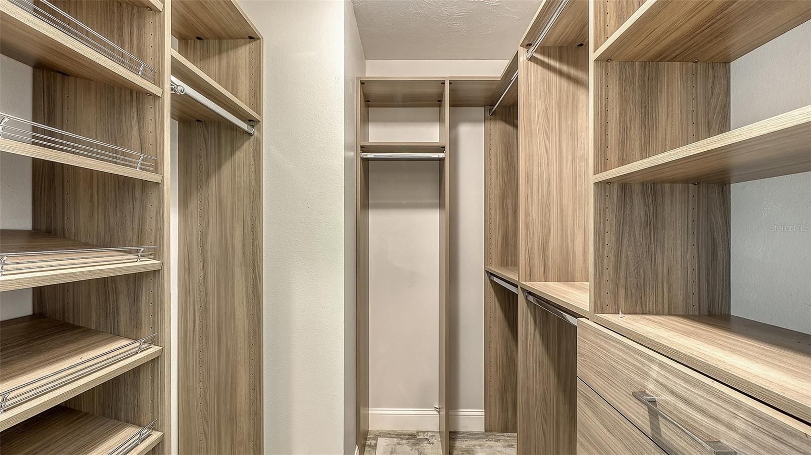 - Ceiling Fan(s), Chair Rail, Crown Molding, Kitchen/Family Room Combo, Main Level Primary, Split Bedrooms, Stone Counters, Thermostat, Vaulted Ceiling(s), Walk-In Closet(s), Window Treatments